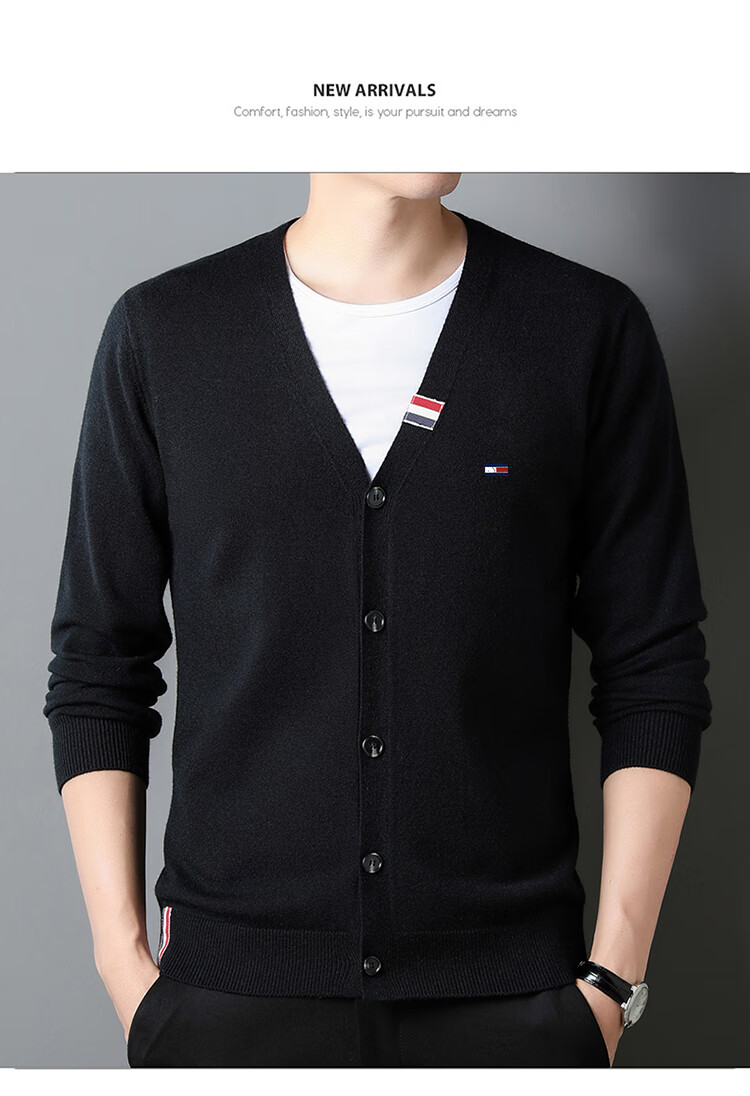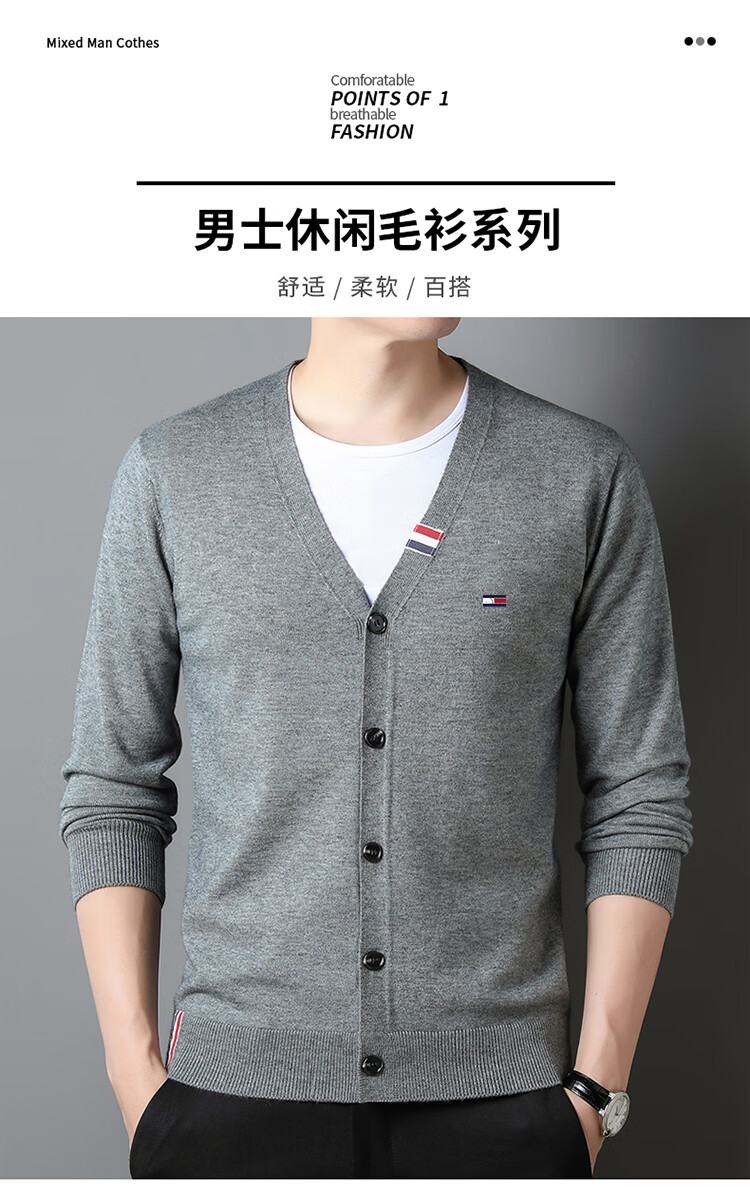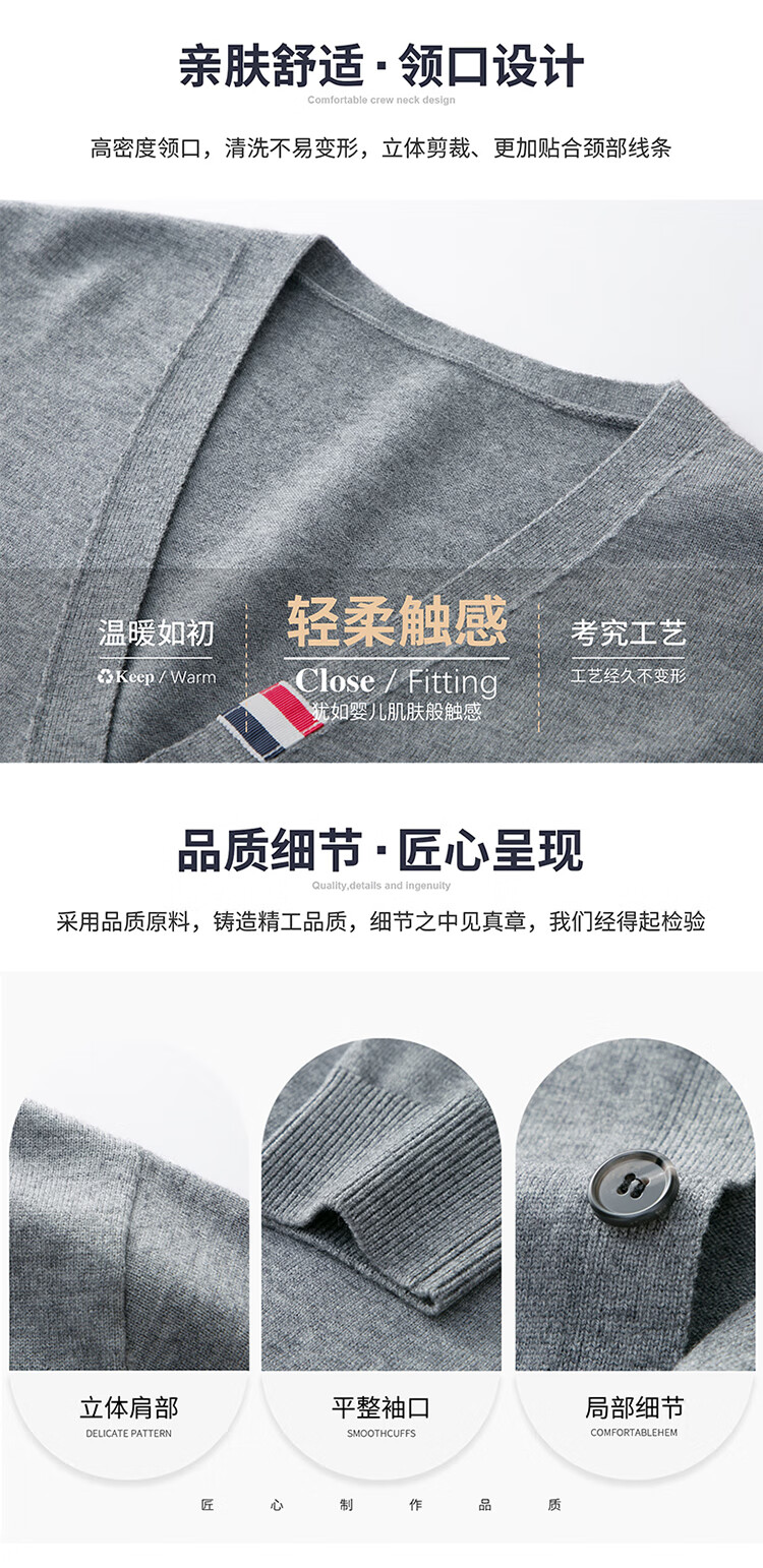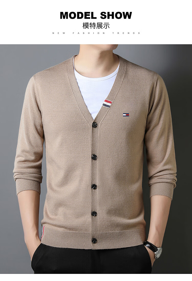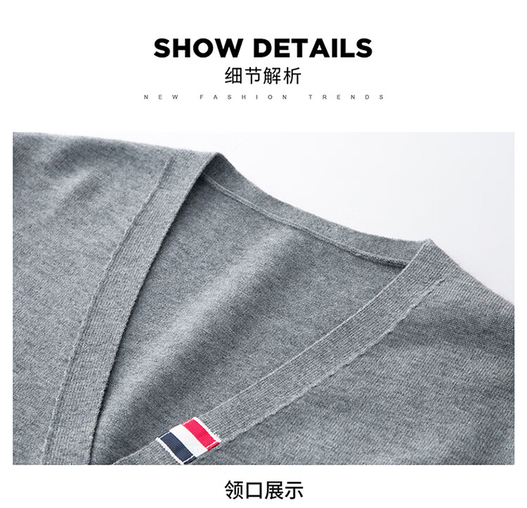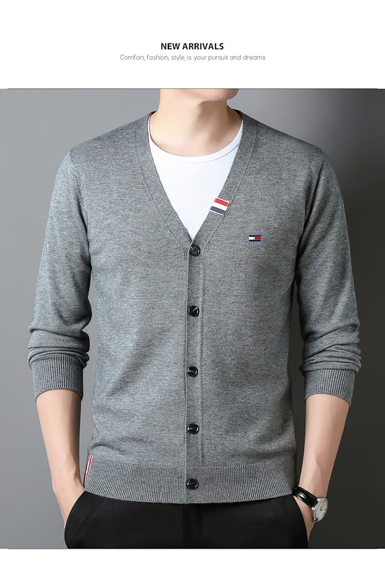 TOME BORNEKTomm汤米纯羊绒开衫男士休闲免烫V领针织羊毛衫毛衣外套男潮 灰色 165