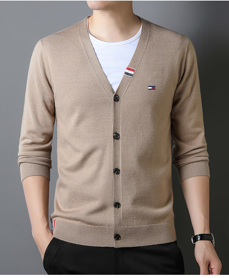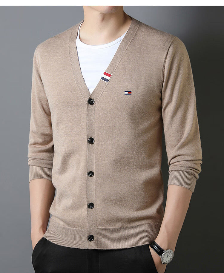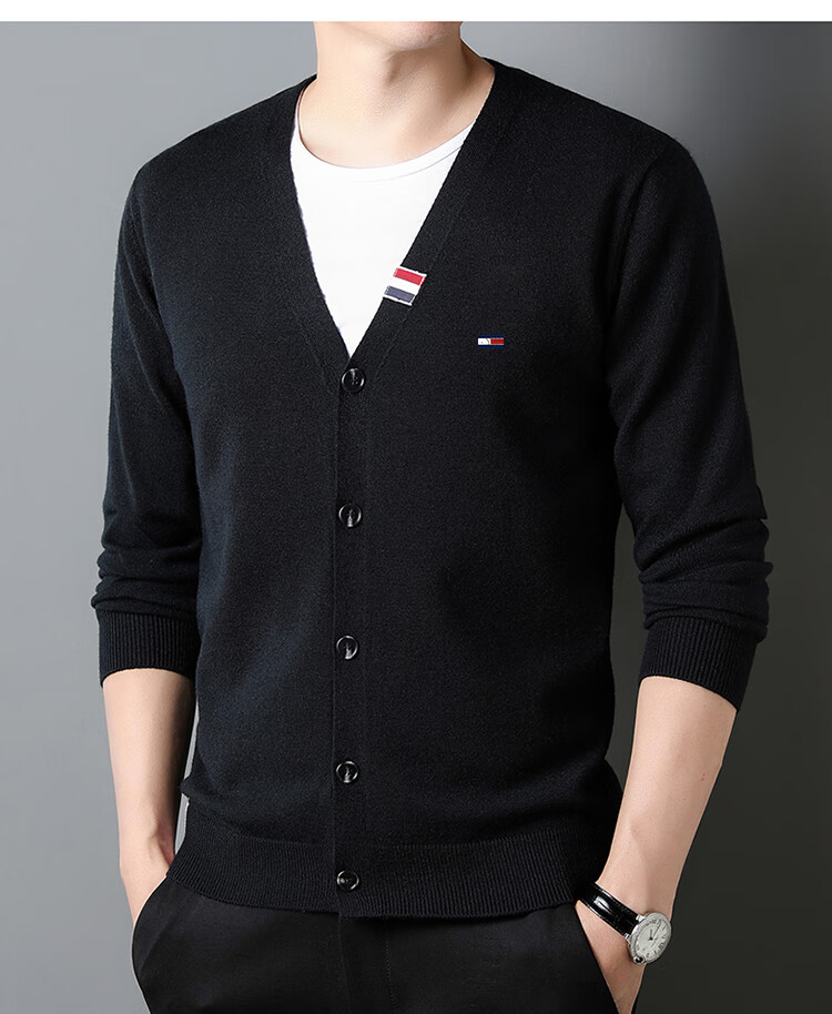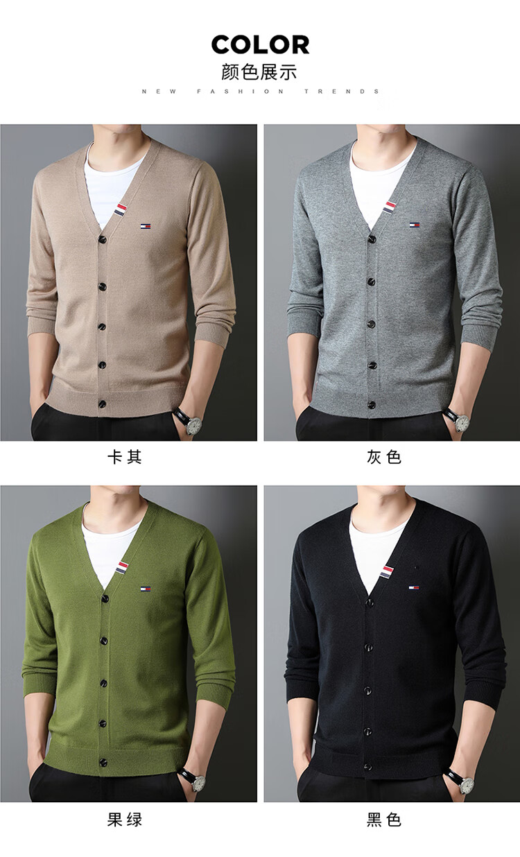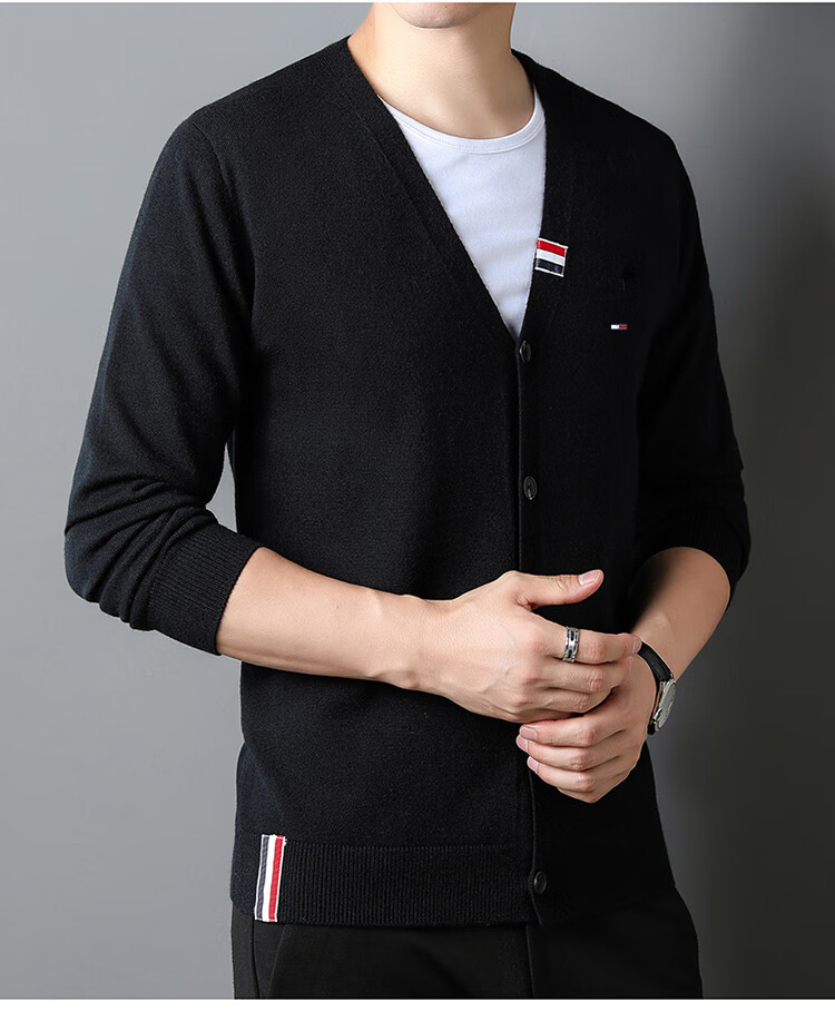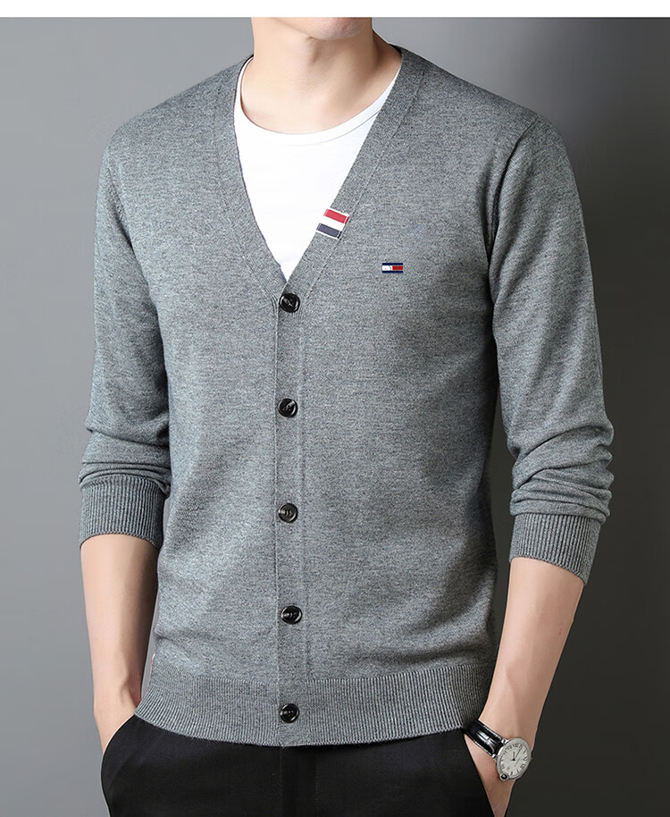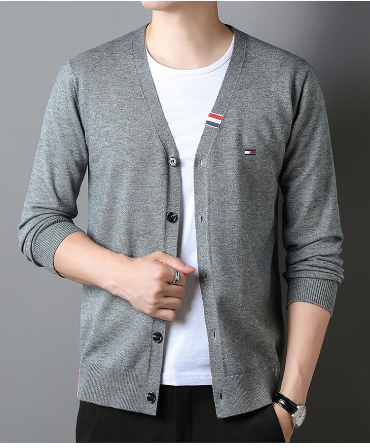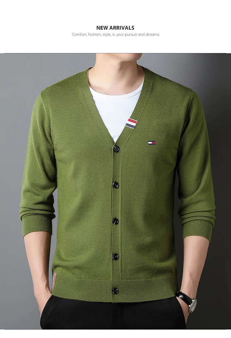 TOME BORNEKTomm汤米纯羊绒开衫男士休闲免烫V领针织羊毛衫毛衣外套男潮 灰色 165
