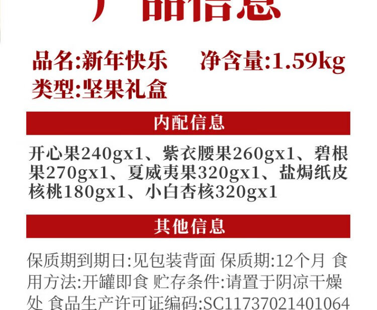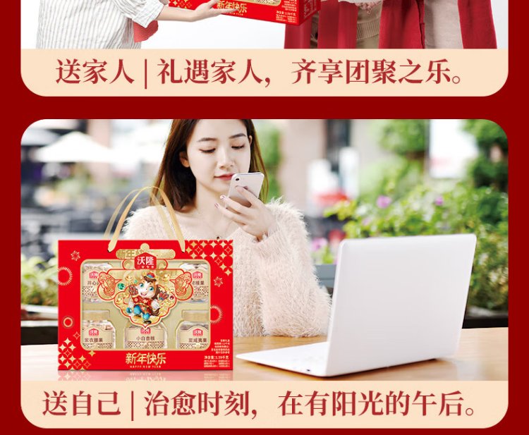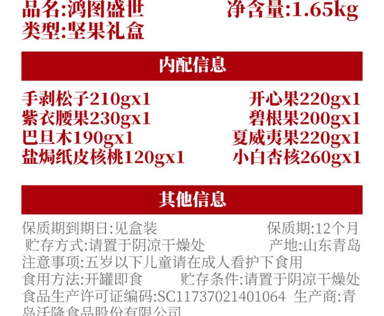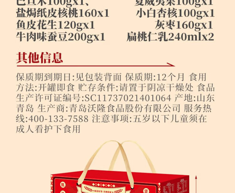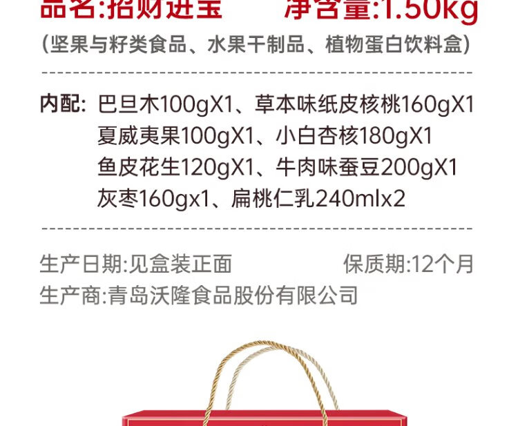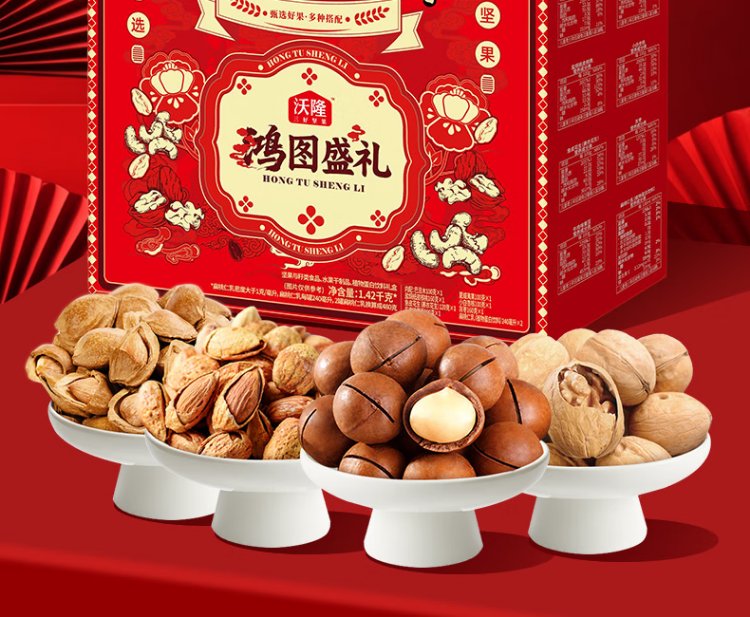 沃隆年货纯坚果礼盒高端干果零食大礼包罐装过年长辈礼品送礼佳品团购 福利精选-1500g