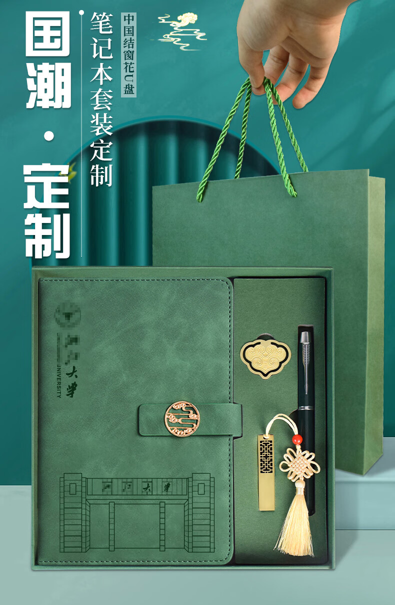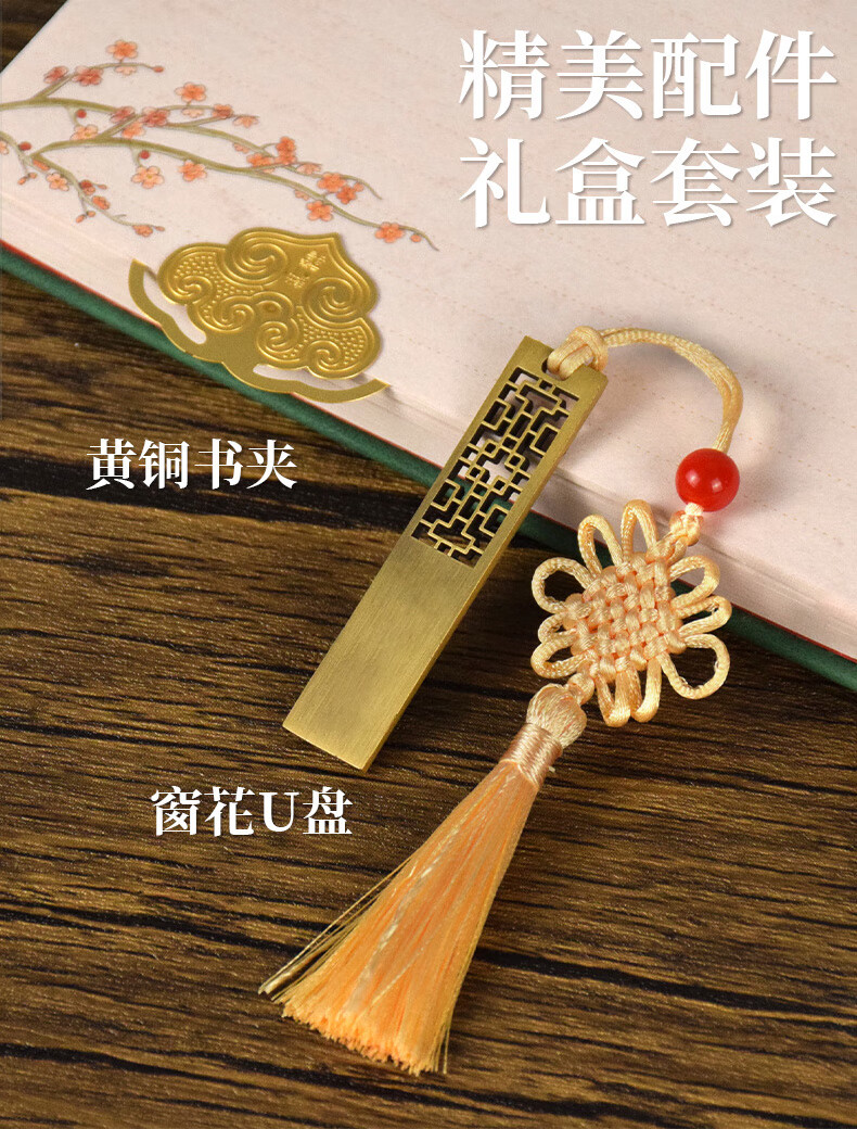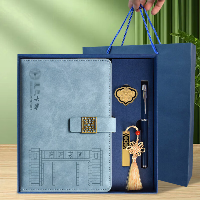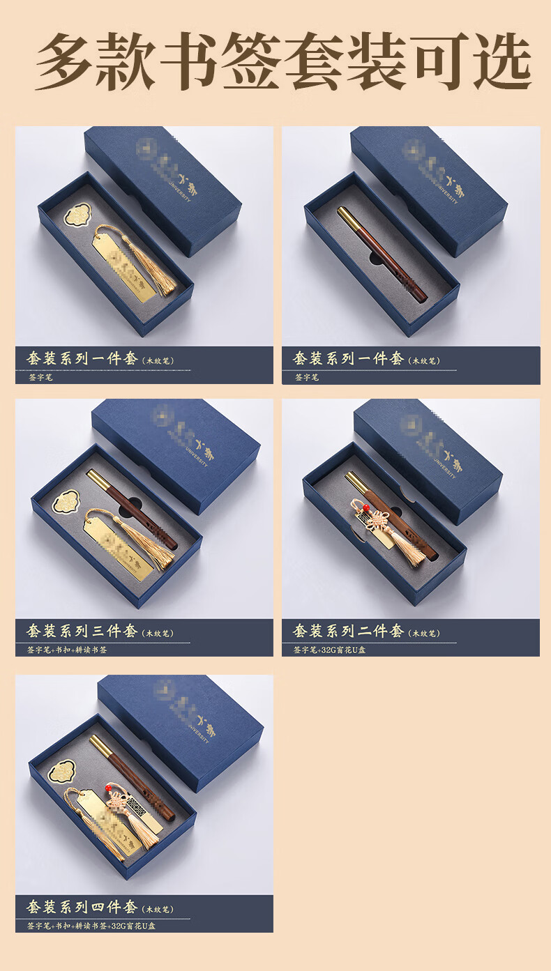 熊哲察浙江大学文创书签纪念品礼盒定制刻logo古典中国风金属书签笔记本U盘北京故宫中山清华北大毕业校 浙江大学-祥云扣(笔+32G优盘+书夹)天蓝色