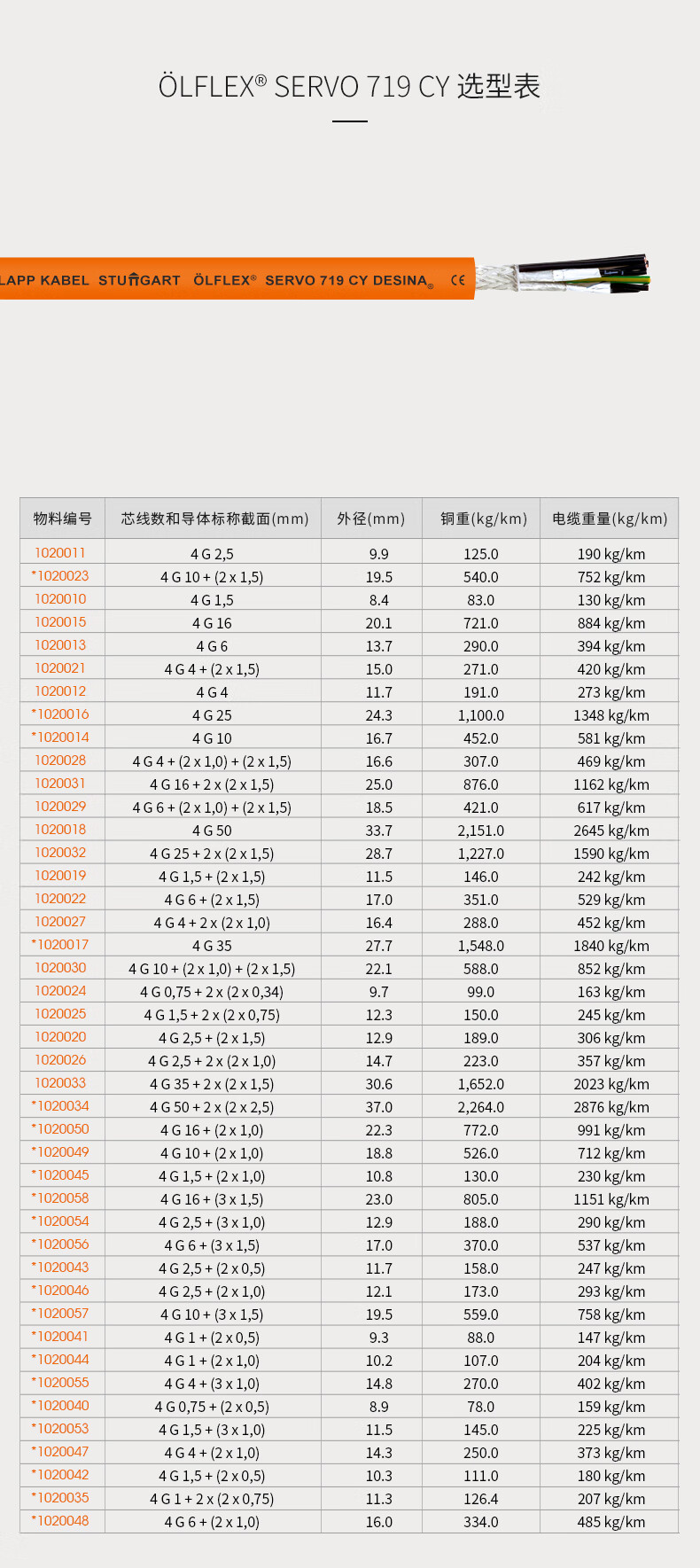 Yingtang LAPP wire and cable LFLEX SERVO 719 CY national standard copper core decoration sheathed wire soft wire Contact customer service before placing an order