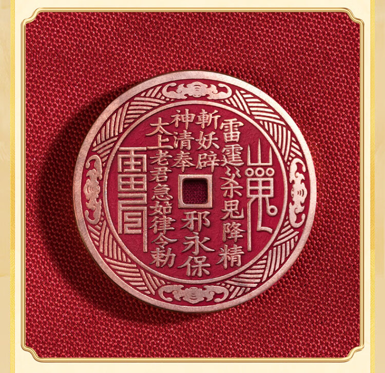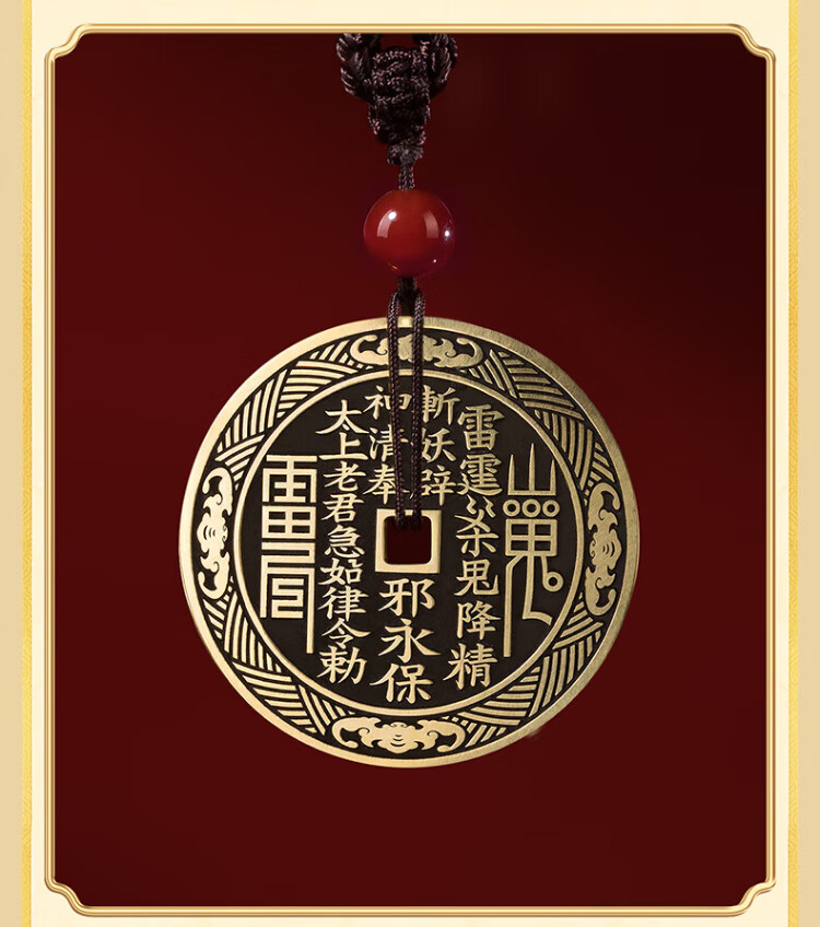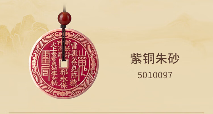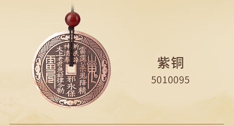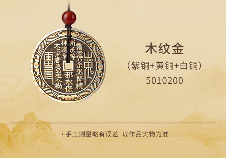 铜师傅《山鬼花钱》木纹金工艺 紫铜黄铜白铜吊坠 装饰摆件伴手礼物 紫铜朱砂版