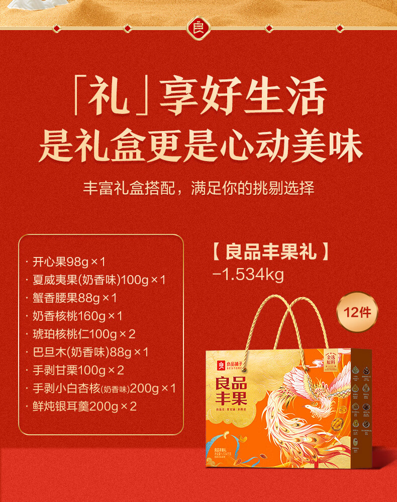 良品铺子坚果礼盒大礼包干果坚果炒货零食礼盒礼盒装1706g 良品风味礼1343g