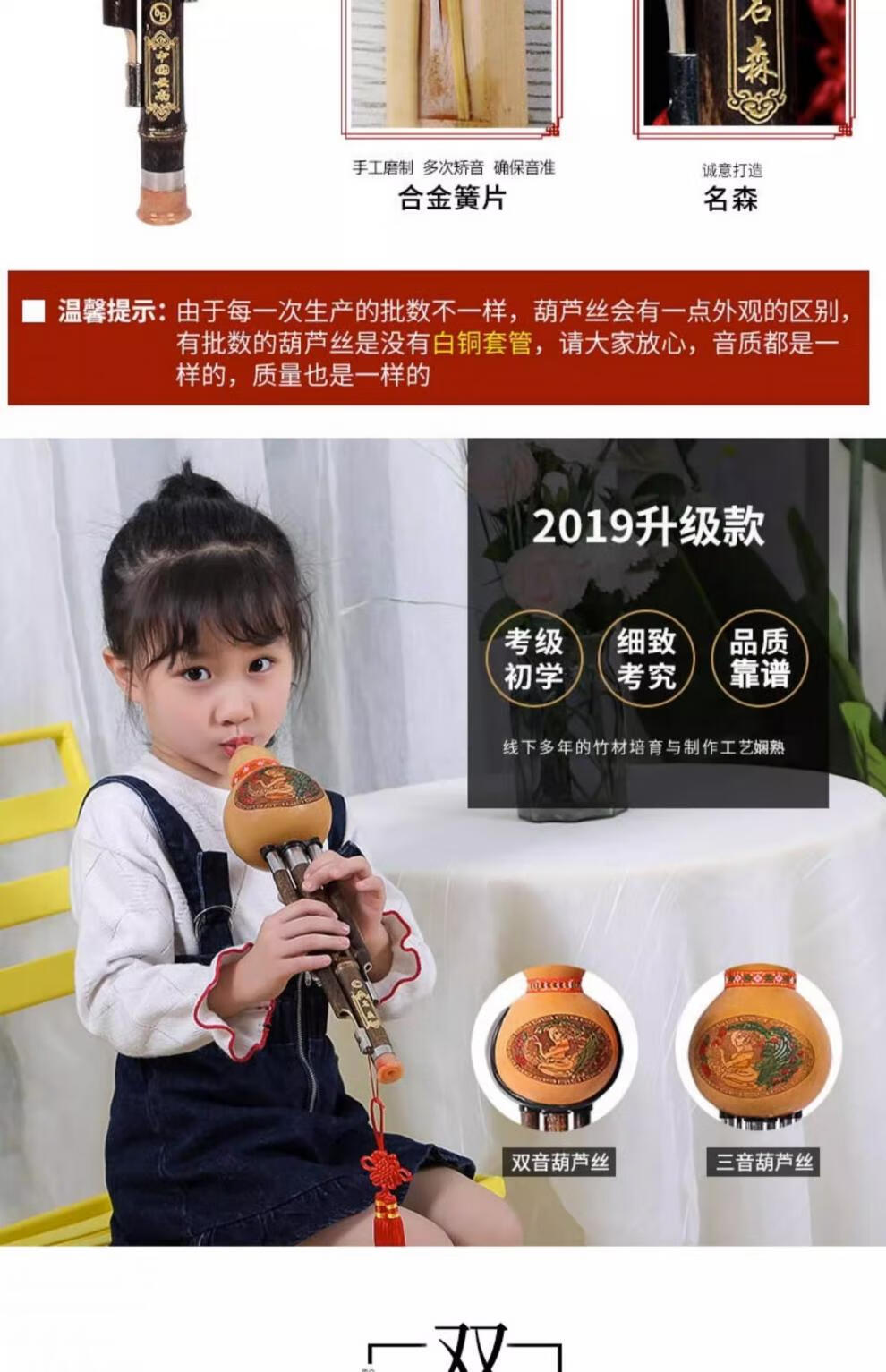 名森(Minsine)葫芦丝乐器降B调学校教学儿童初学C调葫芦丝三音吹管乐器 【升级白铜款】紫竹三音C调+礼包