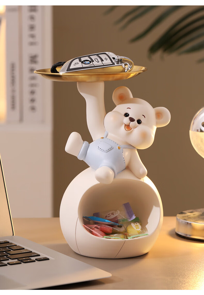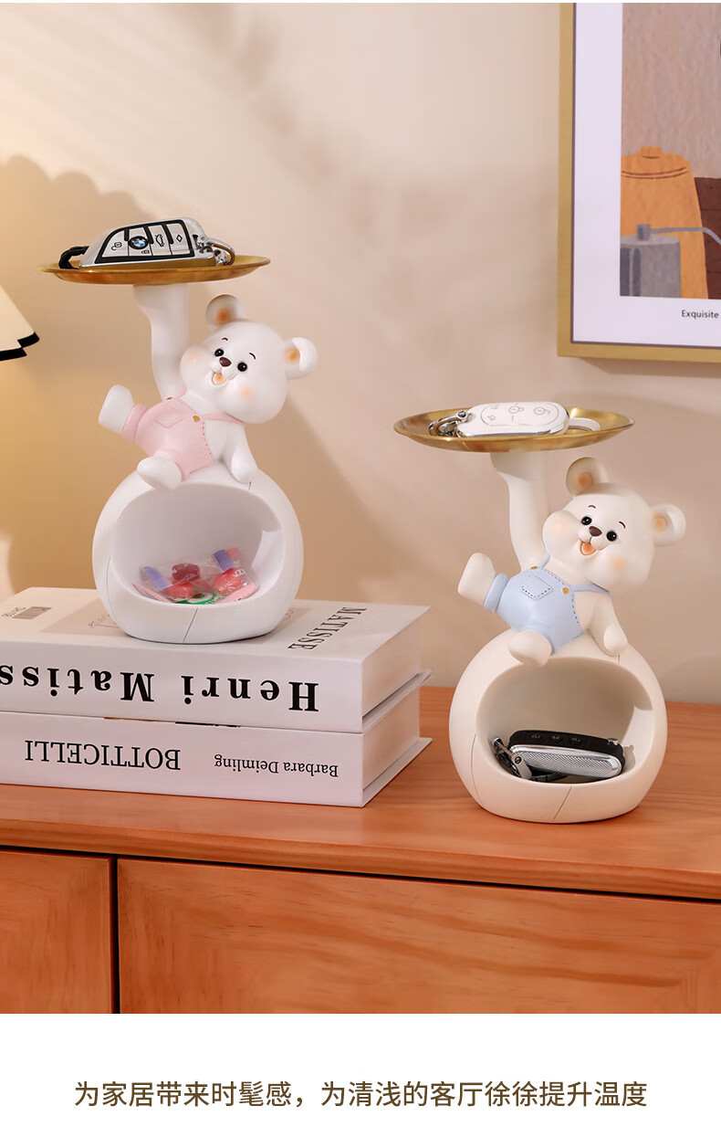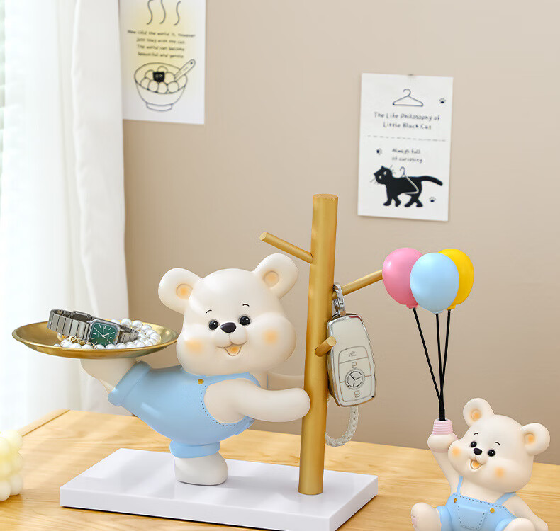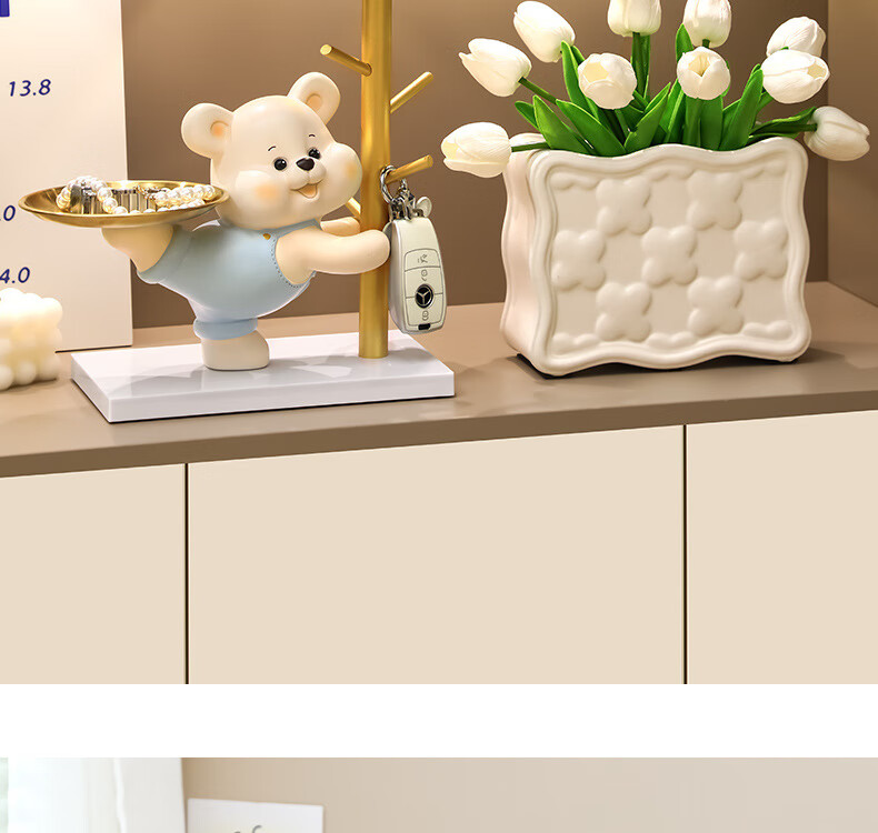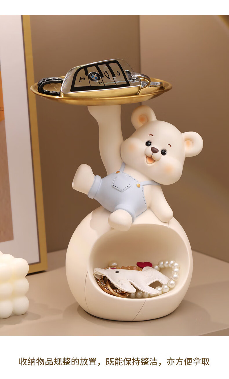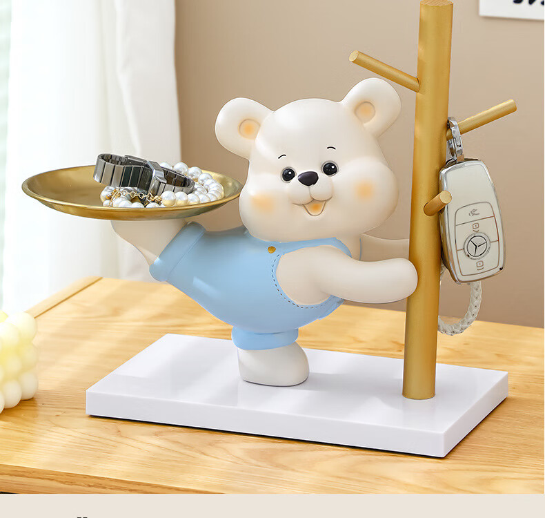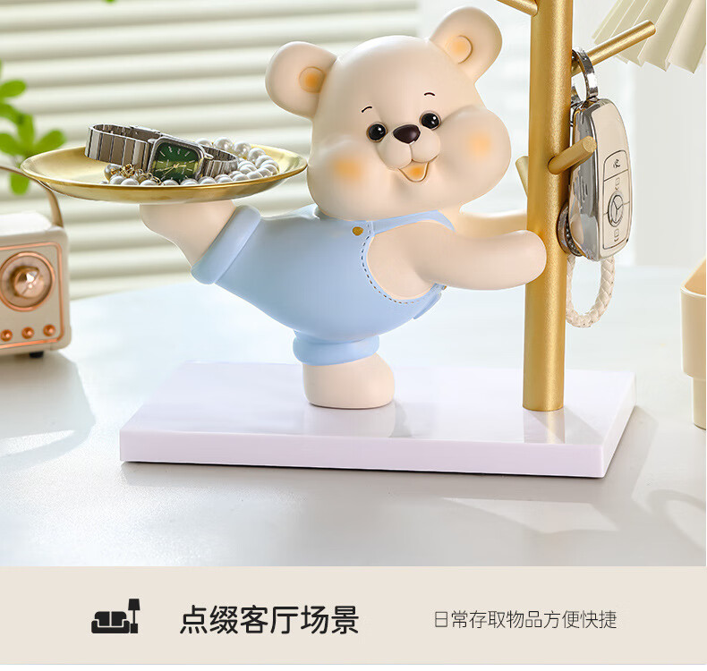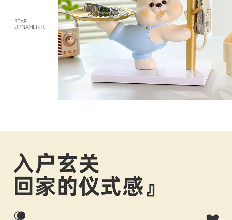 赟娅入户门口玄关放钥匙收纳摆件呆萌熊置物架桌面装饰品乔迁新居礼品 踢腿小熊收纳-蓝色+钥匙架