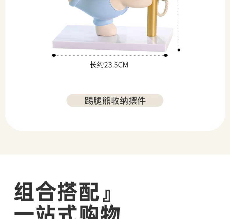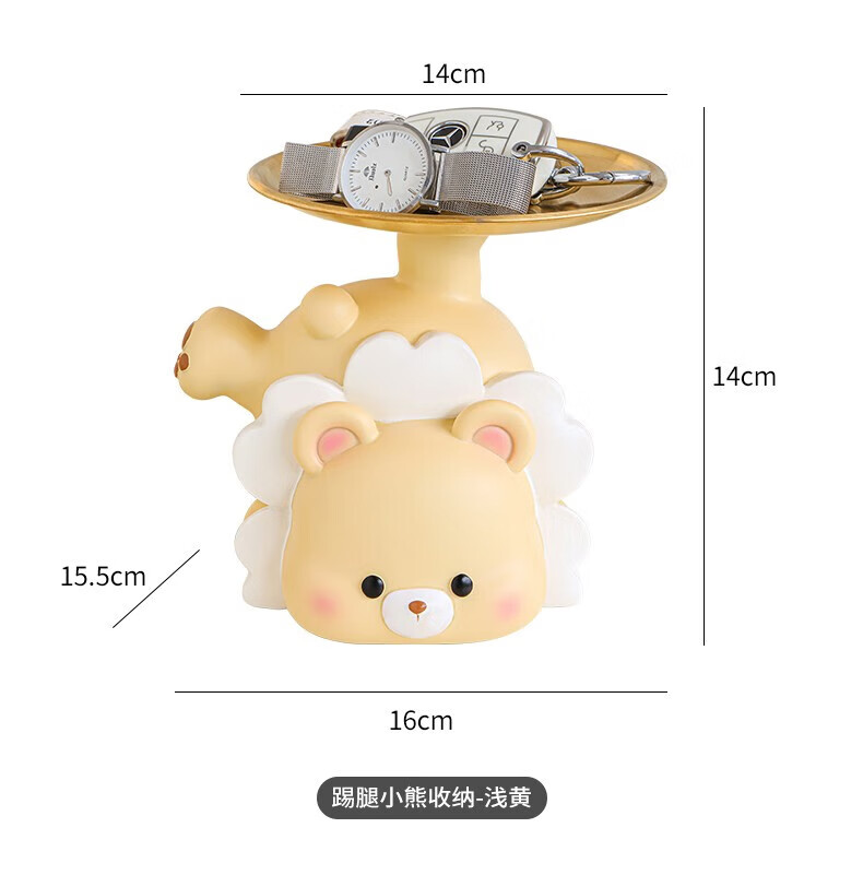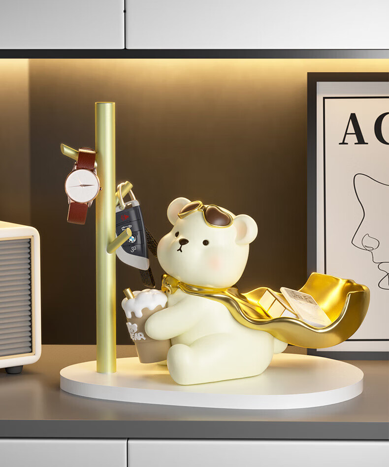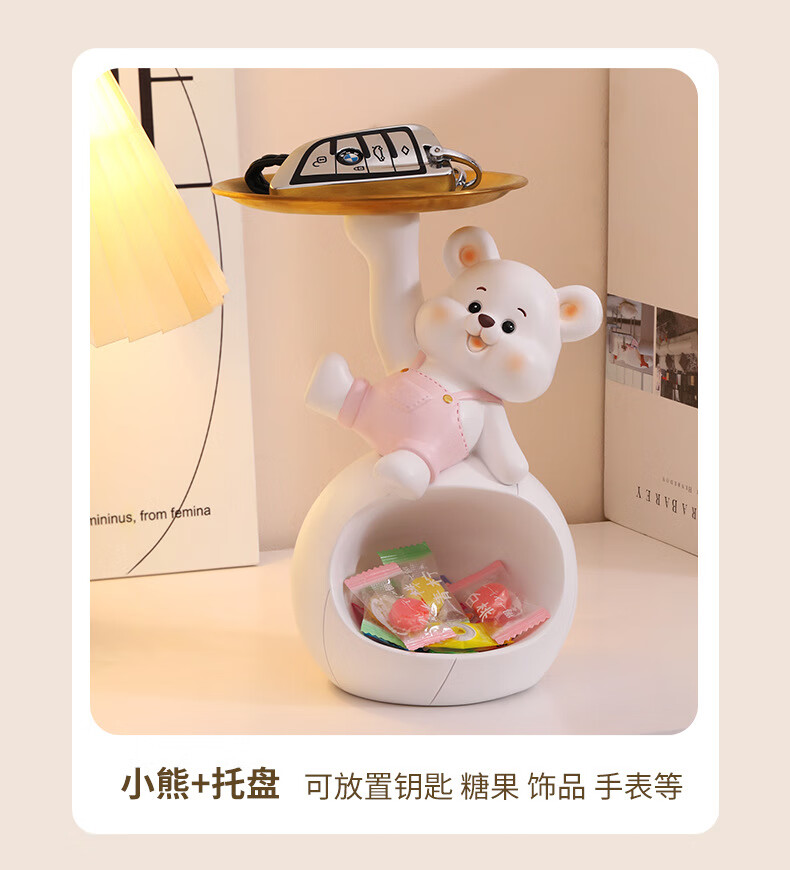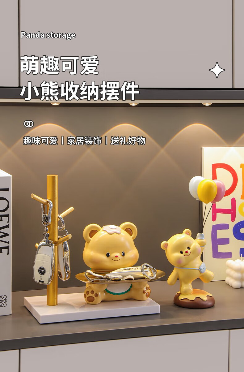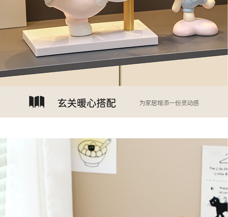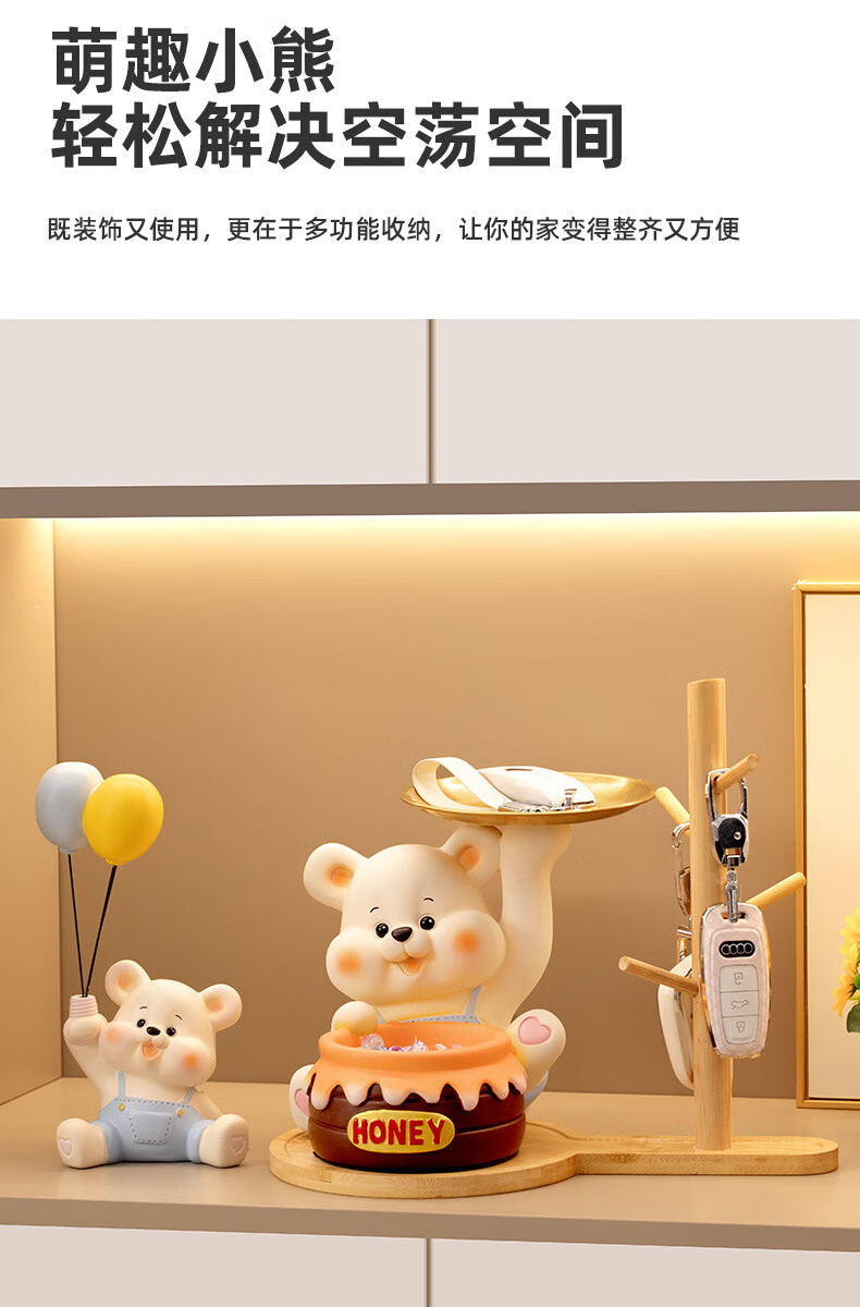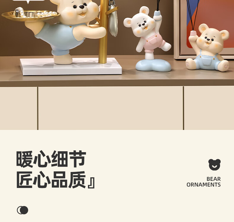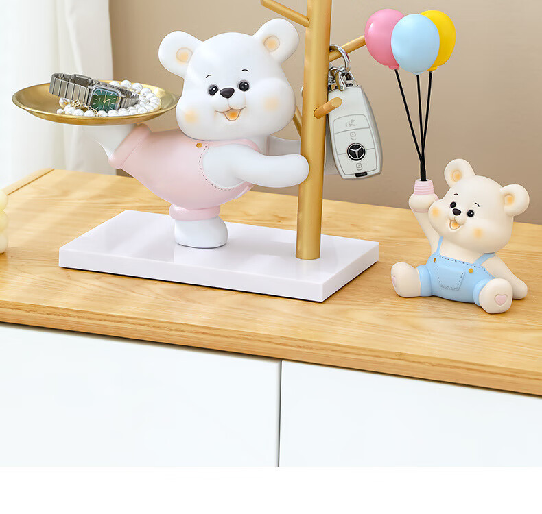 赟娅入户门口玄关放钥匙收纳摆件呆萌熊置物架桌面装饰品乔迁新居礼品 踢腿小熊收纳-蓝色+钥匙架