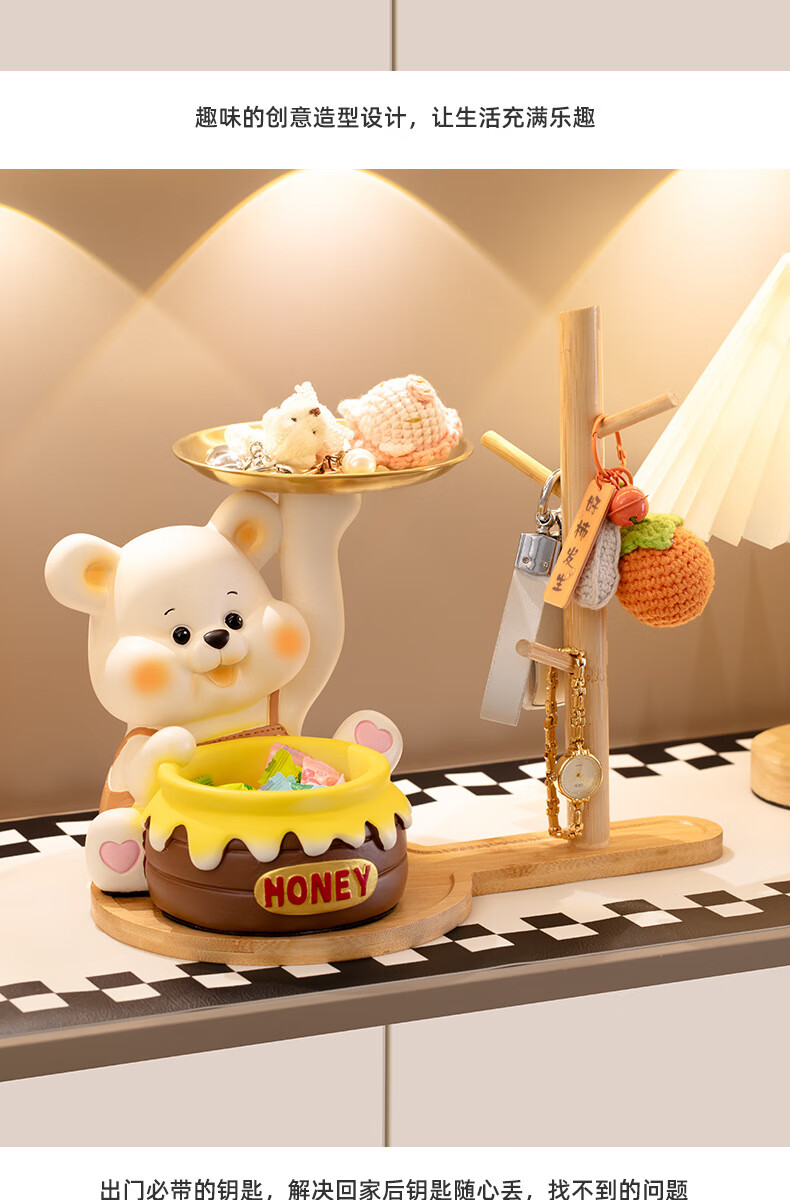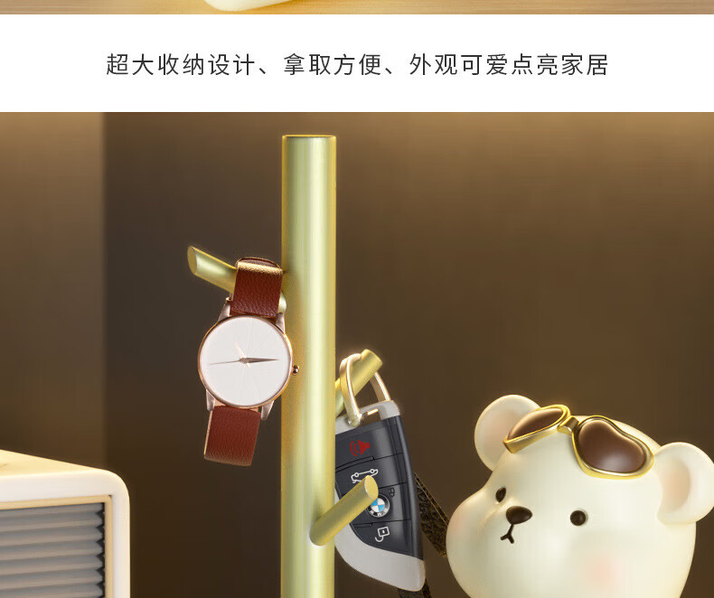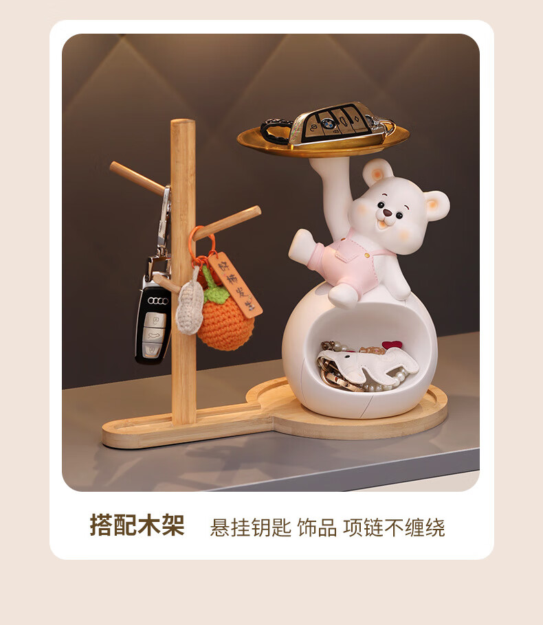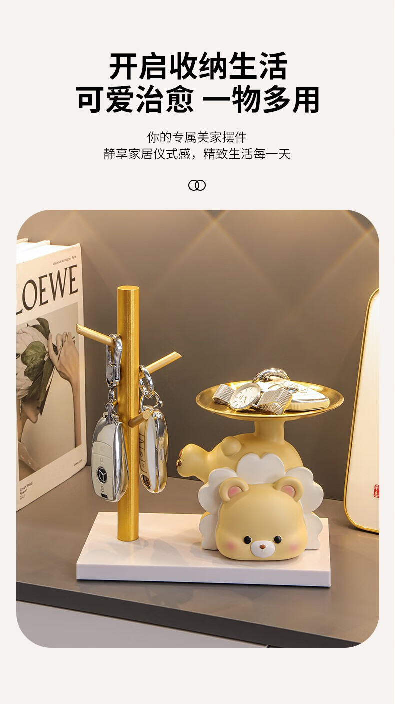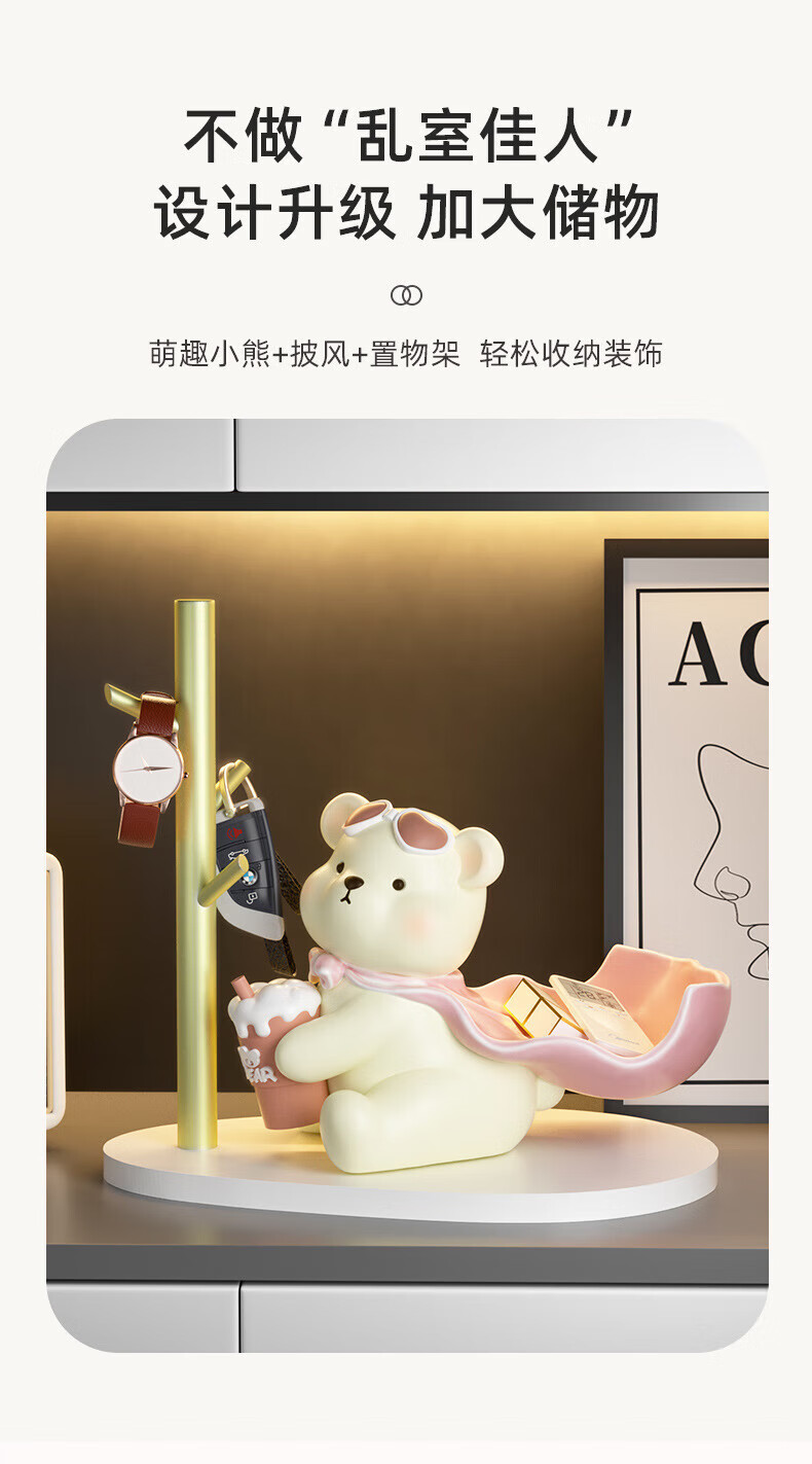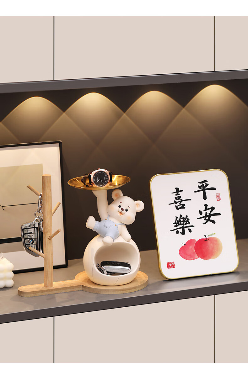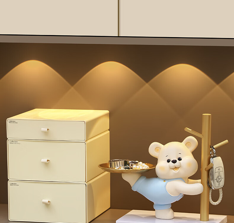 赟娅入户门口玄关放钥匙收纳摆件呆萌熊置物架桌面装饰品乔迁新居礼品 踢腿小熊收纳-蓝色+钥匙架