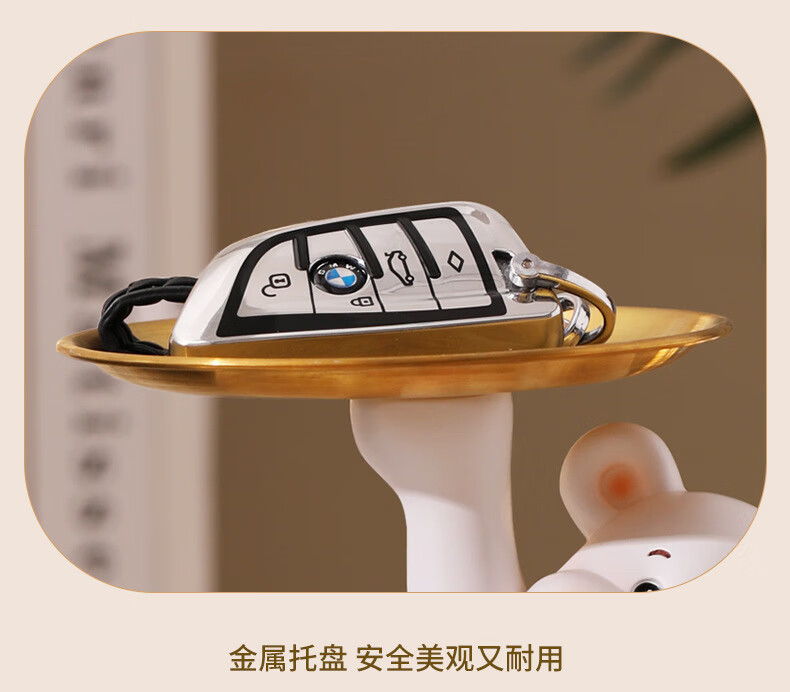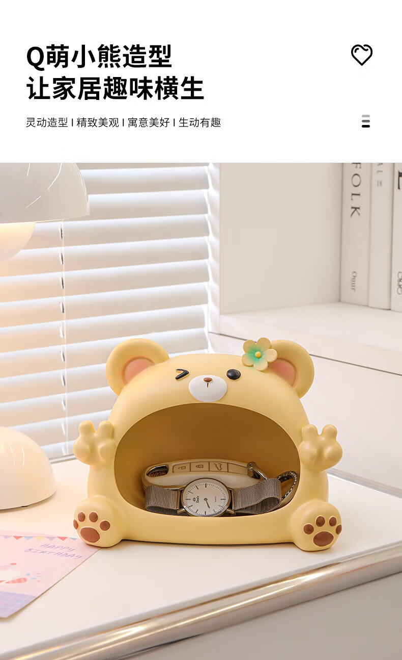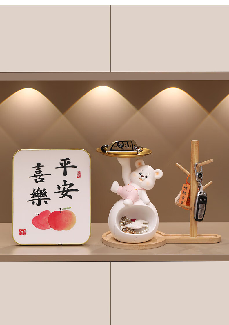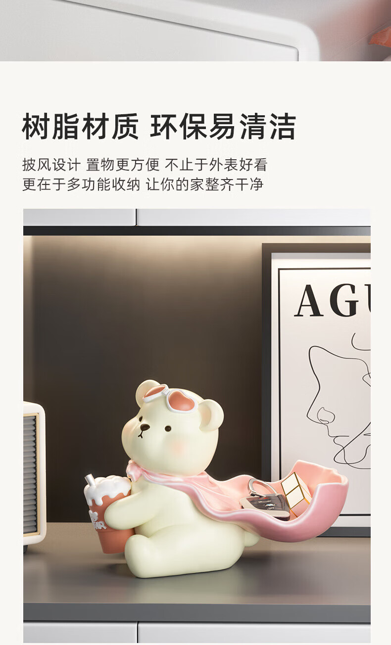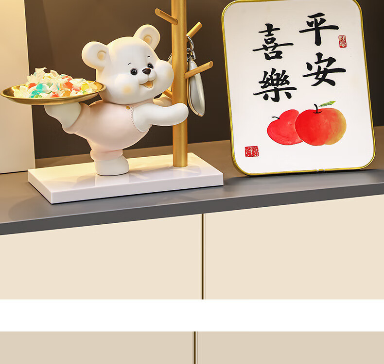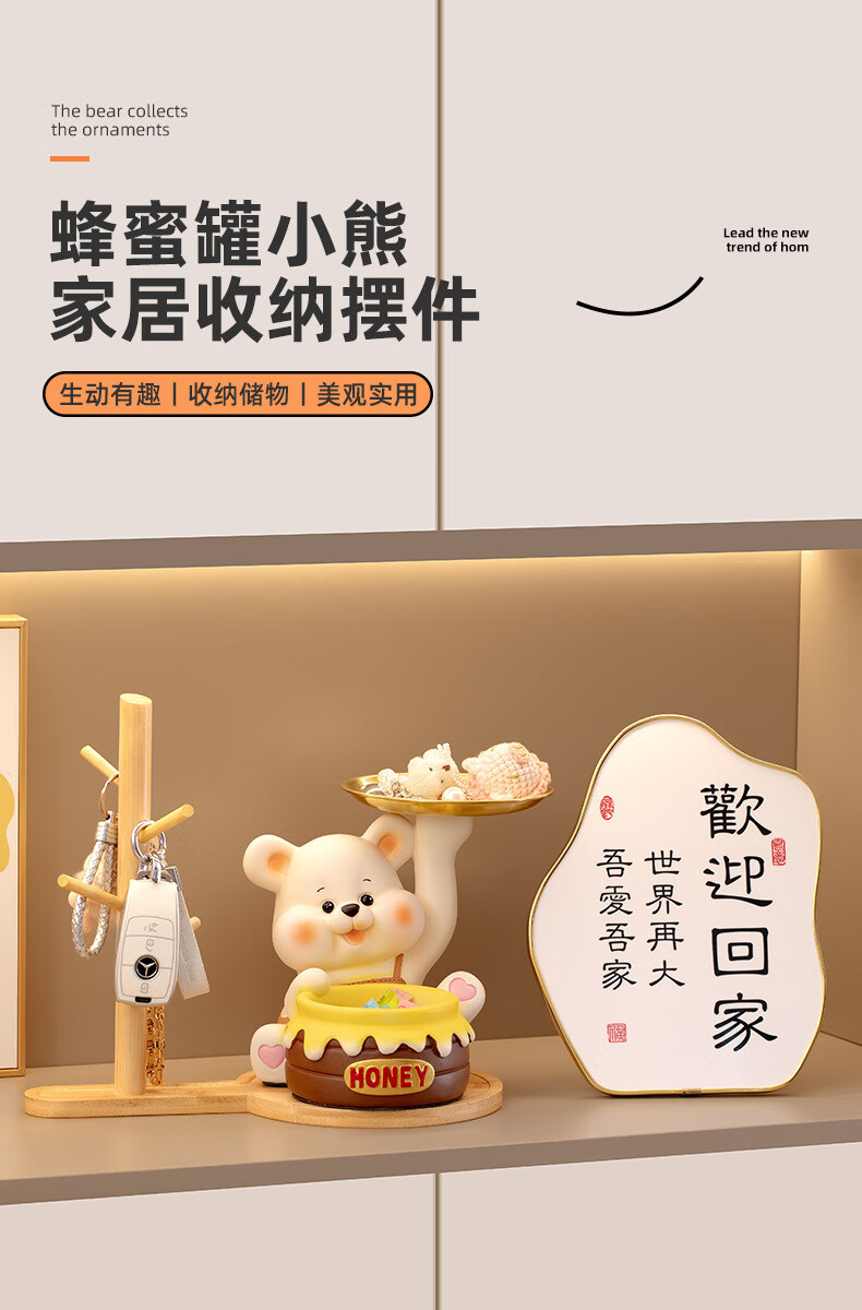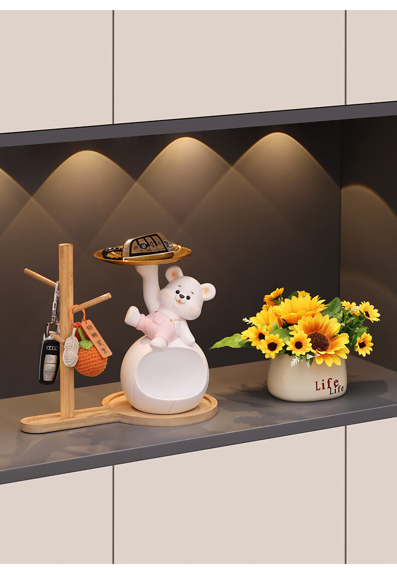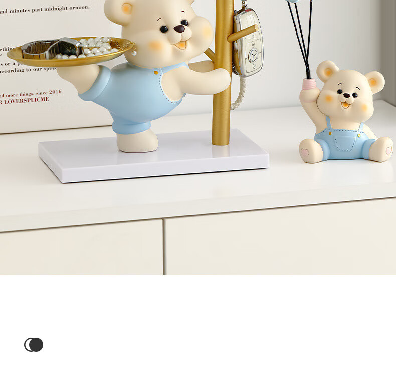 赟娅入户门口玄关放钥匙收纳摆件呆萌熊置物架桌面装饰品乔迁新居礼品 踢腿小熊收纳-蓝色+钥匙架