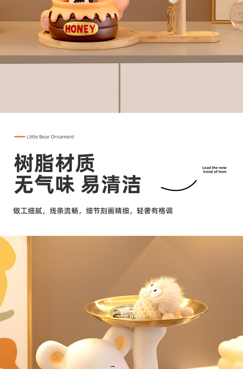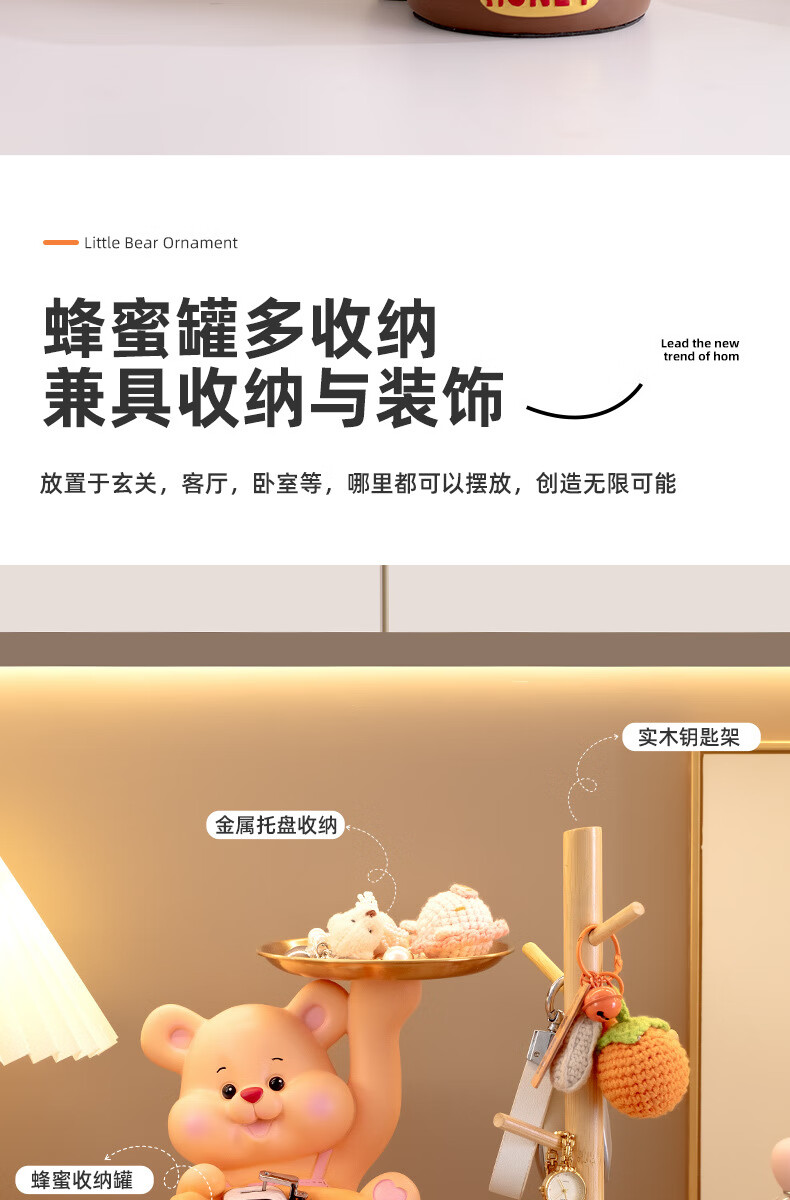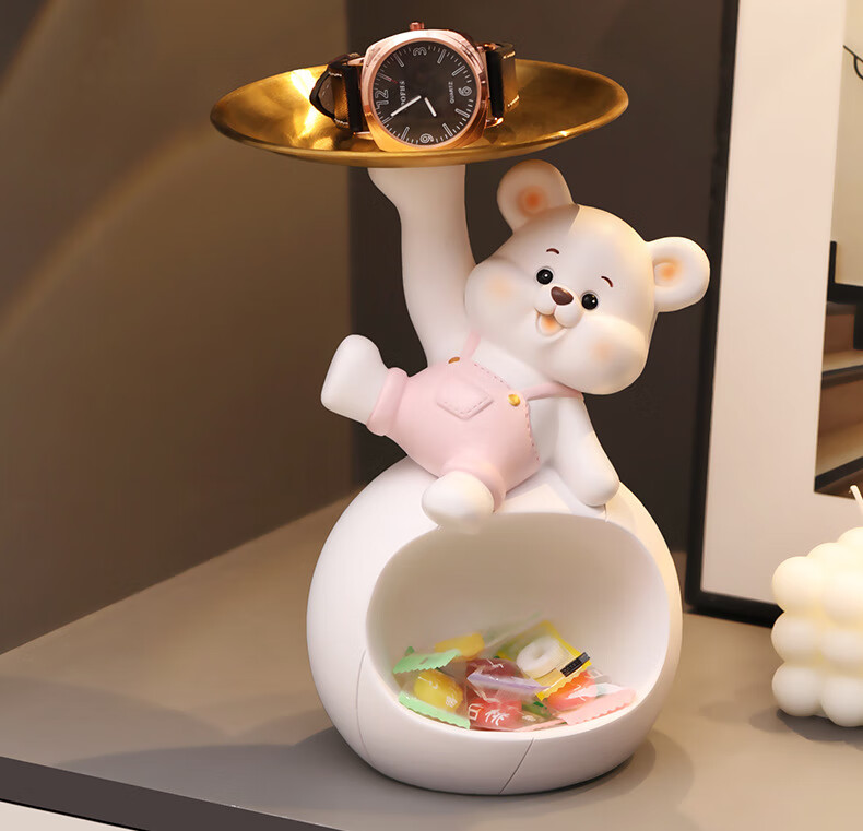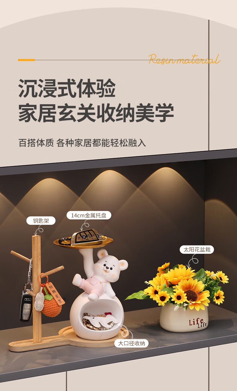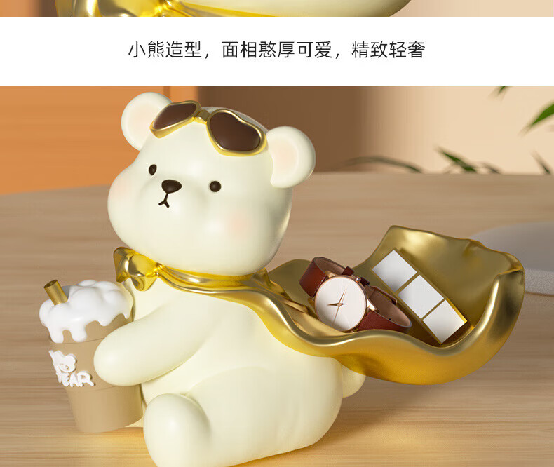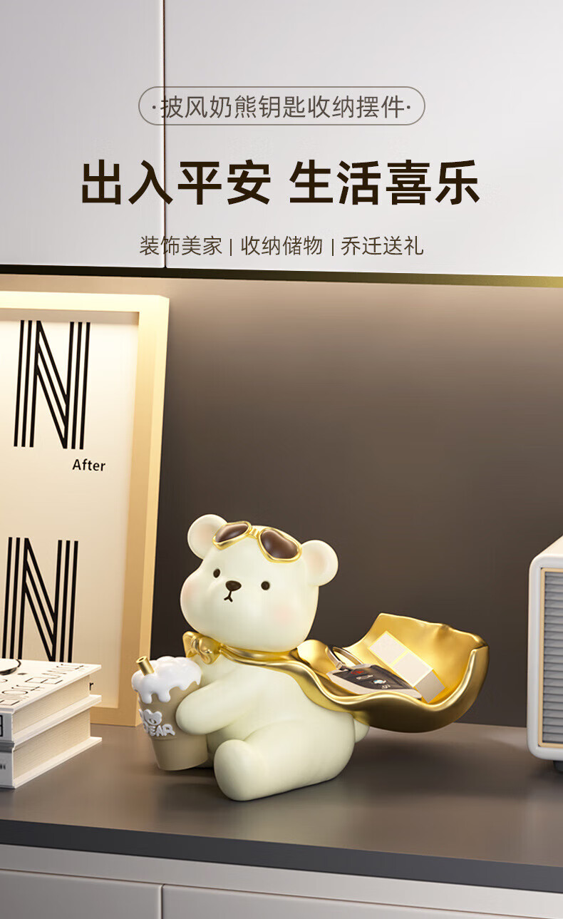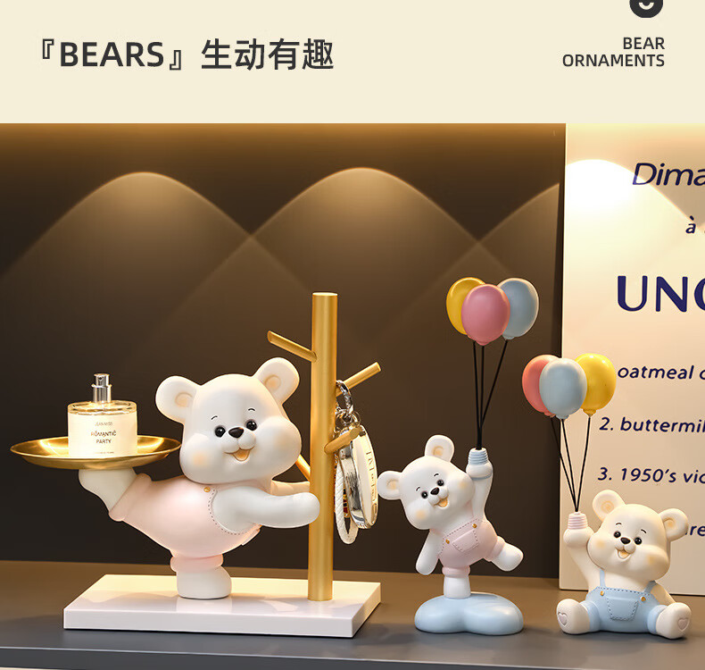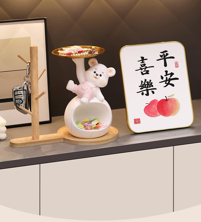 赟娅入户门口玄关放钥匙收纳摆件呆萌熊置物架桌面装饰品乔迁新居礼品 踢腿小熊收纳-蓝色+钥匙架