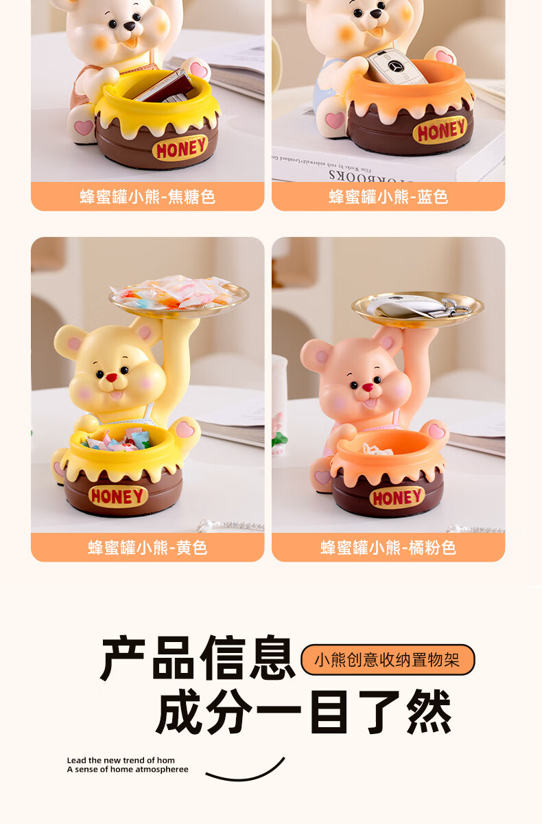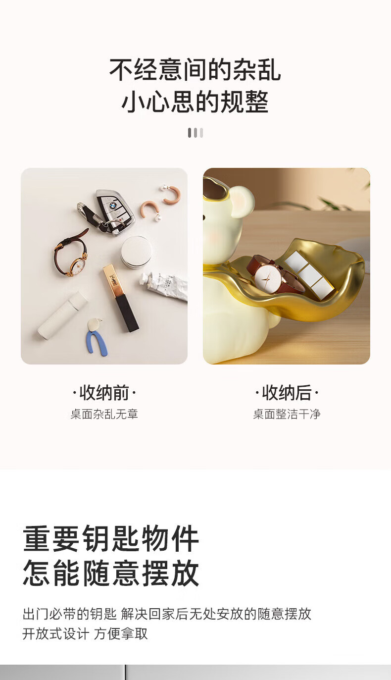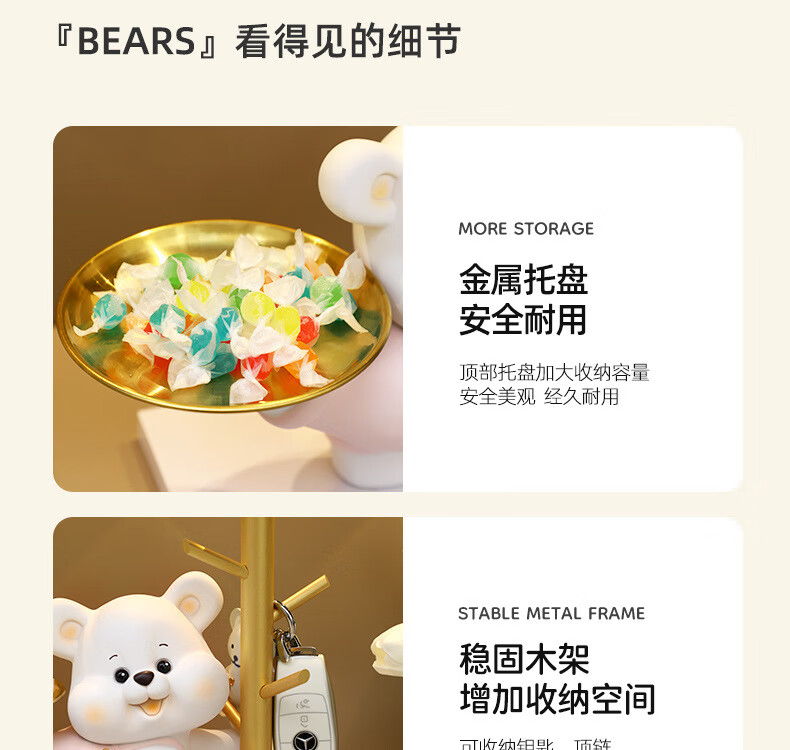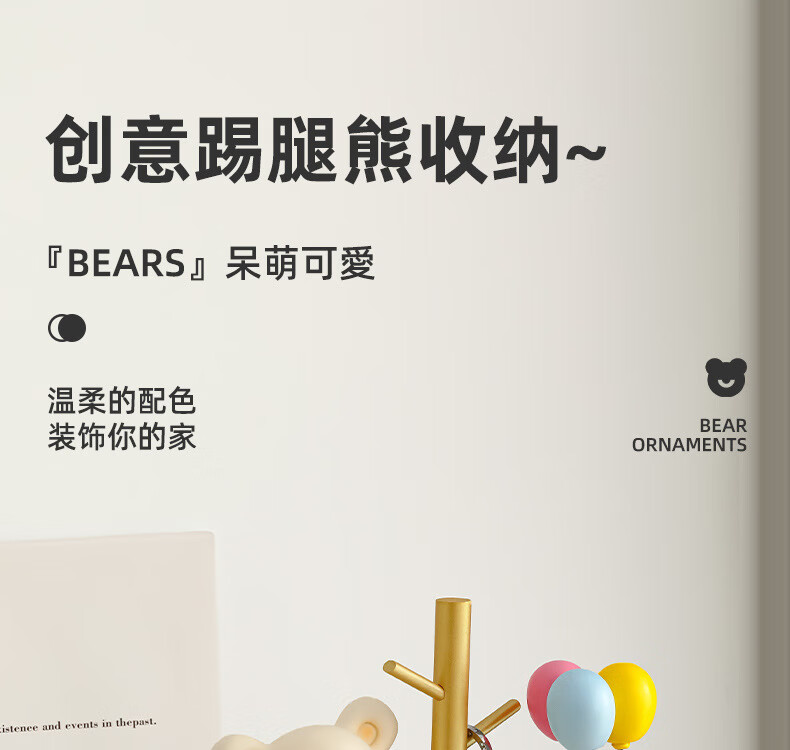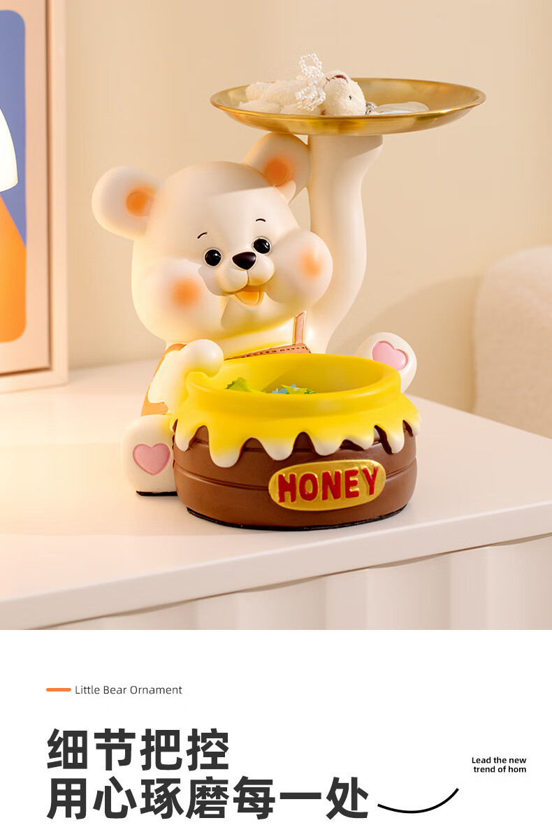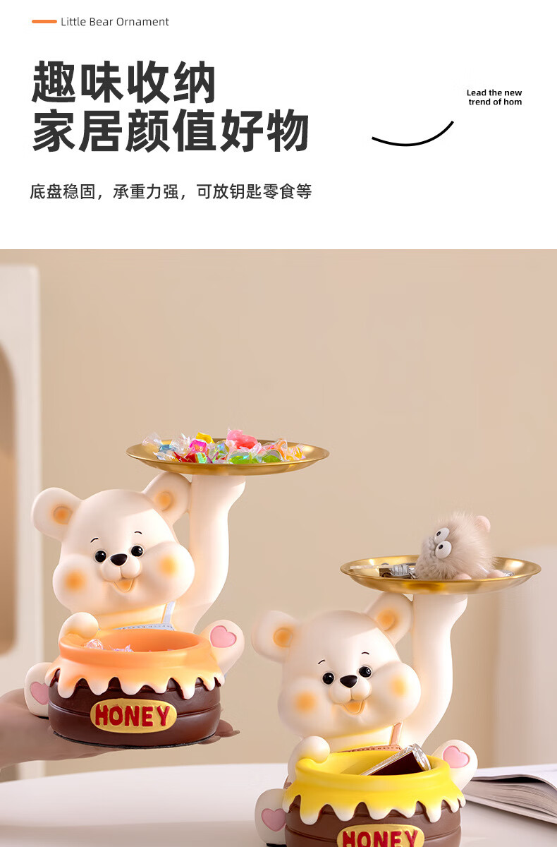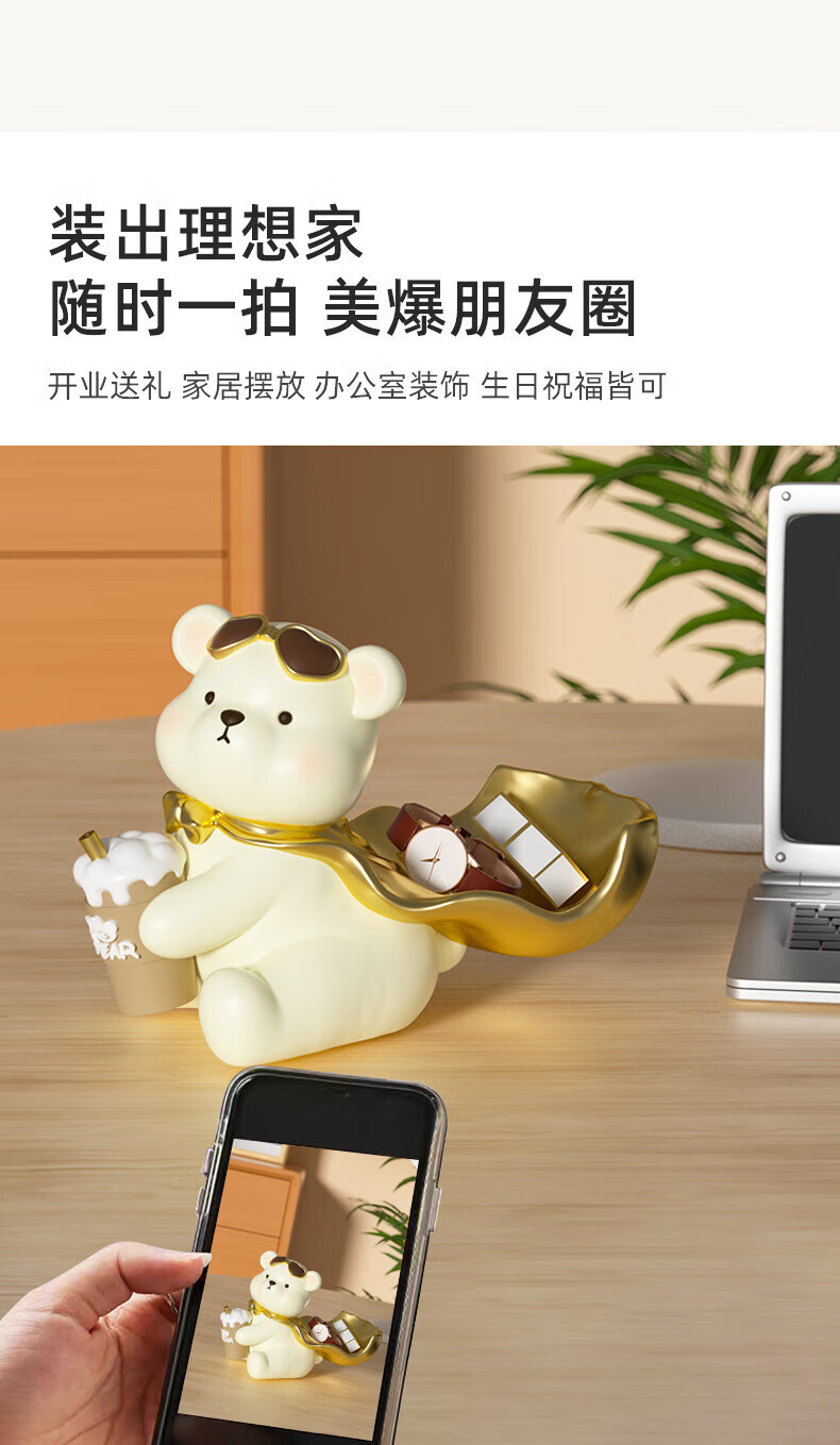 赟娅入户门口玄关放钥匙收纳摆件呆萌熊置物架桌面装饰品乔迁新居礼品 踢腿小熊收纳-蓝色+钥匙架