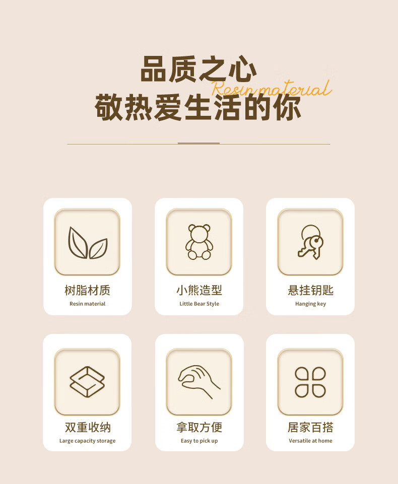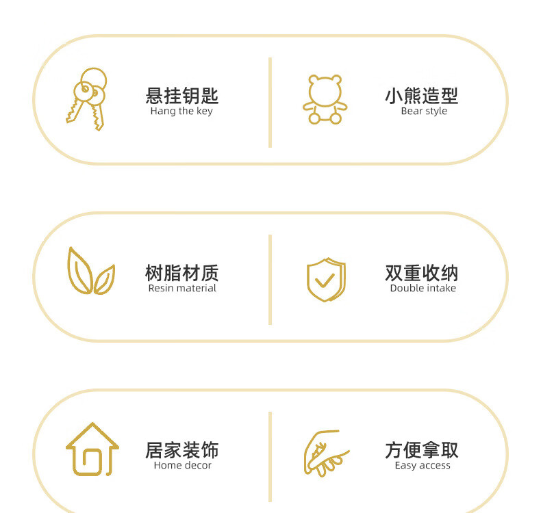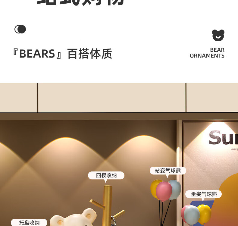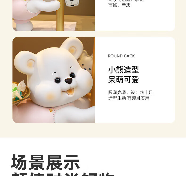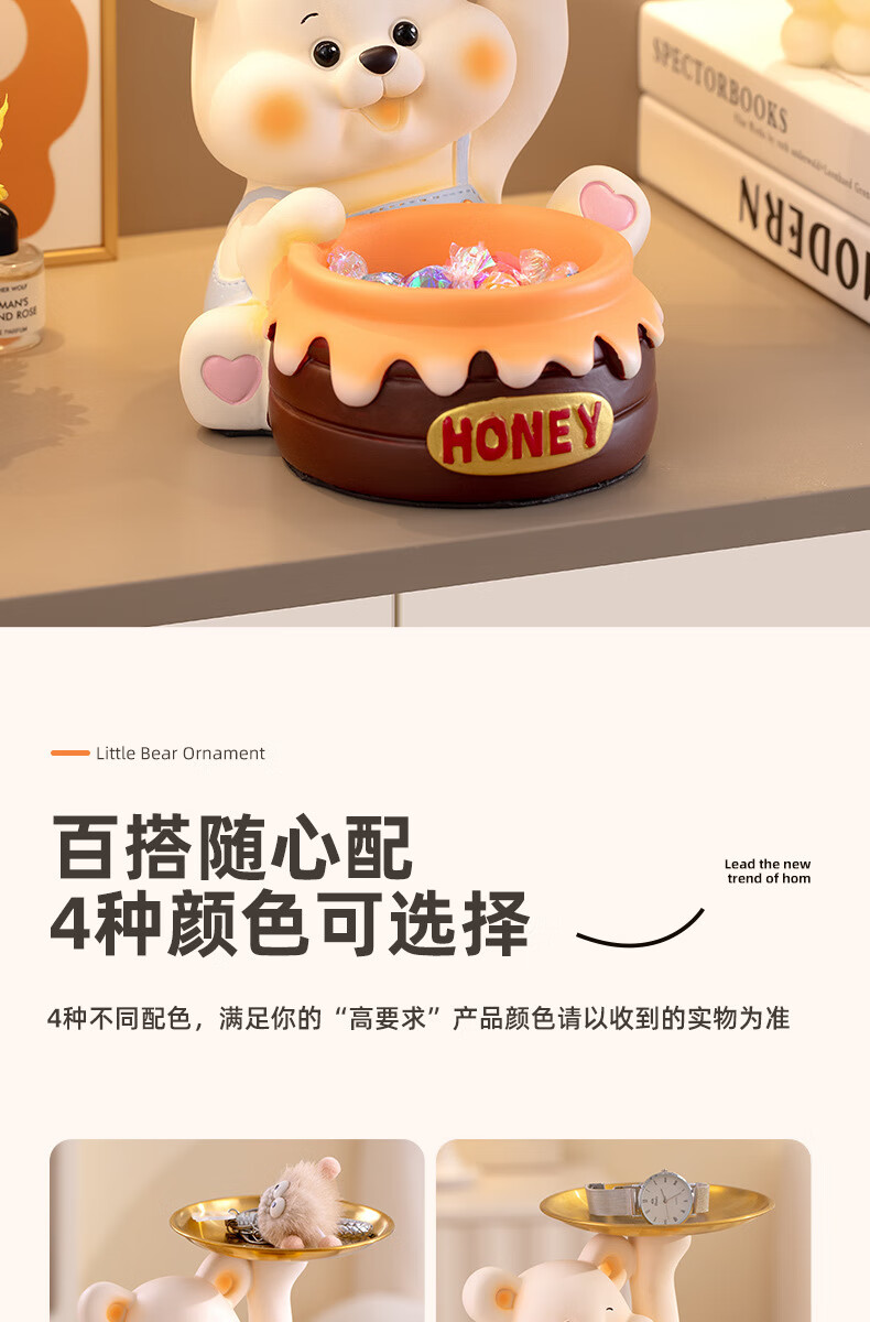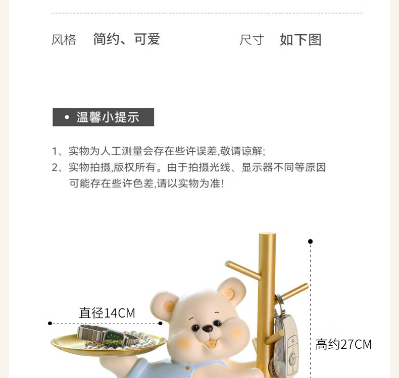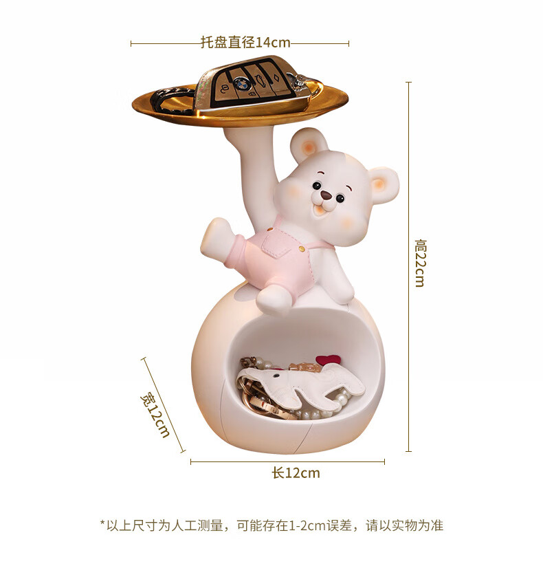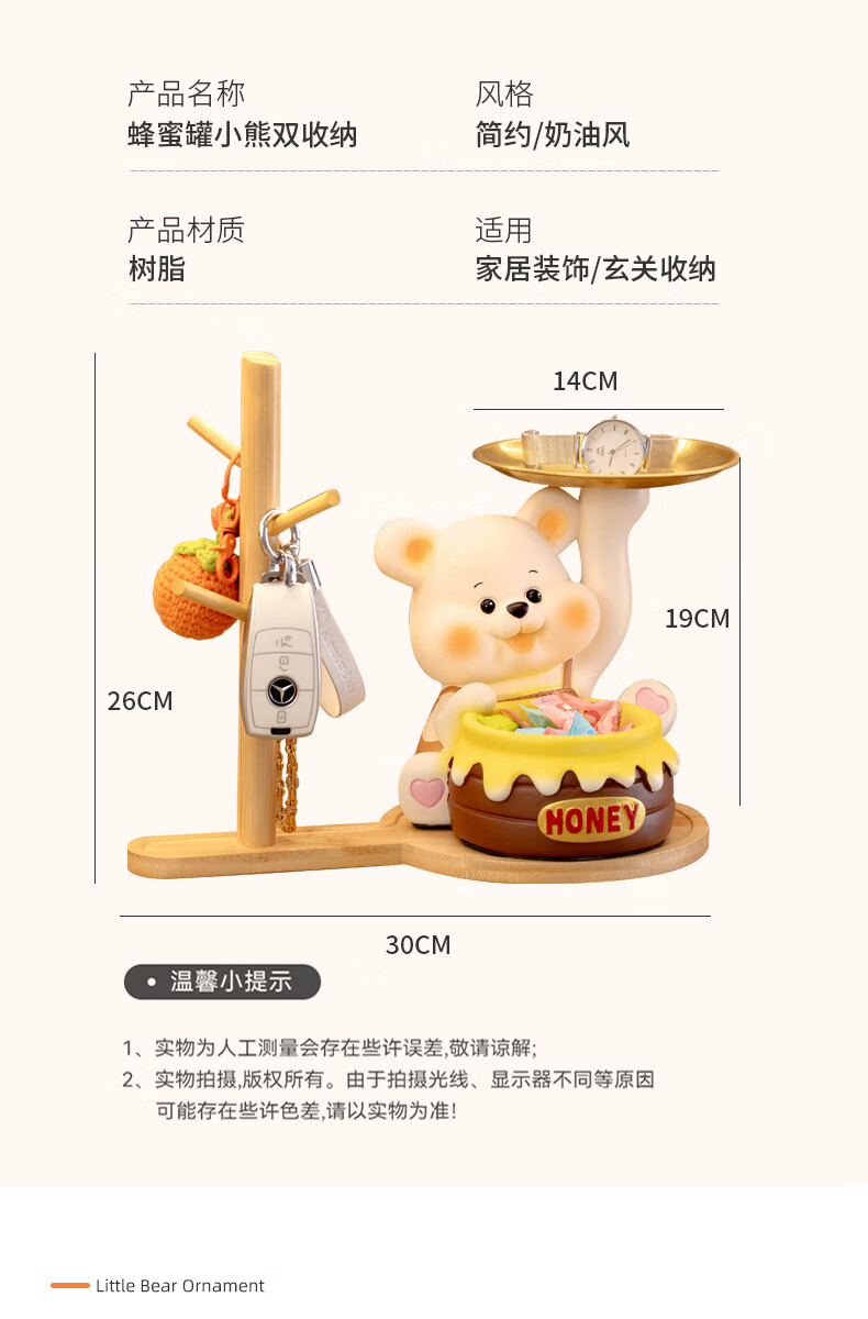 赟娅入户门口玄关放钥匙收纳摆件呆萌熊置物架桌面装饰品乔迁新居礼品 踢腿小熊收纳-蓝色+钥匙架