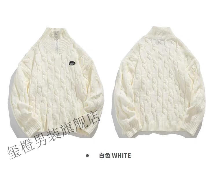 Xi Orange NOONOZ Autumn and Winter American niche half-zip sweater top men's retro lazy style pullover sweater Xi Orange Gray 2XL