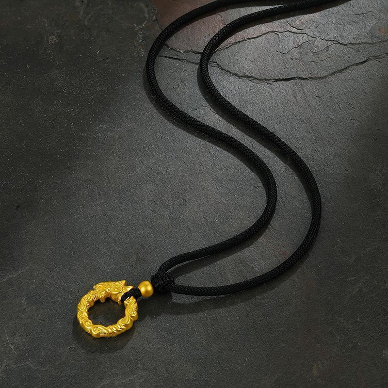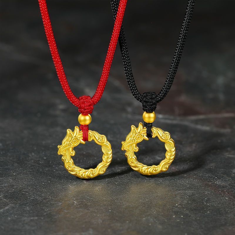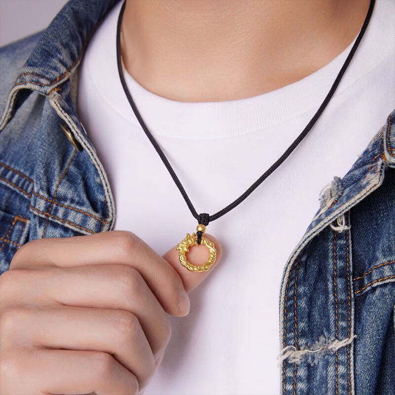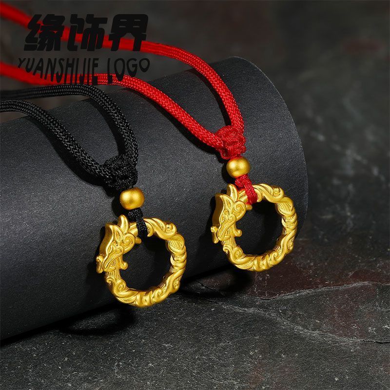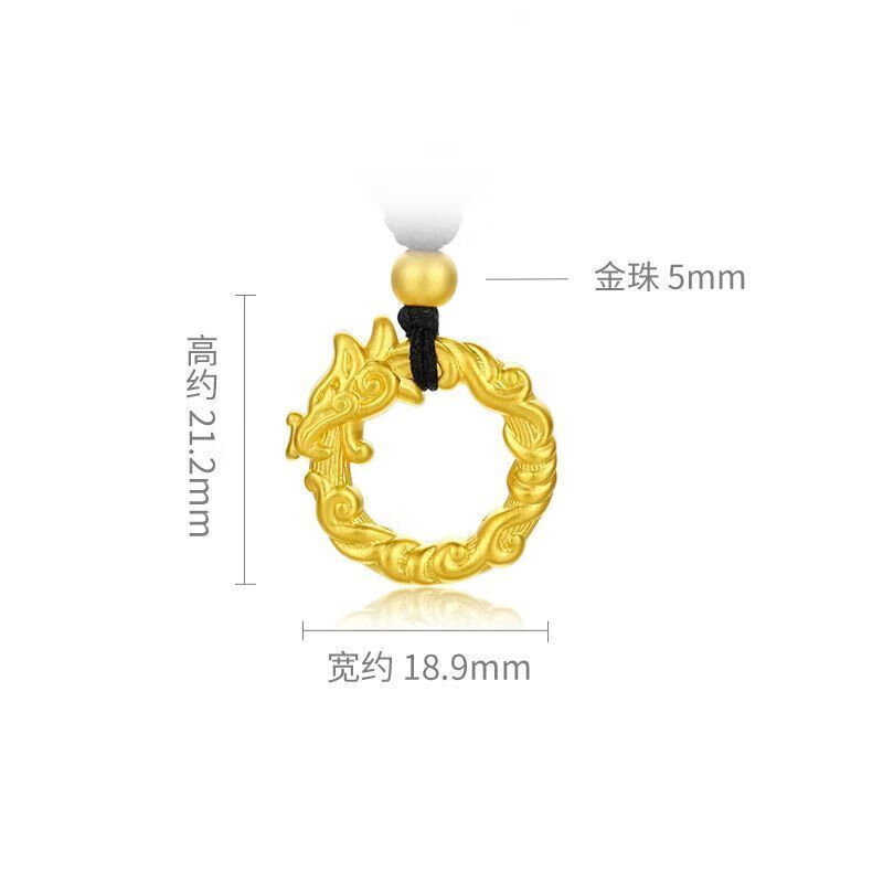 世智包银生肖龙金包银吊坠男女金平安扣龙本命年编织项链挂坠 金包银+本命年龙平安扣黑绳+超值 2.3g【13899港币】在保998小时