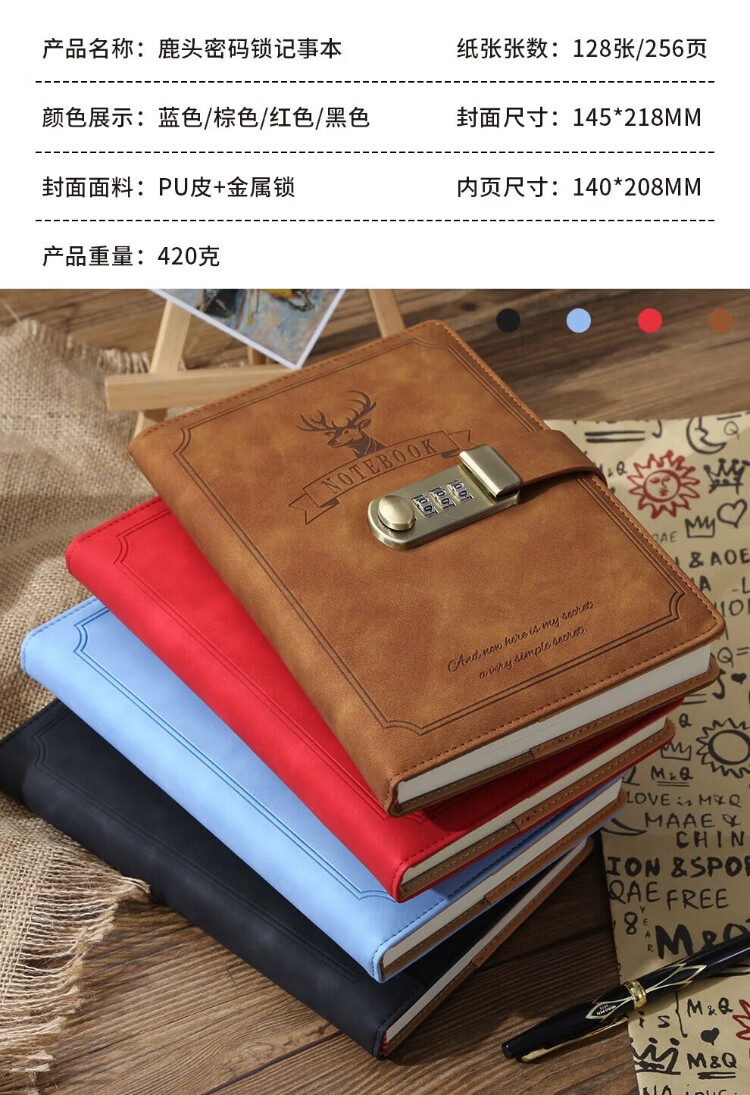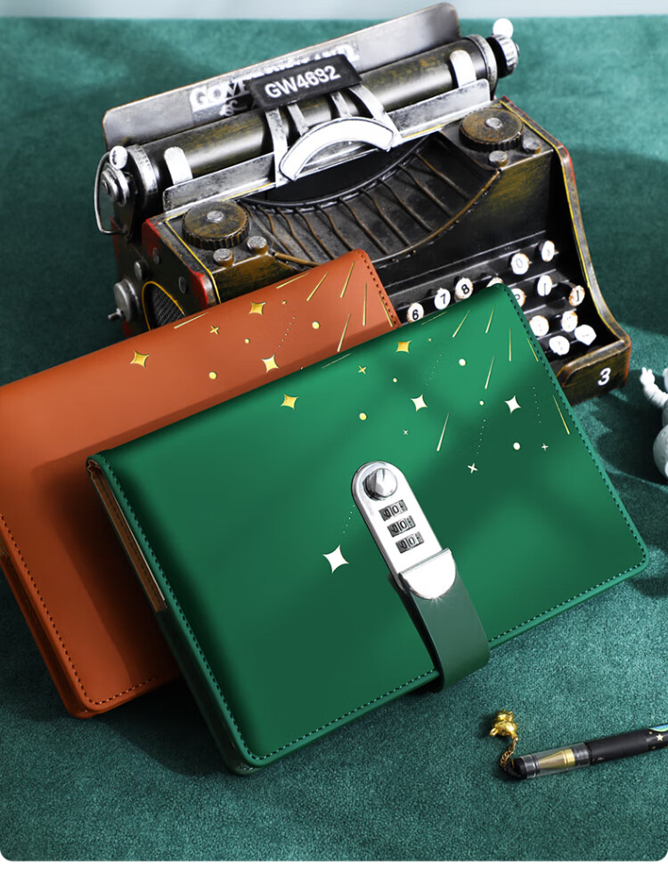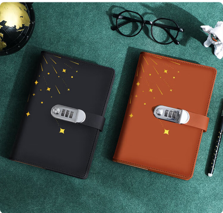 法拉蒙(faramon) 创意密码本日记本成人学生密码锁笔记本本子高颜值复古带锁商务记事本孩女孩手账本定制logo 粉色-指南针