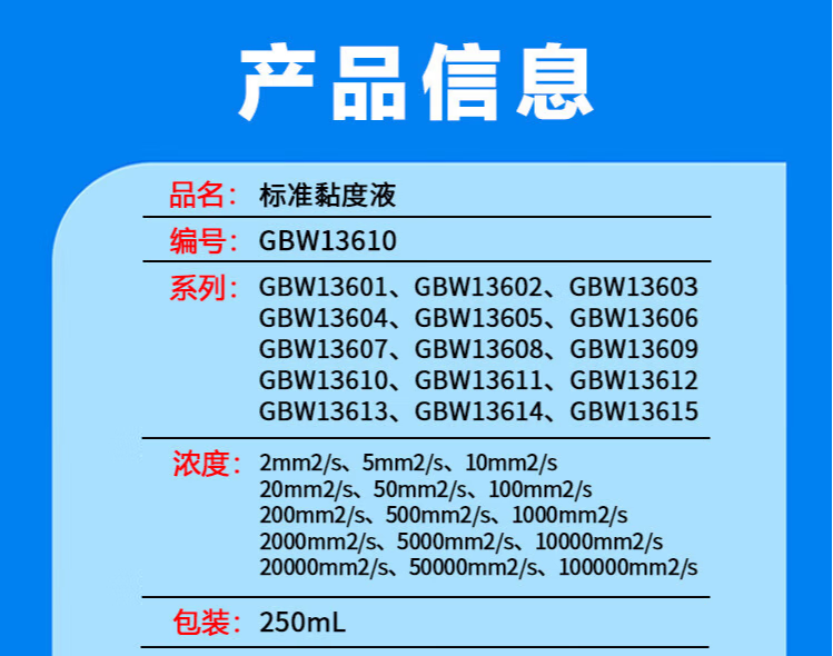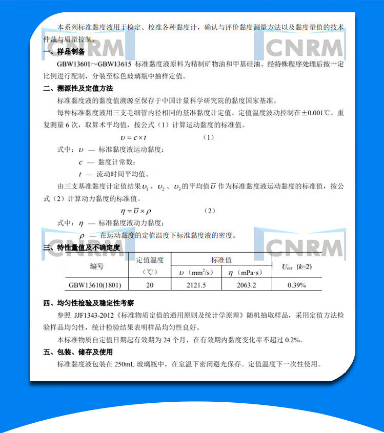 迈恻亦标准粘度液粘度标准液标油GBW13610计量院硅油黏度液国家标准物质 GBW13601 黏度值: 2mm2/s 包装: