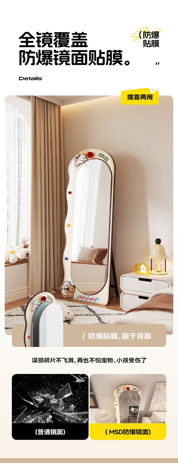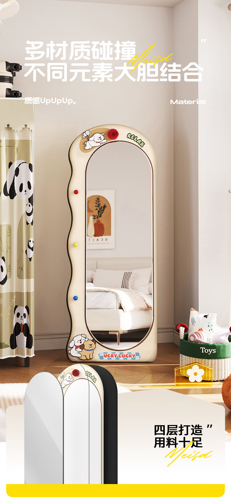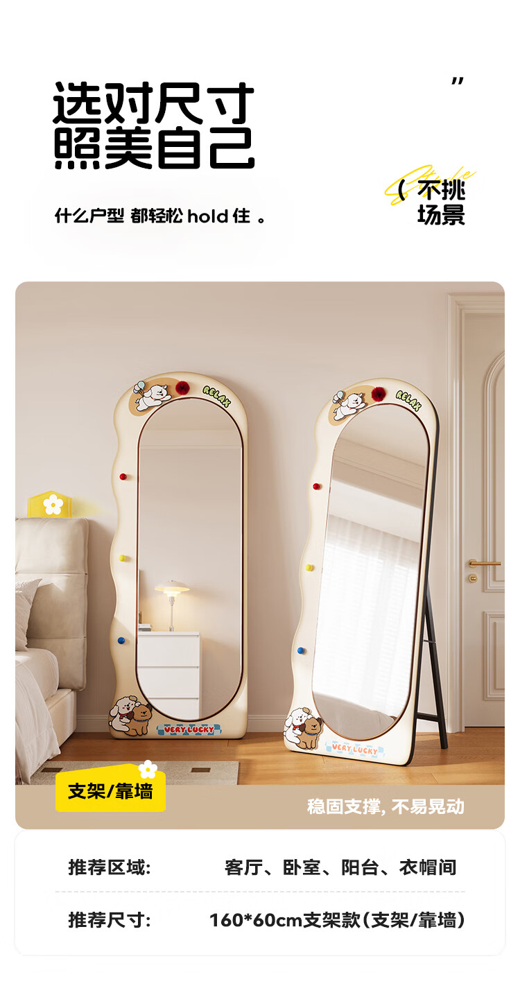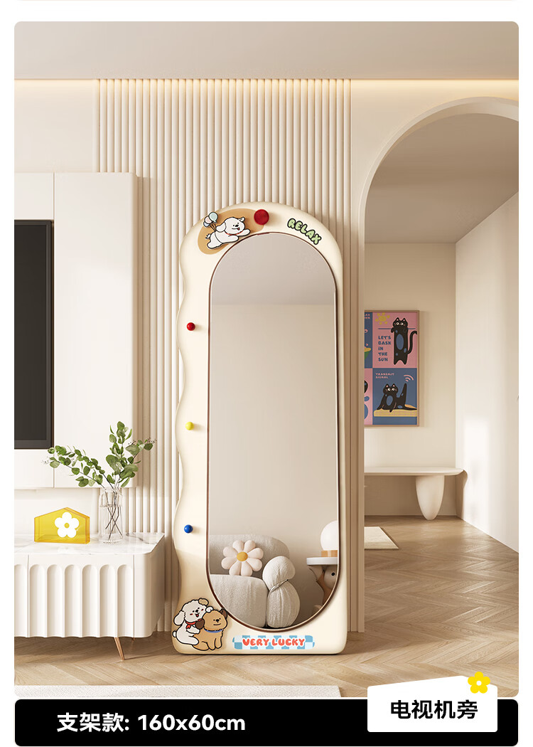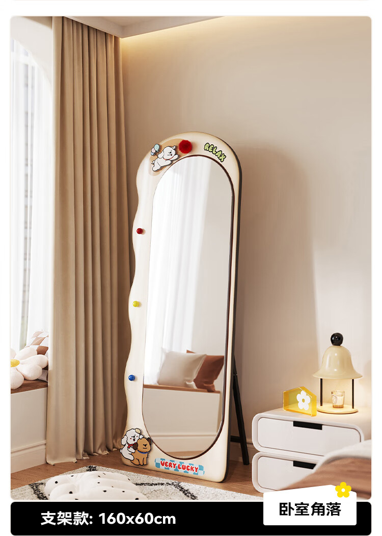美世达镜子全身镜家用挂墙穿衣镜奶油风卧室装饰ins风落地试衣镜 支架/靠墙款160X60CM