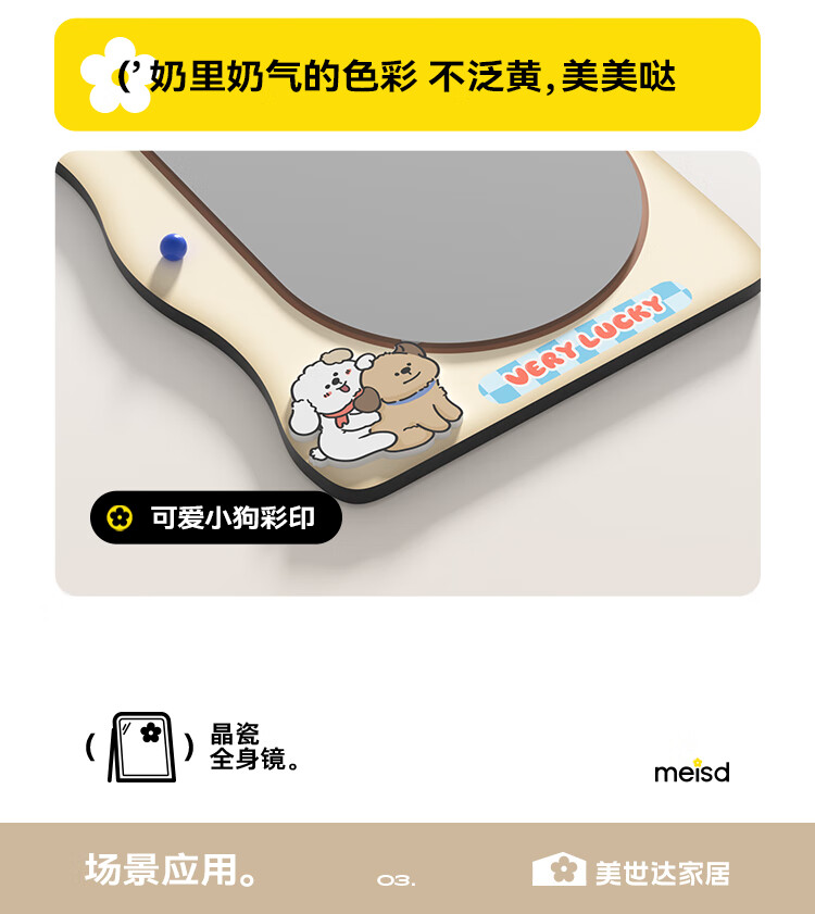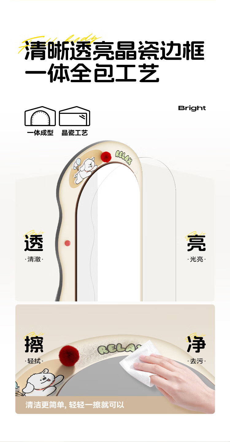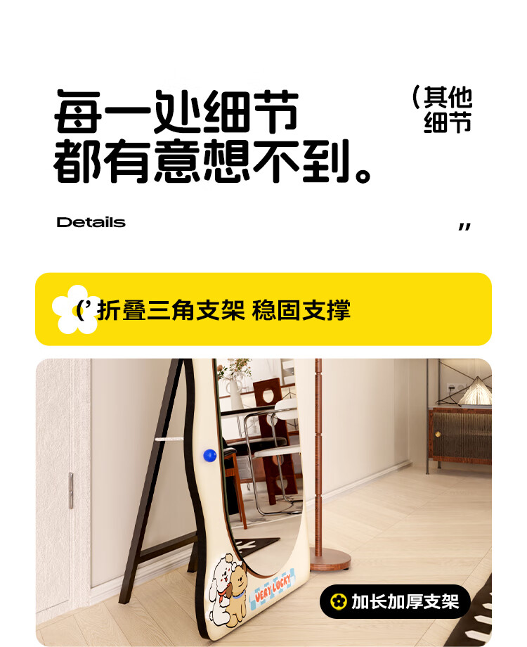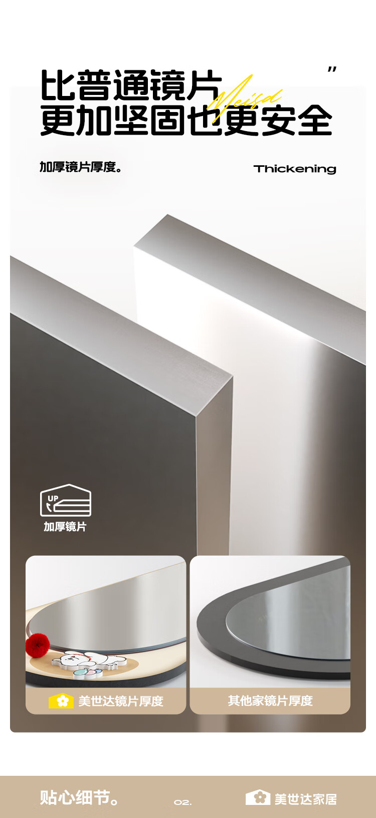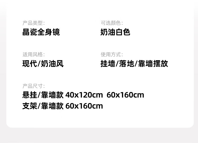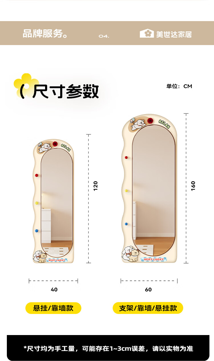 美世达镜子全身镜家用挂墙穿衣镜奶油风卧室装饰ins风落地试衣镜 支架/靠墙款160X60CM