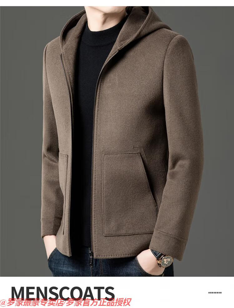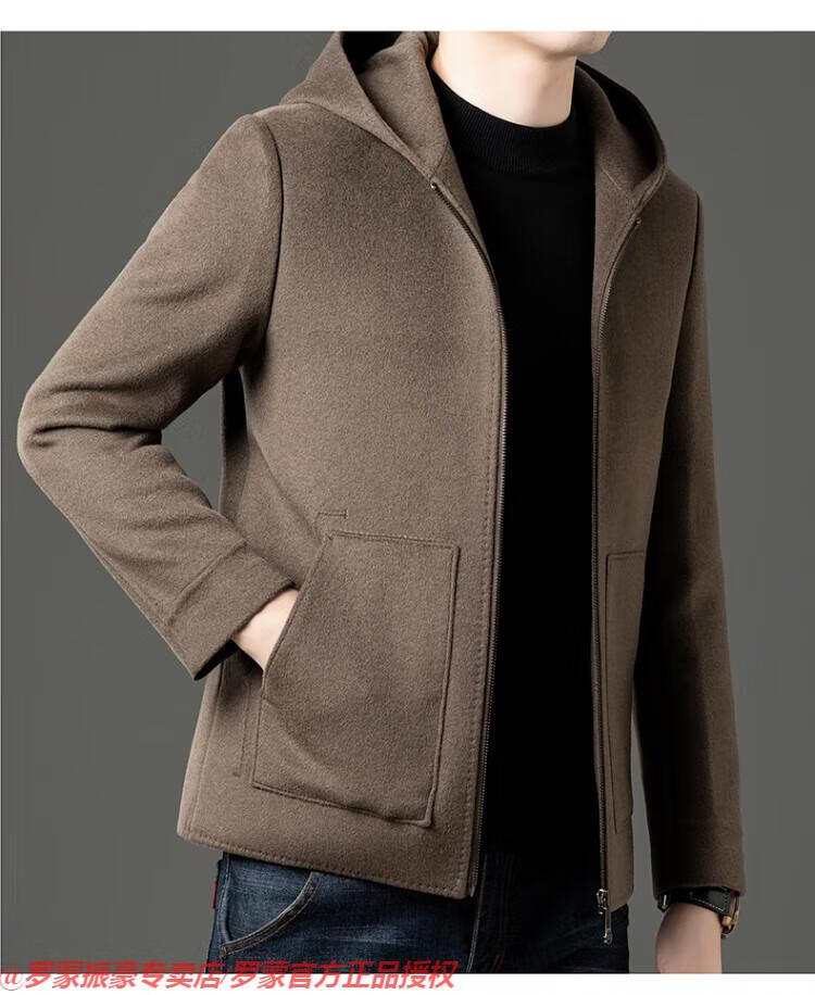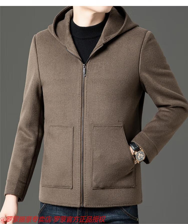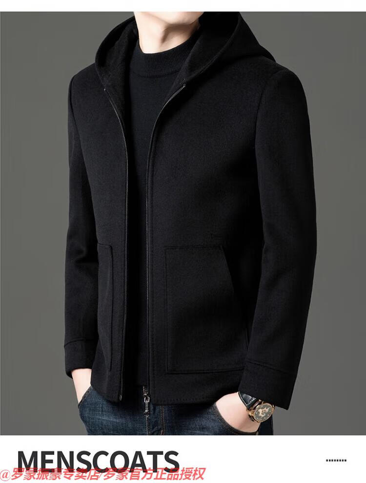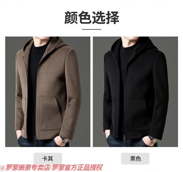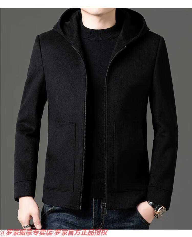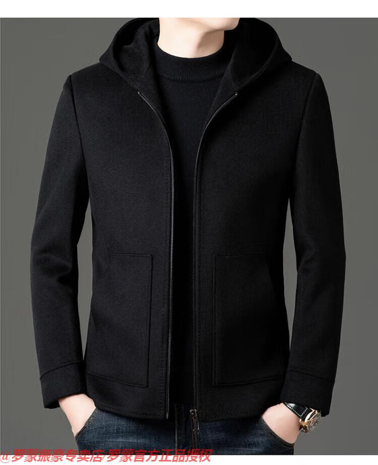 罗蒙(ROMON)秋冬季羊毛大衣男短款连帽中年双面呢高端羊毛绒毛呢外套夹克 黑色 175/L