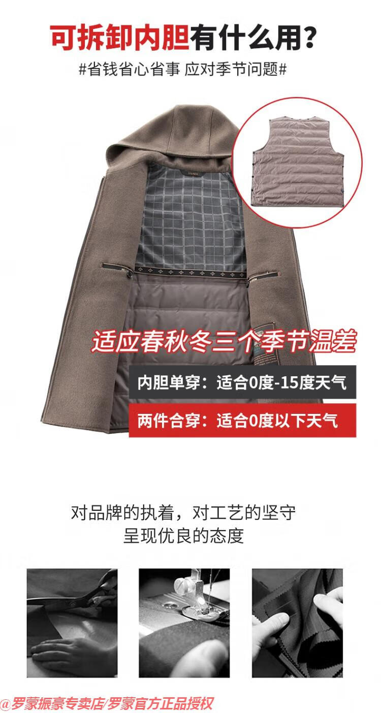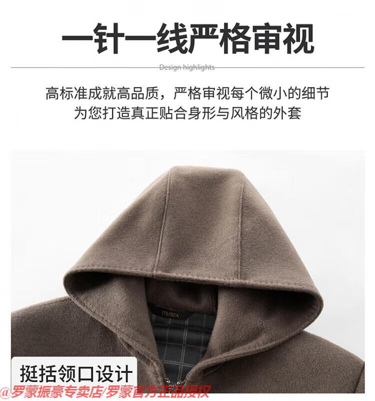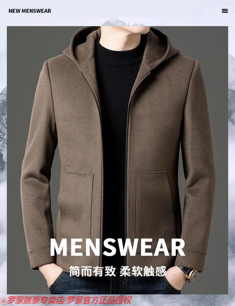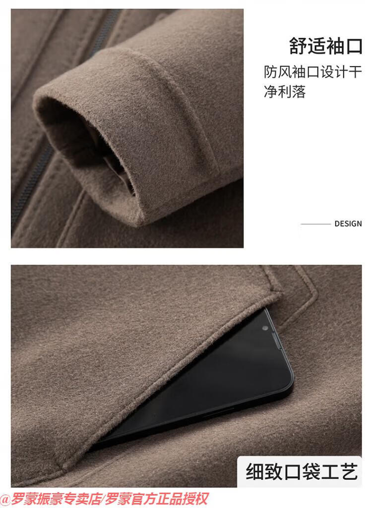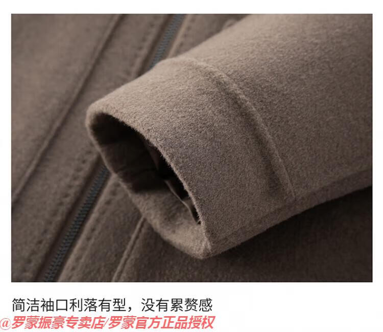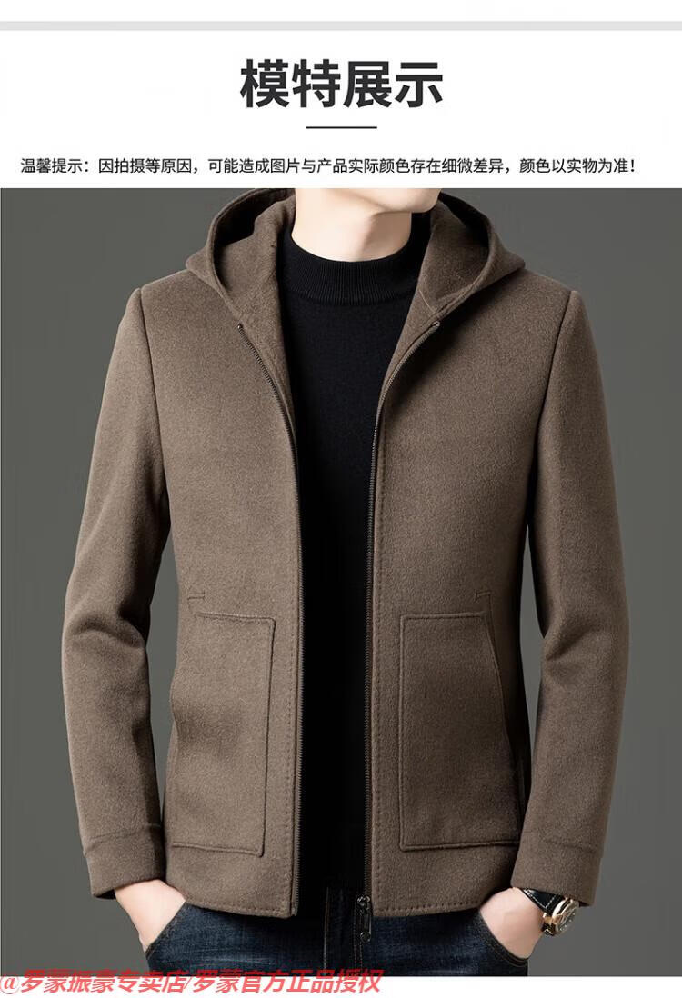 罗蒙(ROMON)秋冬季羊毛大衣男短款连帽中年双面呢高端羊毛绒毛呢外套夹克 黑色 175/L
