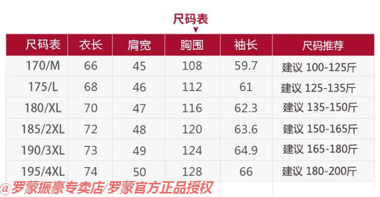 China (cm) 165 / 88-90 170 / 96-98 175 / 108-110 180 / 118-122 185 / 126-130