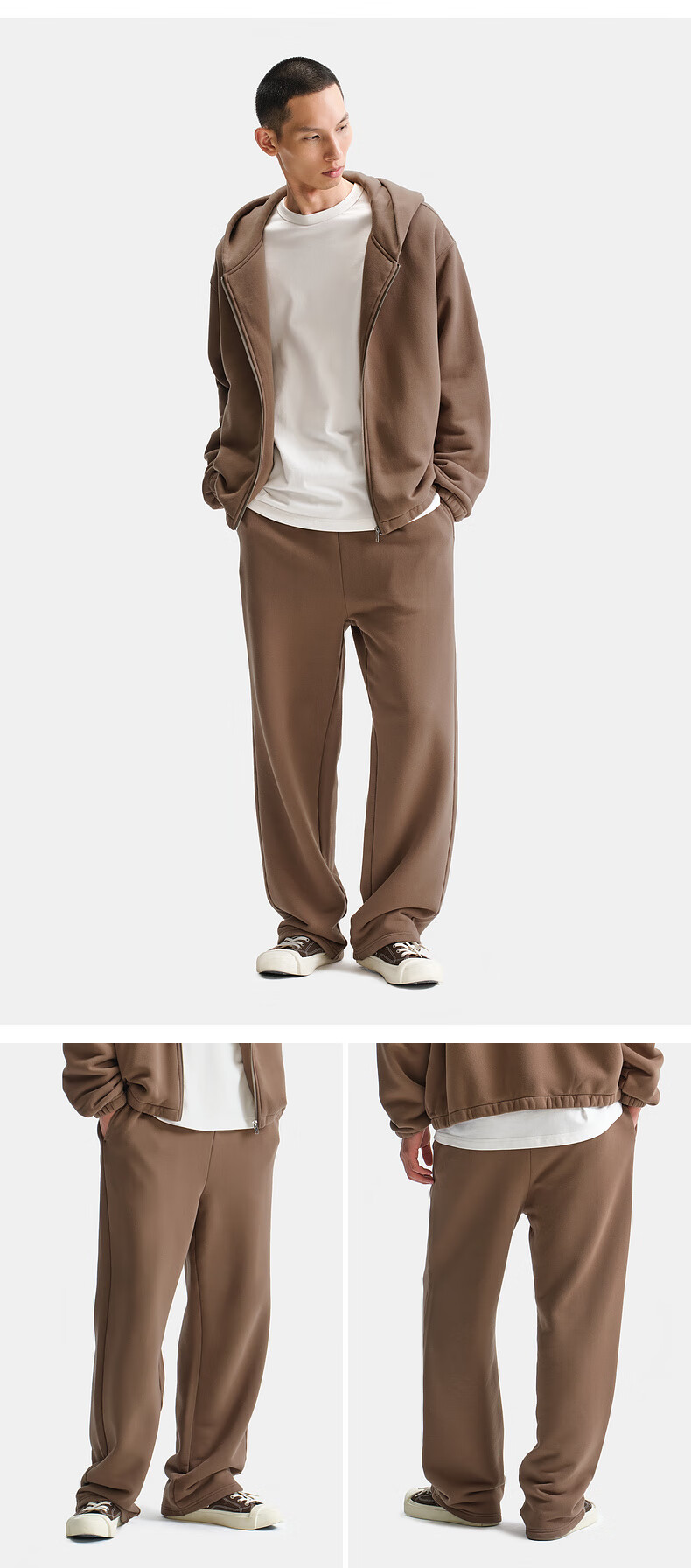 Nice rice good rice winter 400G cotton terry cloth reverse suede bottom distressed loose sweatpants NGD12048 Brown (400G) S
