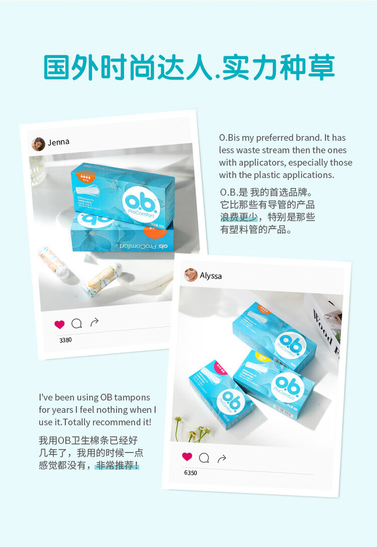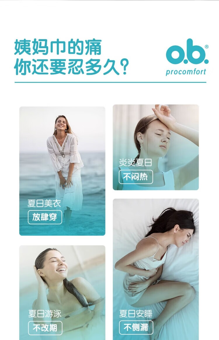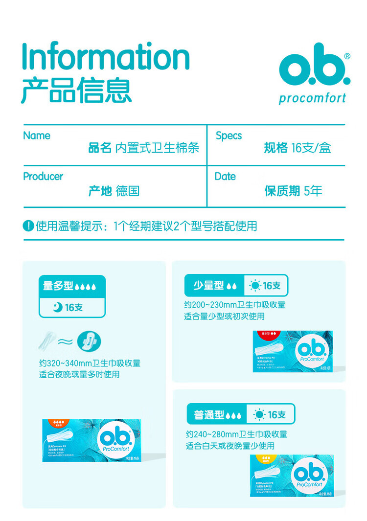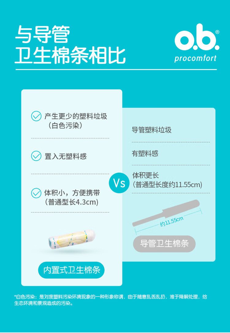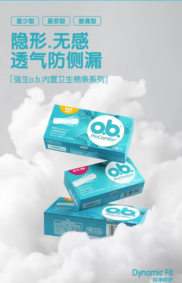 o.b.德国强生ob棉条量多型导管尾翼内置卫生巾游泳指入式月经棉条 量少型1盒【UUA指入式】 16支