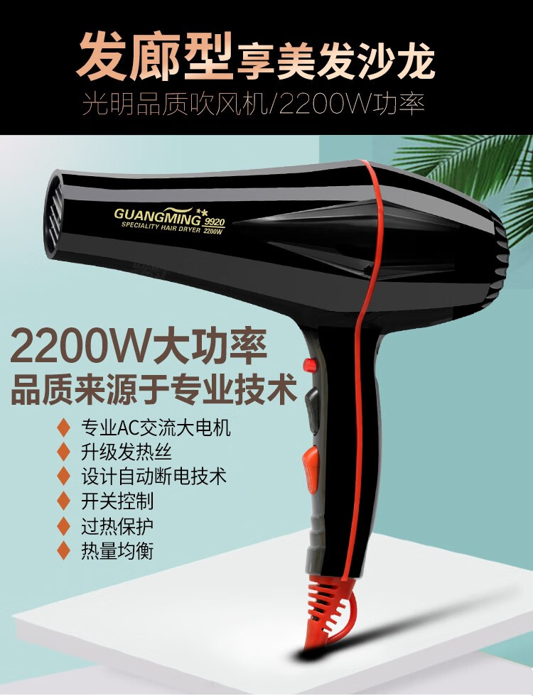 Secador de pelo RCT-9920 alta potencia 2200W aire caliente y frío peluquería casera viento fuerte secador de pelo de secado rápido Guangming 2200w secador de pelo 9928