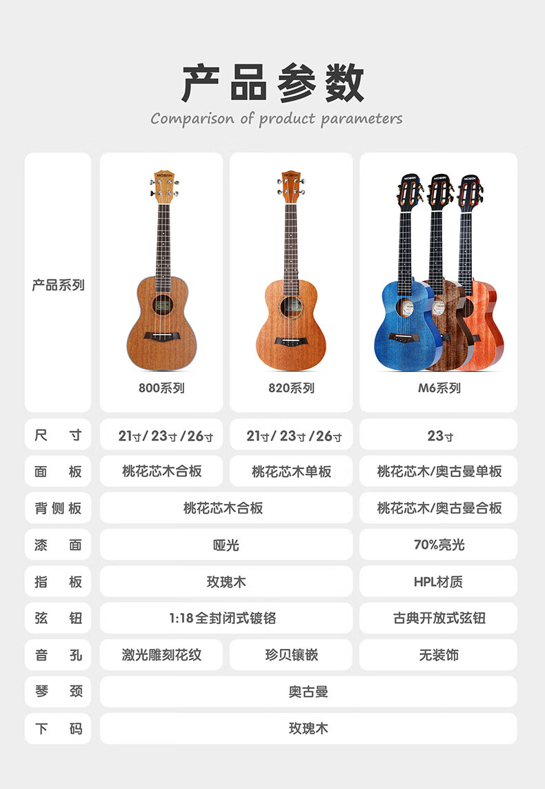莫森(MOSEN)尤克里里女生初学者入门级小吉他23寸单板学生乌克丽丽MUC800 【单板】23寸云杉木M3NC(配件包+