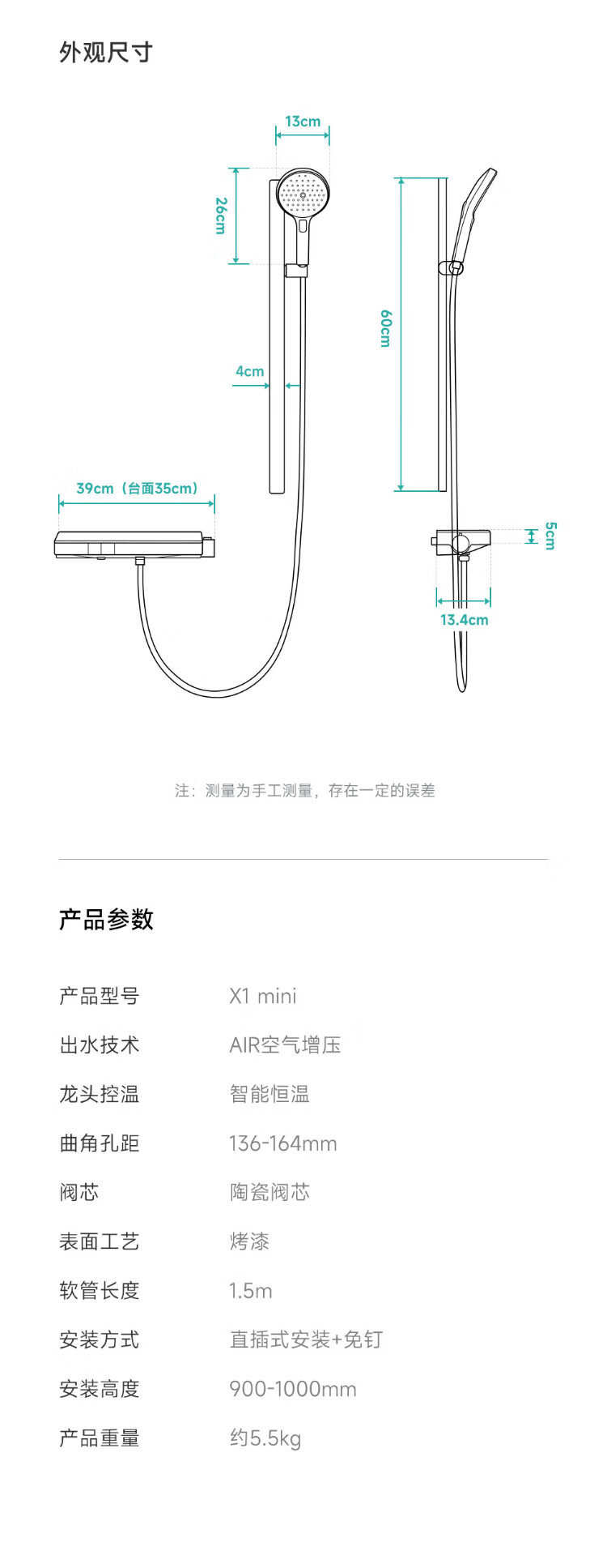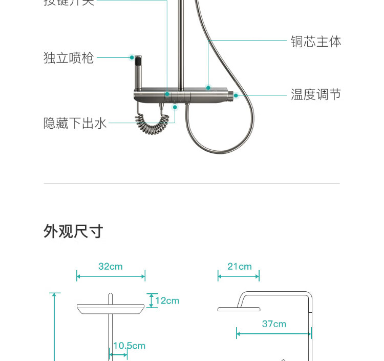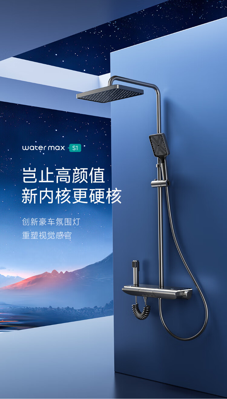 water max【限补15%】浴室全套一体全铜淋浴花洒套装银色家用增压卫浴 H728奶白色