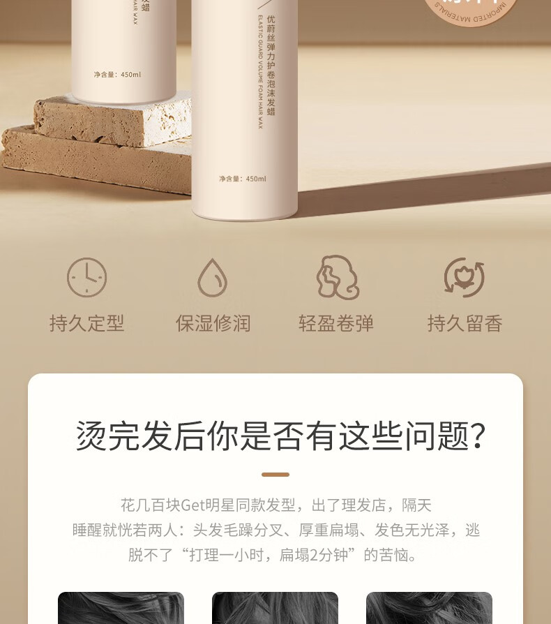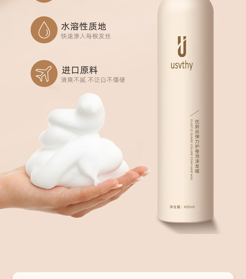 USVTHYusvthy Foam Hair Wax French Perm Natural Fluffy Styling Moisturizing Elastin Bubble Mousse Men and Women Hairspray Light Foam Hair Wax 450ml 99ml Travel Pack
