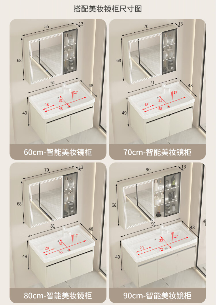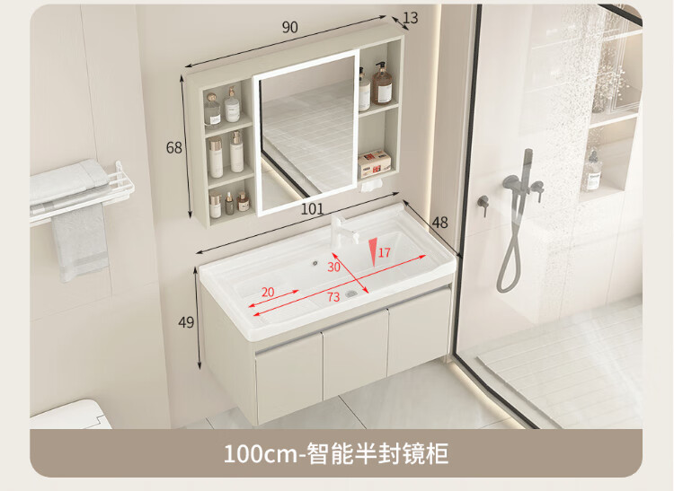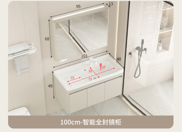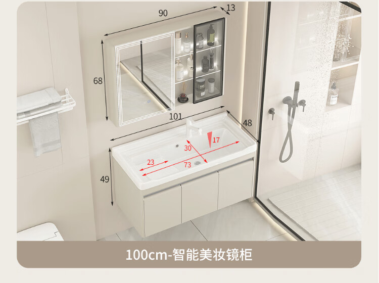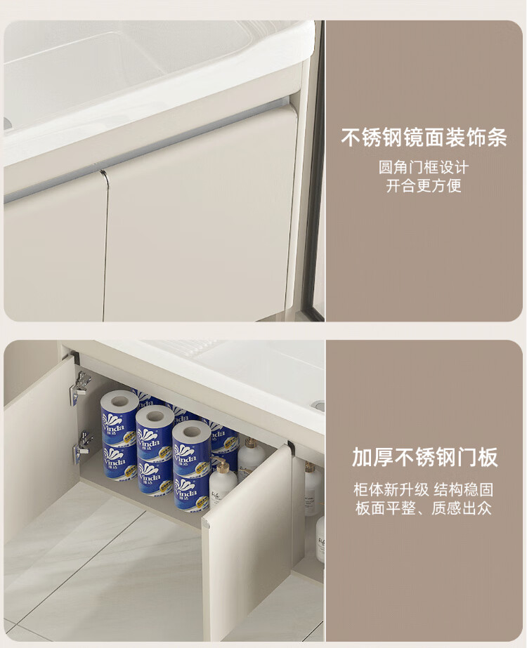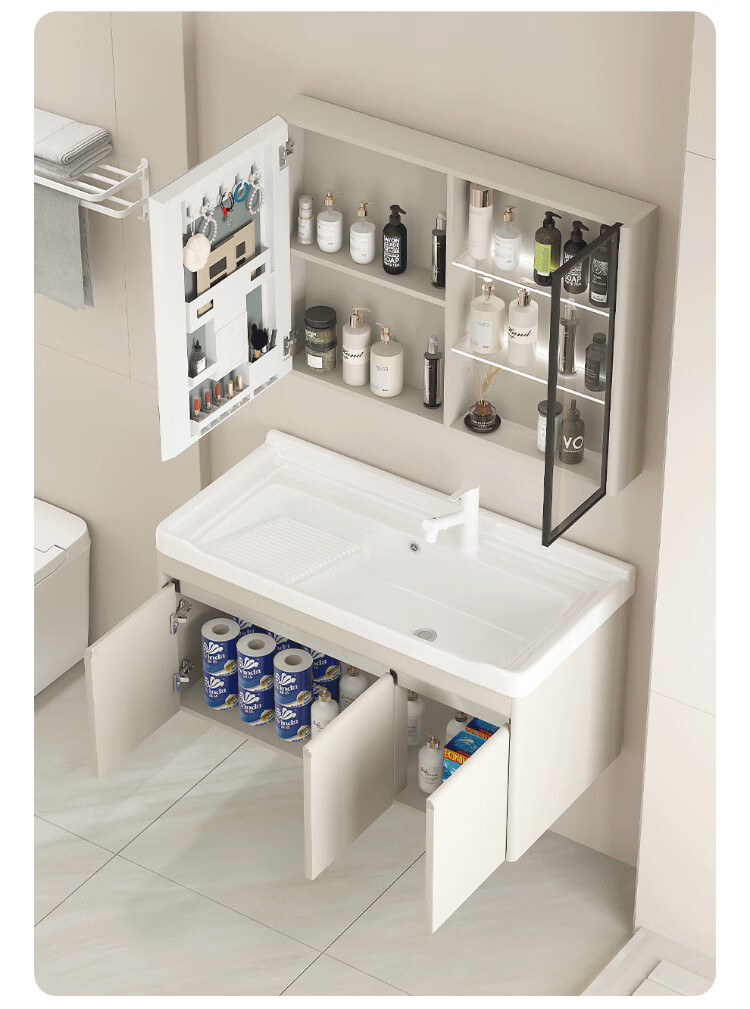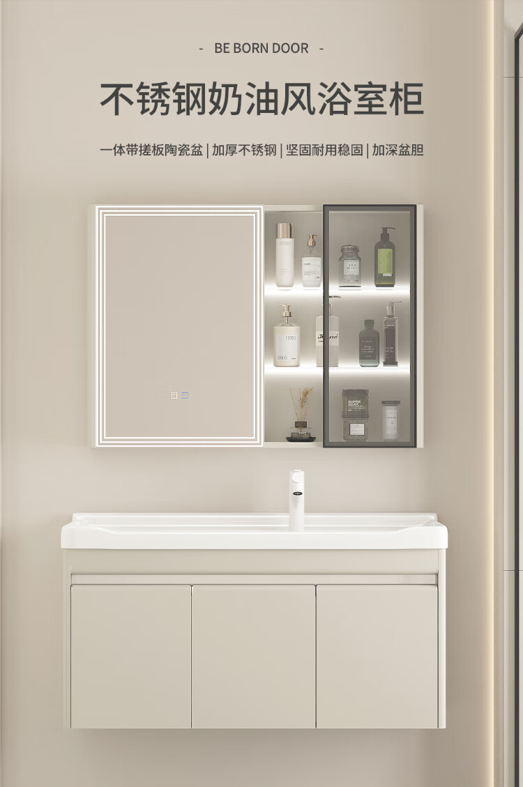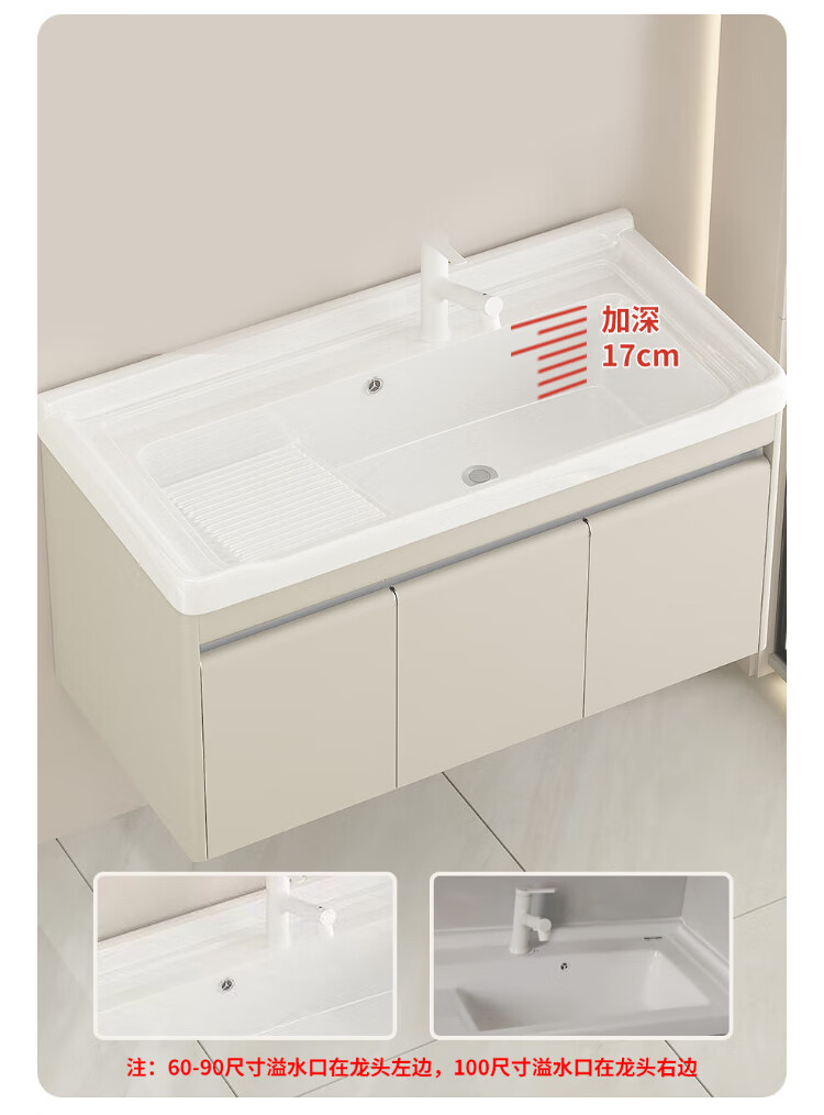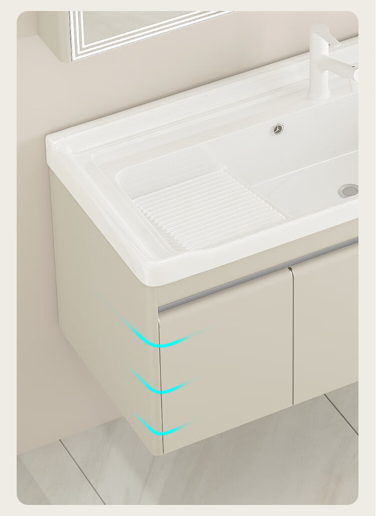 Haisonda stainless steel bathroom cabinet combination laundry cabinet ceramic integrated laundry basin with washboard laundry pool deepening sink laundry cabinet 12048cm + smart beauty mirror cabinet