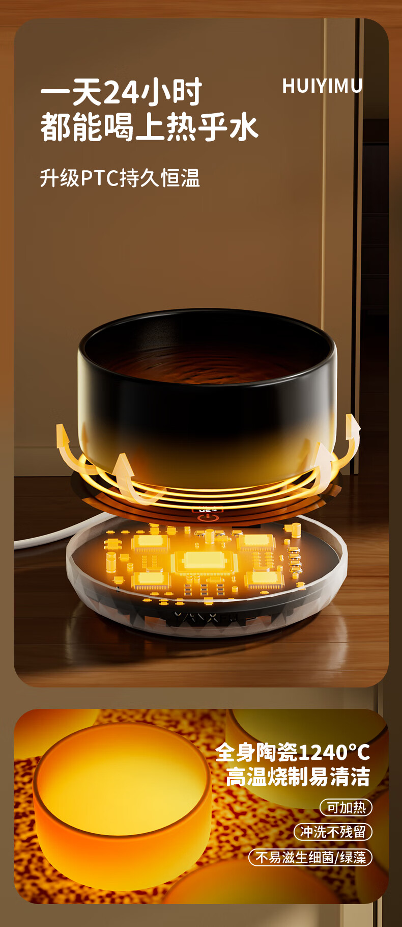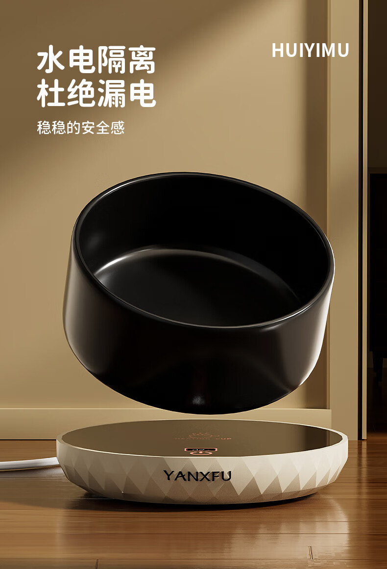 欧曼丽莎恒温猫咪饮水机酸奶机喝水碗冬天加热罐头保温陶瓷喂水饮水器宠物 釉黑550ml陶瓷碗+数显3档恒温垫
