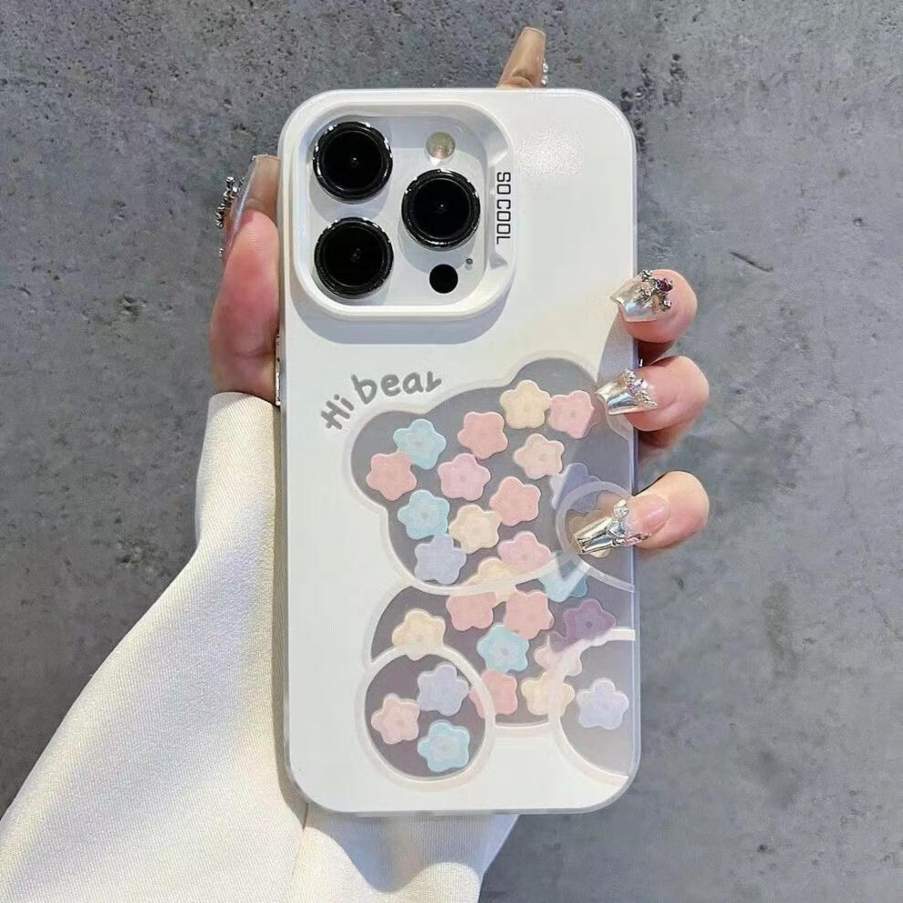 嵩林星星小熊彩银镭射适用苹果16Pro创意16潮流16ProMax防摔15系列手机壳 彩银壳-白色-星星小熊 苹果16PRO