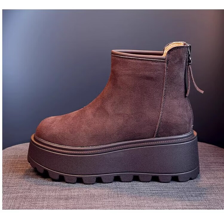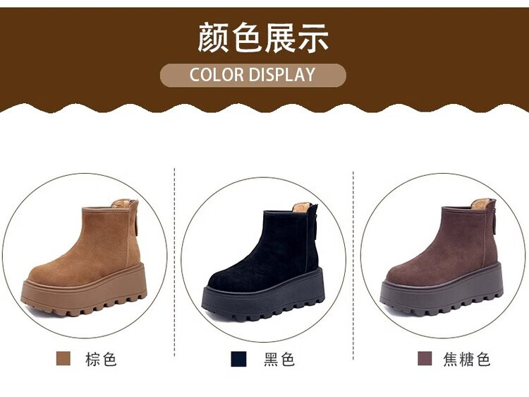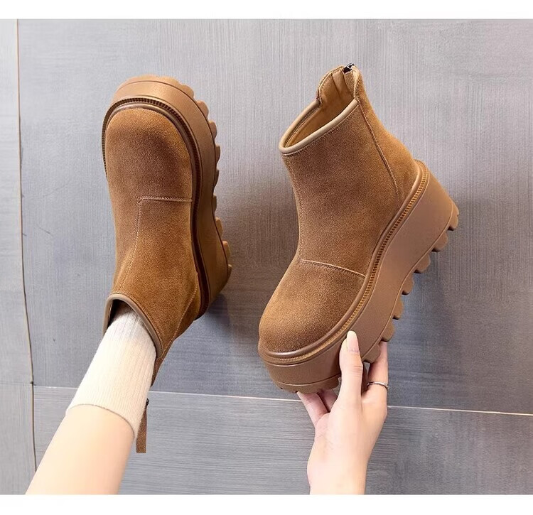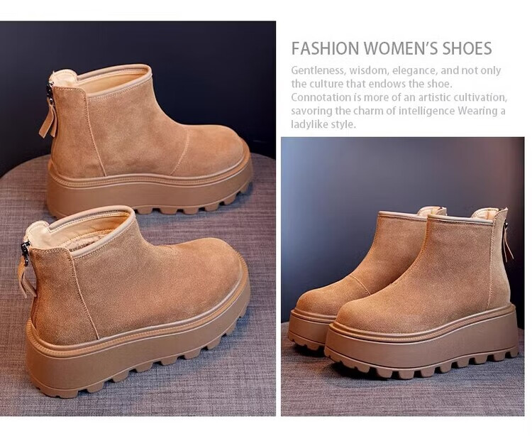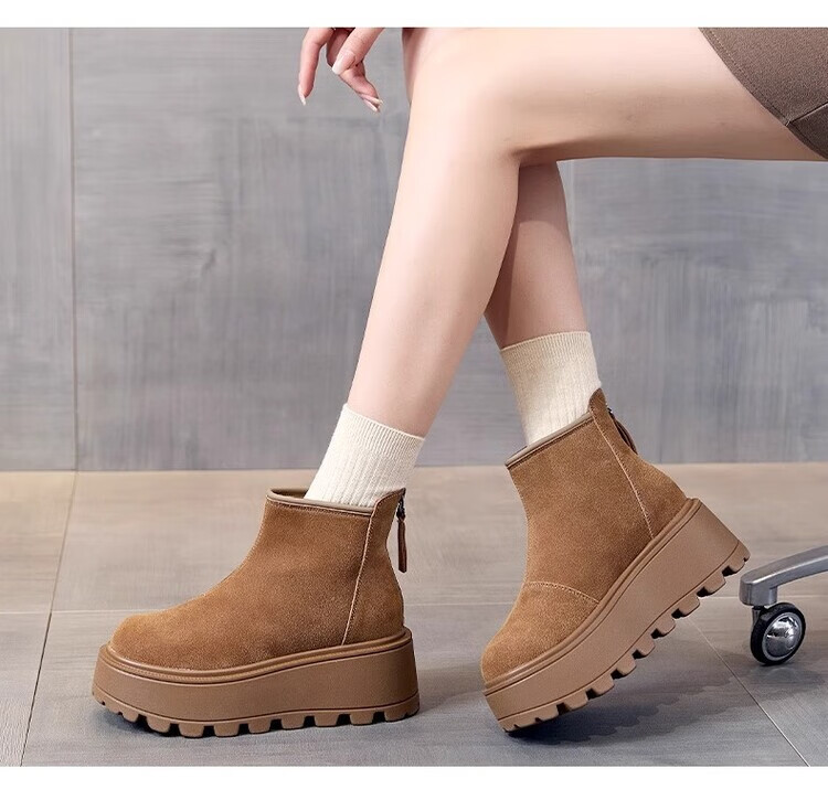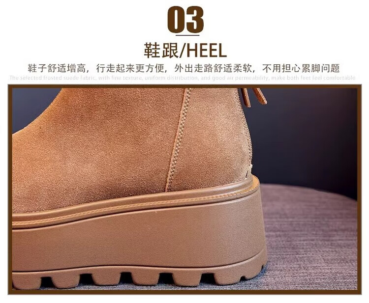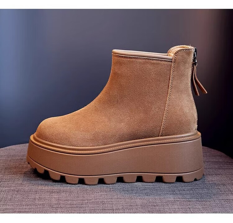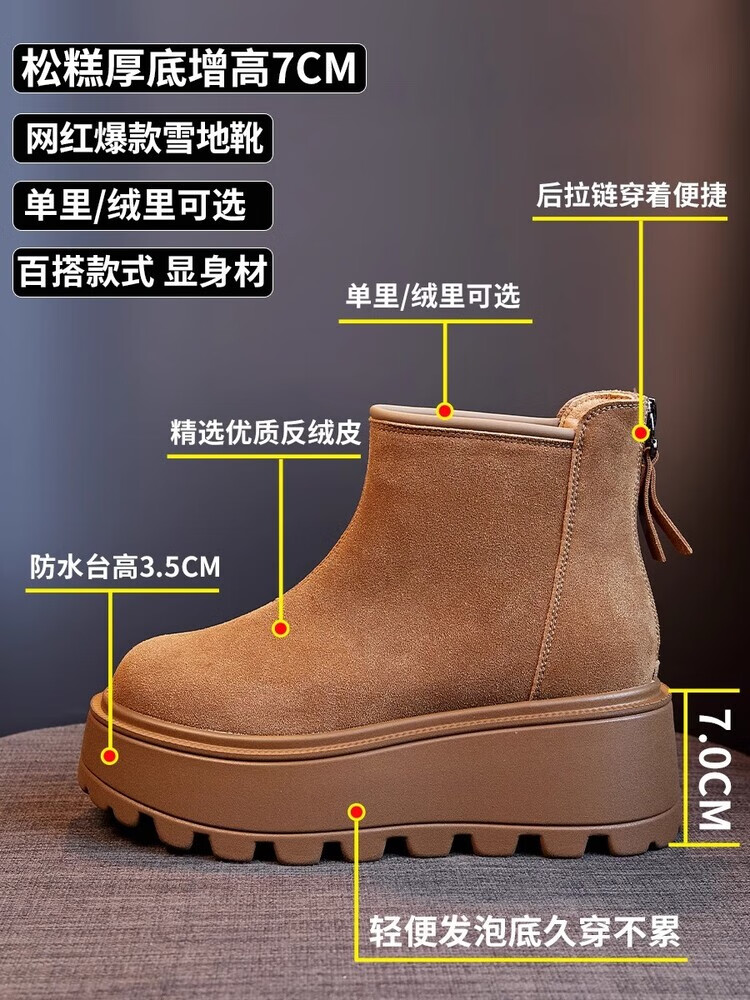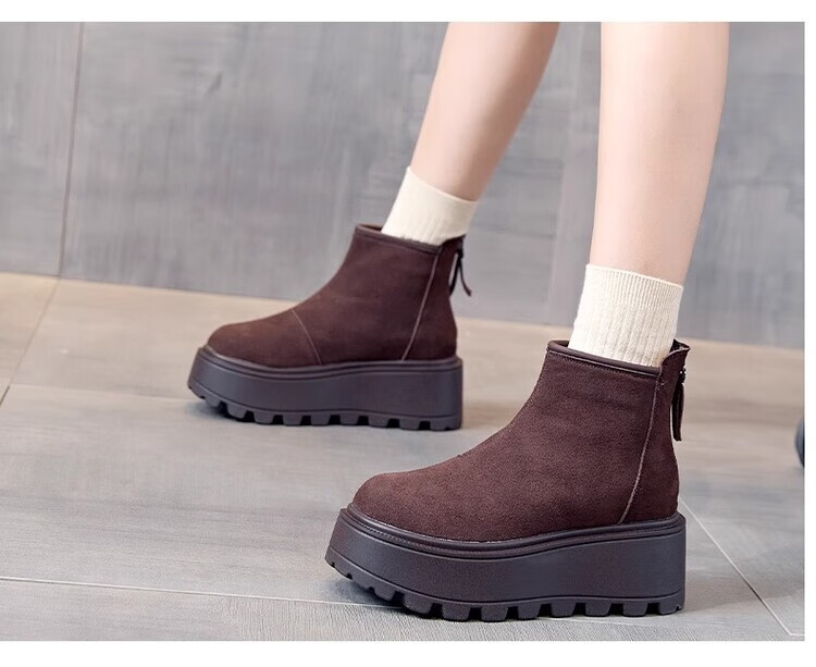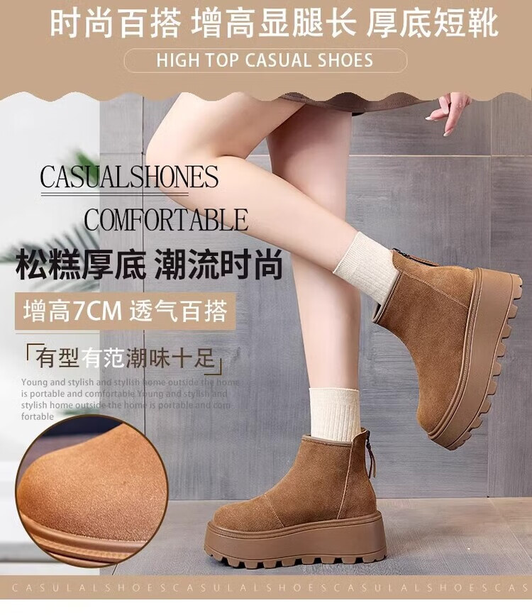 撤柜断码短靴女秋冬增高厚底博肯棉鞋2024年新款休闲加绒雪地靴 驼色加绒内里 36