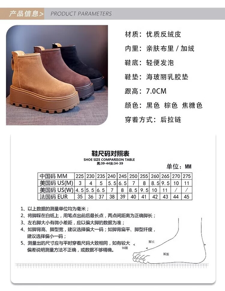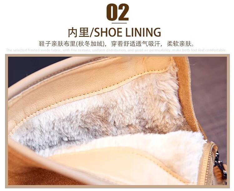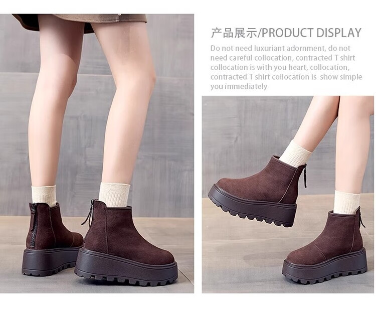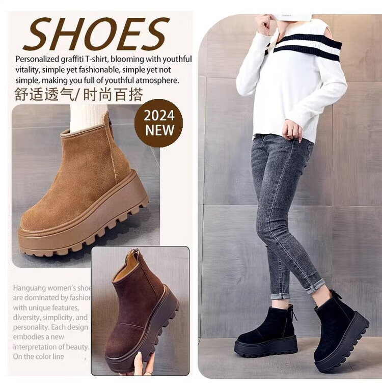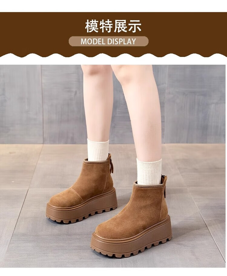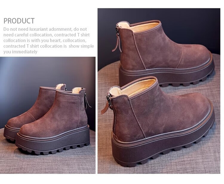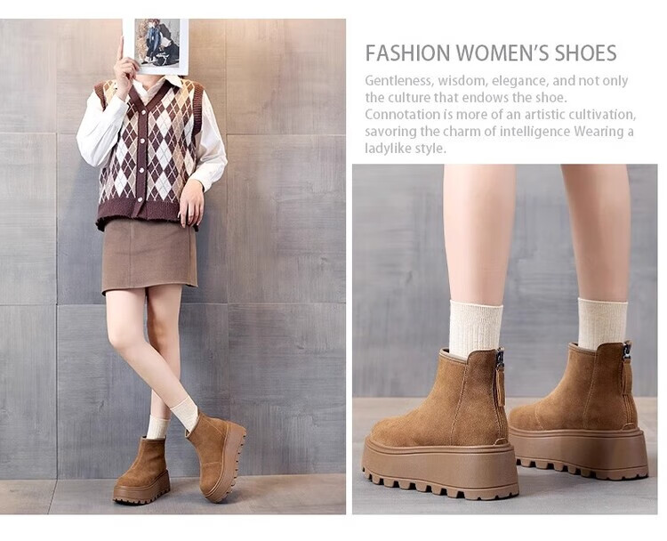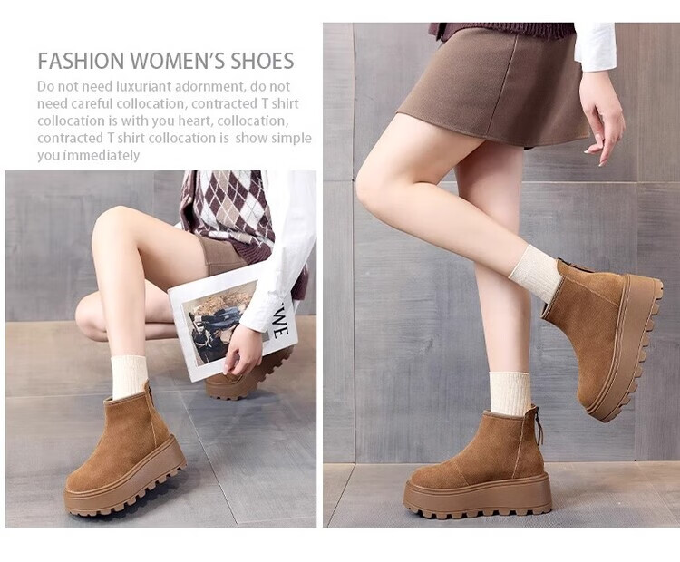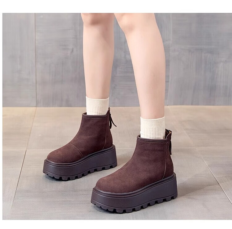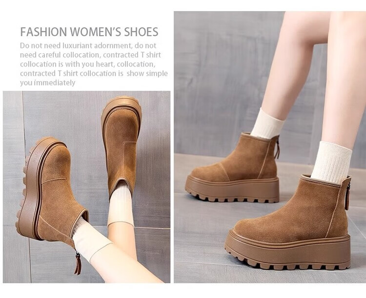 撤柜断码短靴女秋冬增高厚底博肯棉鞋2024年新款休闲加绒雪地靴 驼色加绒内里 36