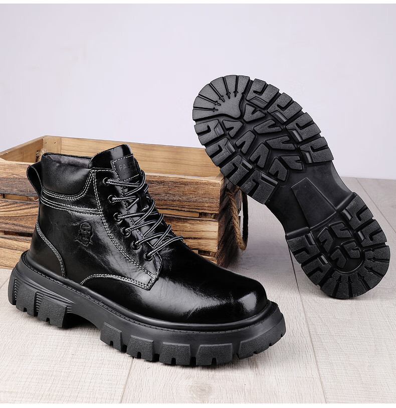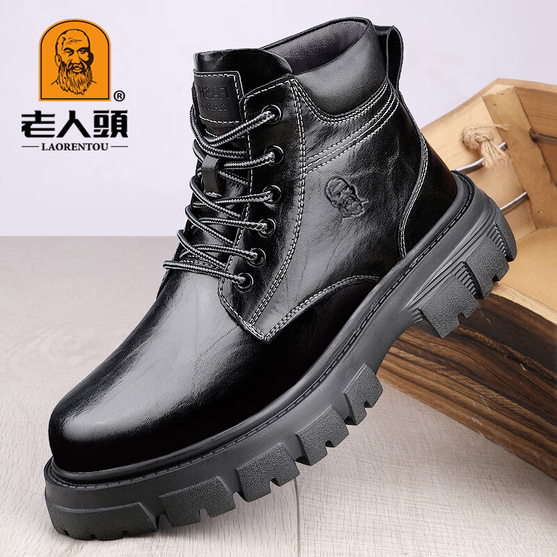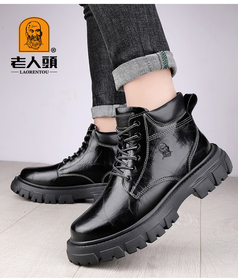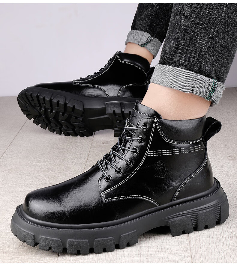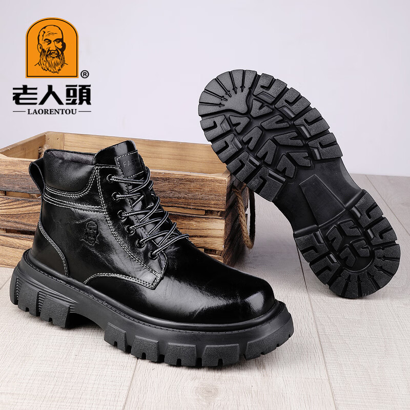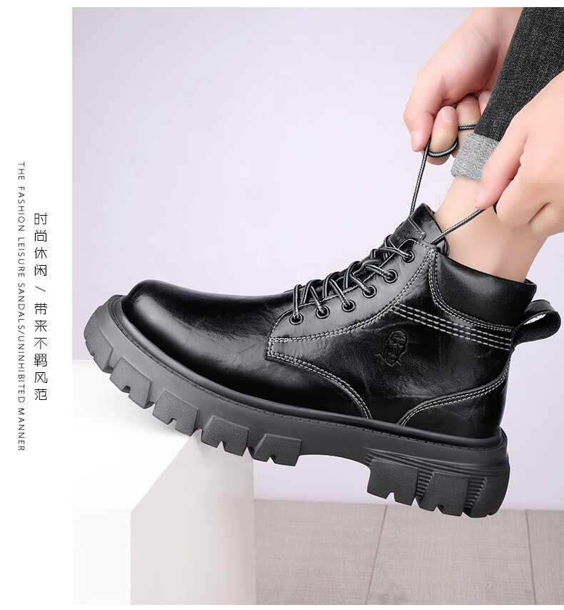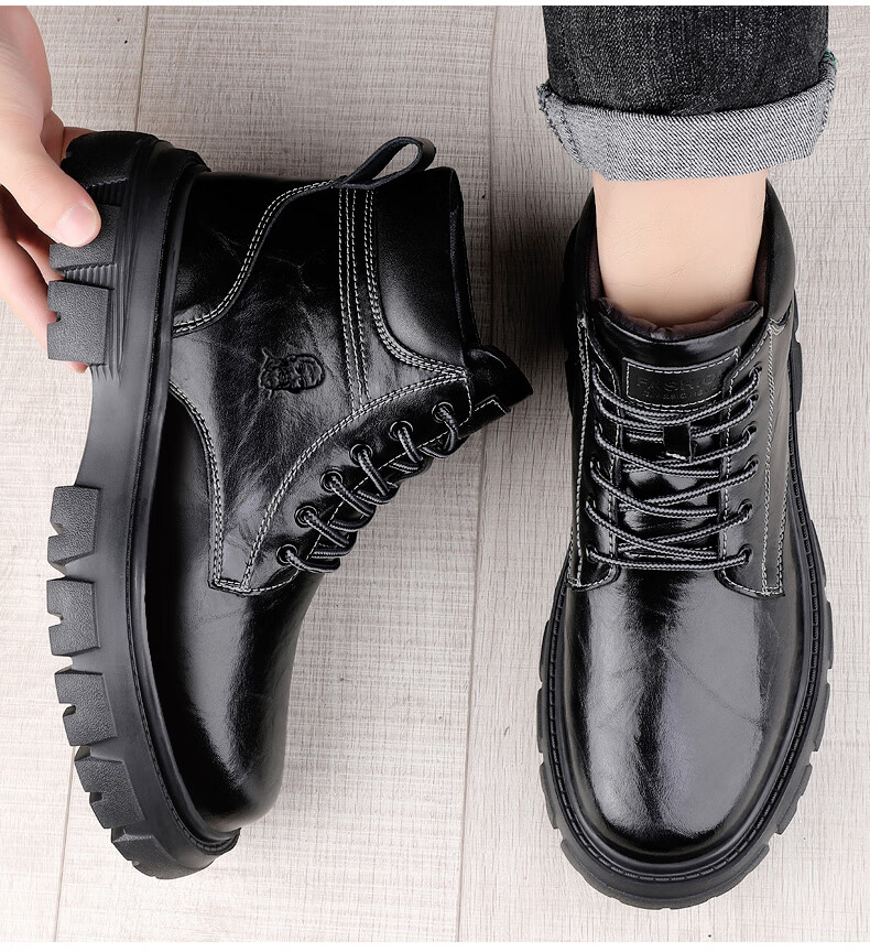 Alte Herrenschuhe aus echtem Leder, Martin-Stiefel, 2024, Herbst und Winter, neue mittelhohe, mittelhohe, lässige Retro-Arbeitsstiefel für Herren QX24987, schwarze Standard-Lederschuhgröße 41