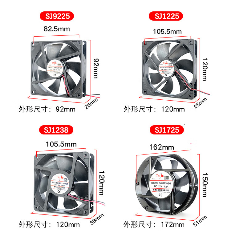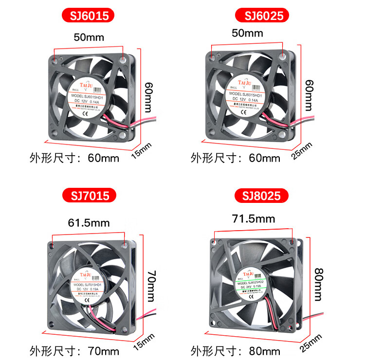 散热风扇12V24V伏DC直流功放机变频器9225电瓶车电动车充电器风扇 6015 12V