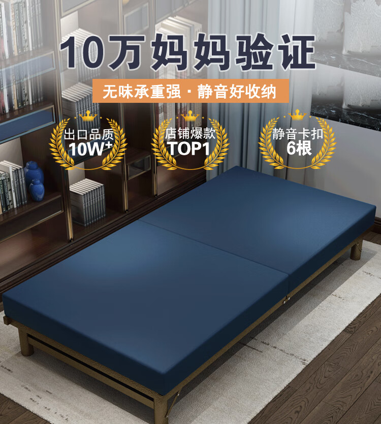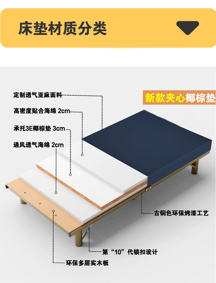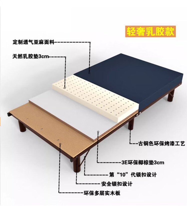 Dunhui exports Japanese quality folding bed for home use, office lunch break bed storage folding bed, hotel extra bed, blue gray multi-layered coconut palm mat, width 80, length 200cm