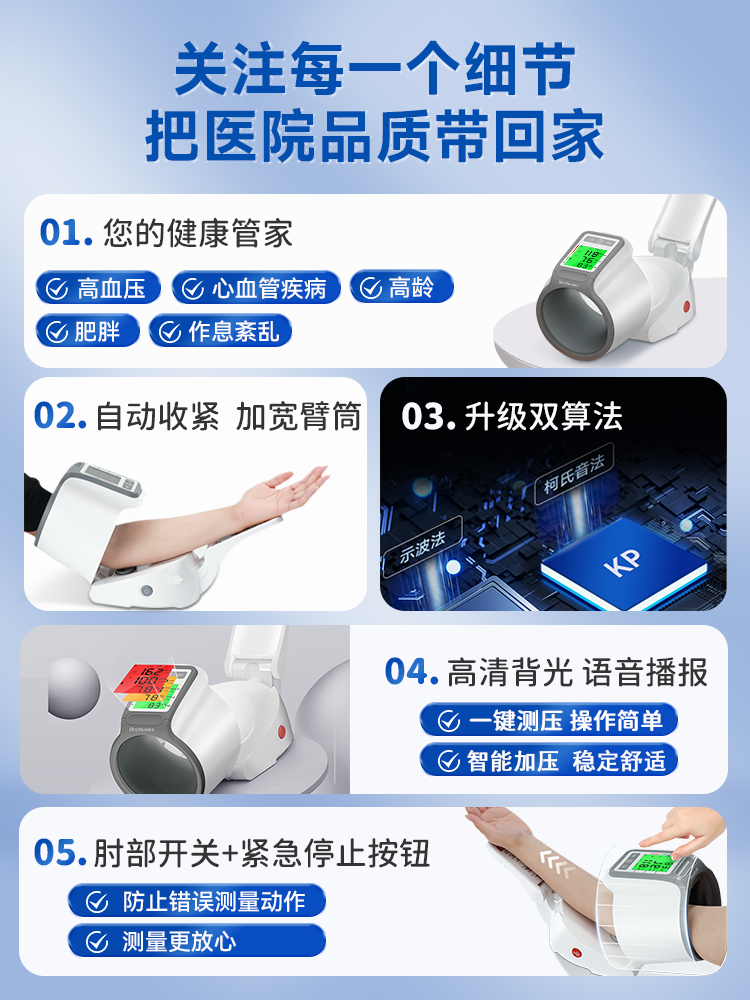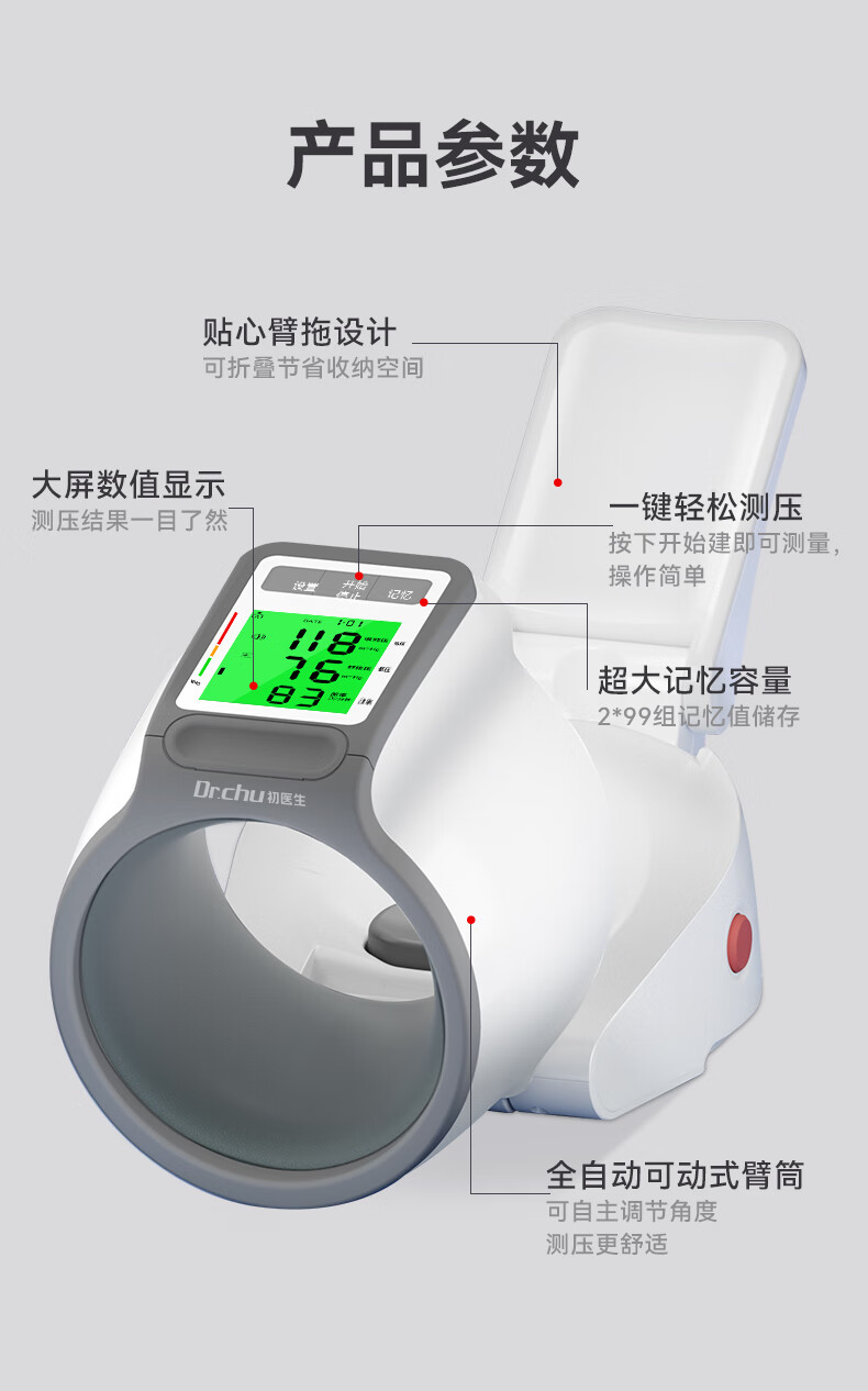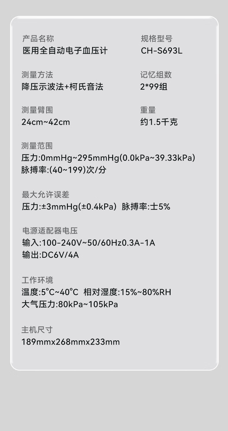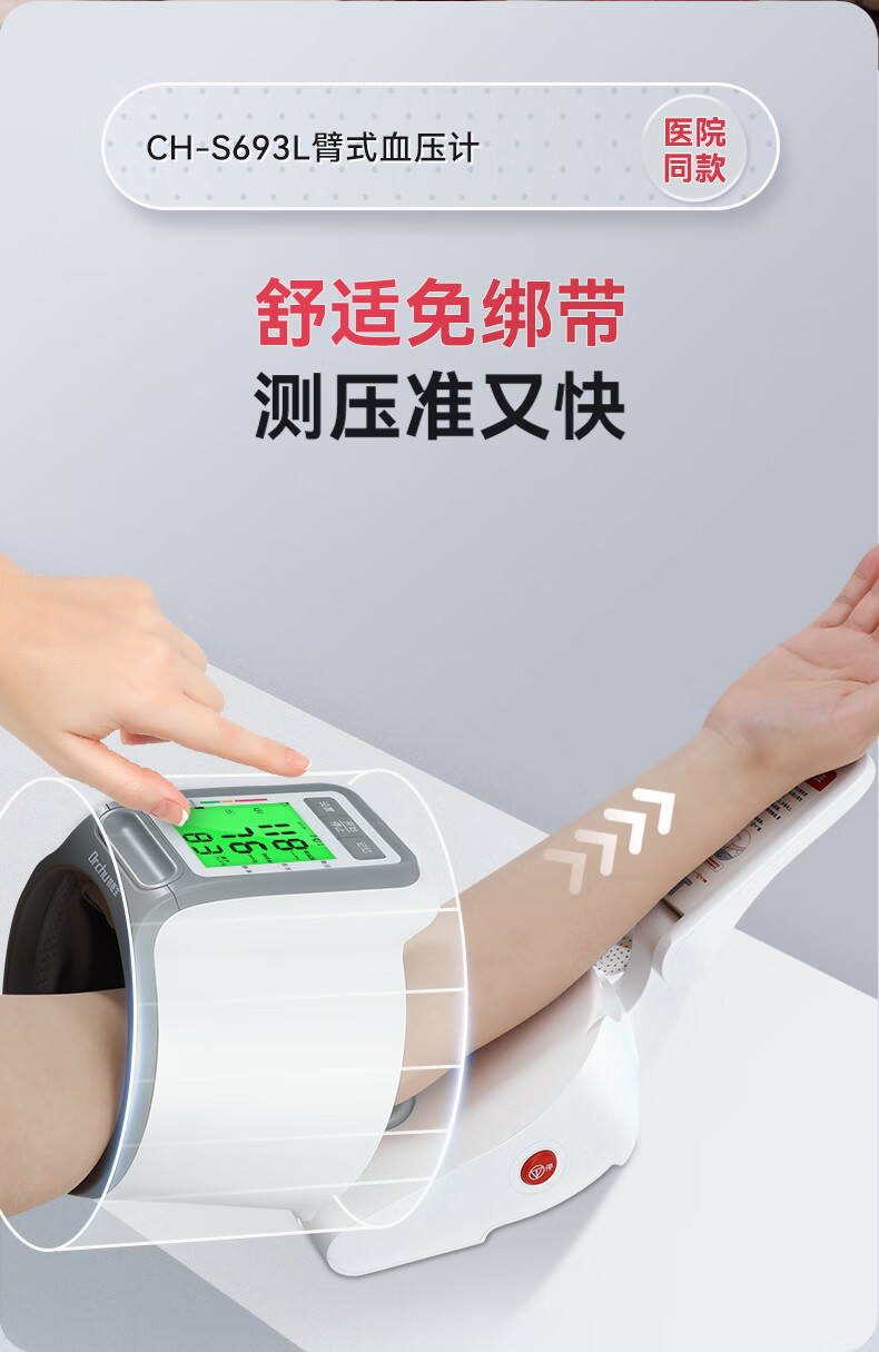 血压计臂筒式 初医生柯氏音法臂筒式医用电子血压计器家用测量仪 CH-S693L臂筒式