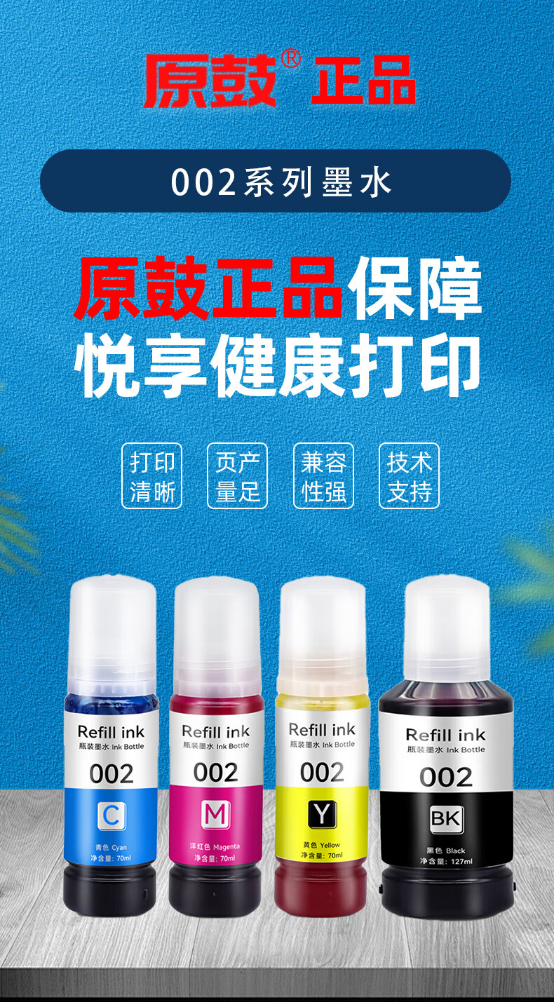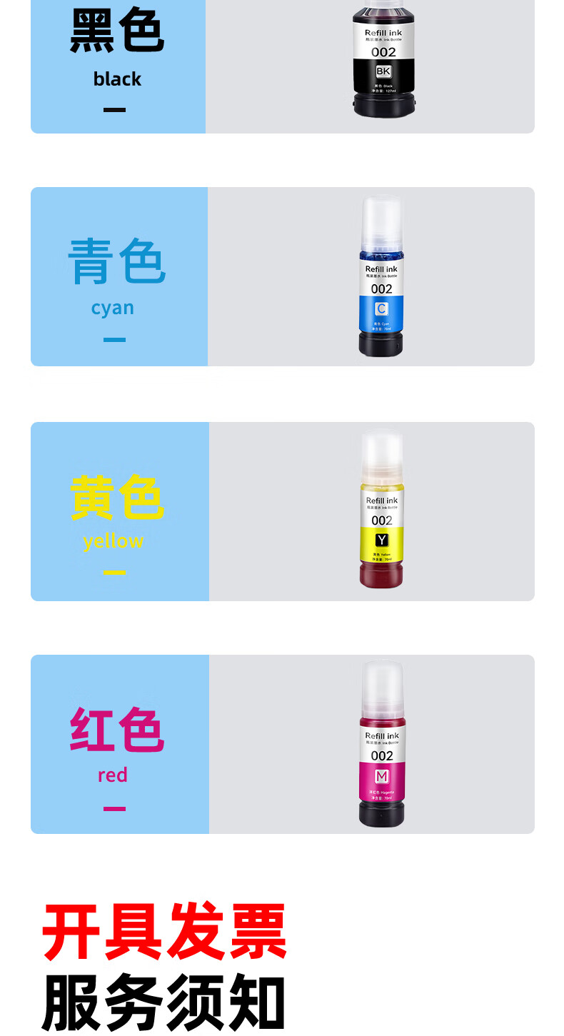 Original drum genuine suitable for Epson Epson L6198 ink L6198 color ink tank refill printer ink inkjet printer refill 002 ink black 002 BK high definition ink 127ML