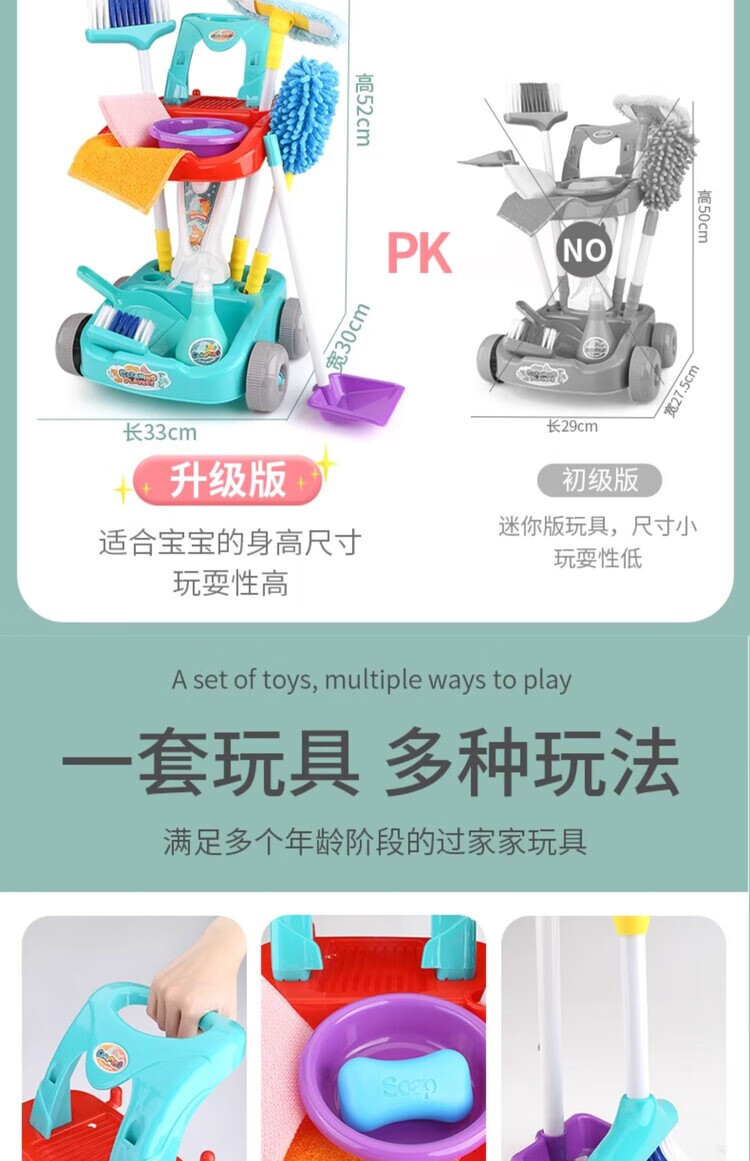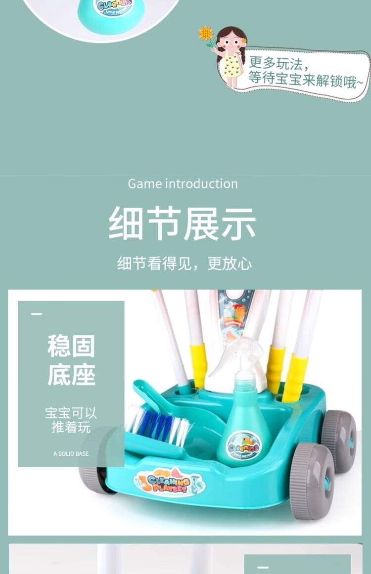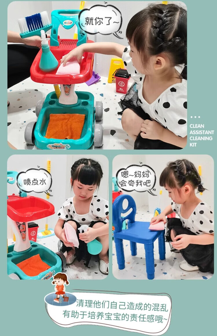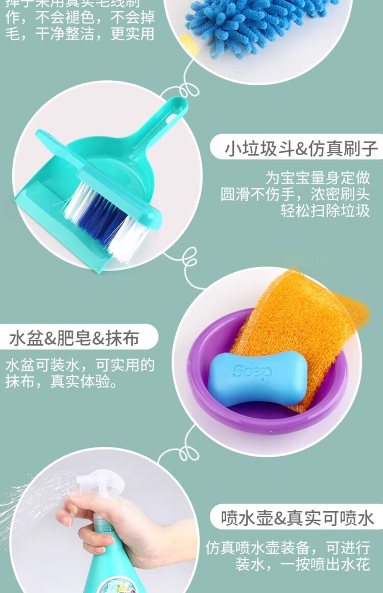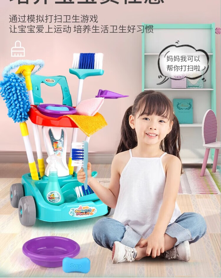 楪嫦德国过家家玩具儿童扫地扫把簸箕组合套装仿真打扫清洁宝宝男女孩 清洁车玩具绿色套装