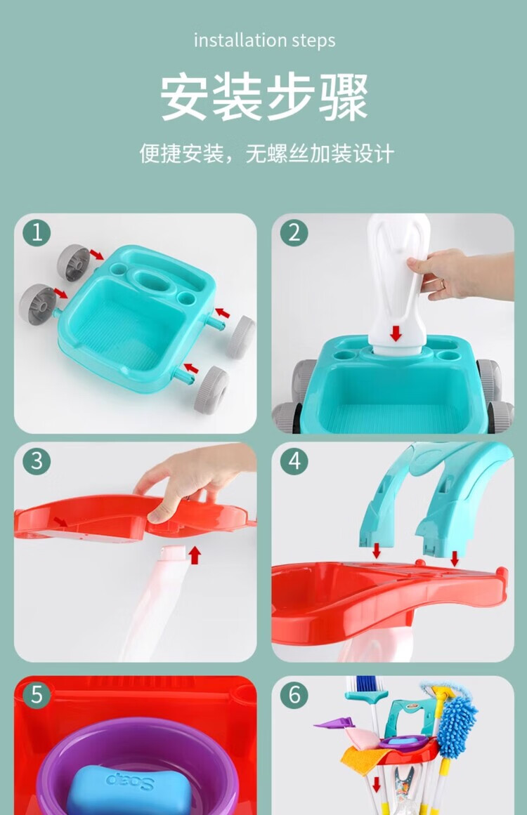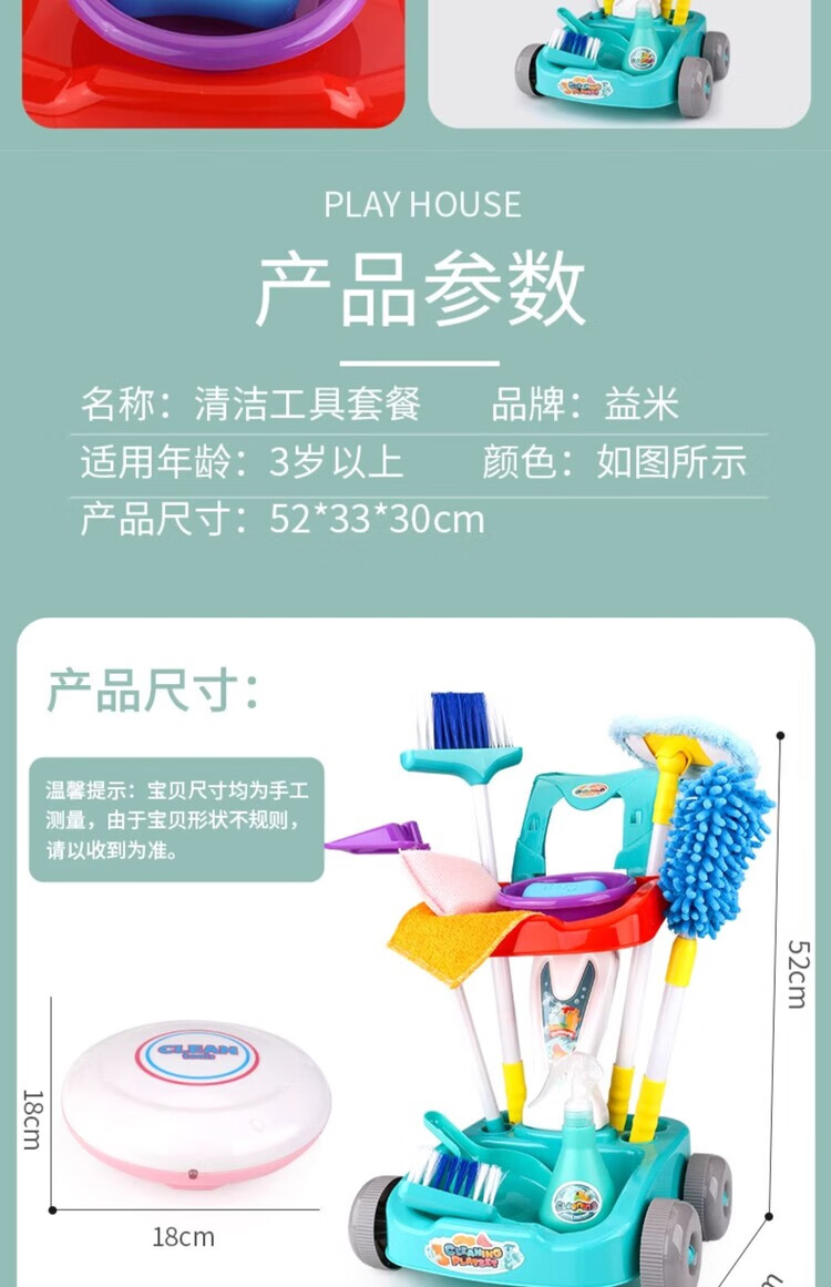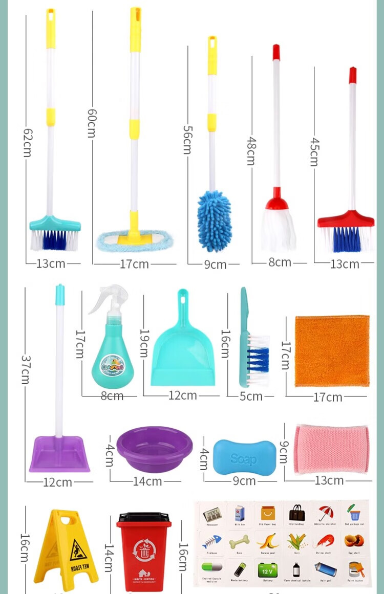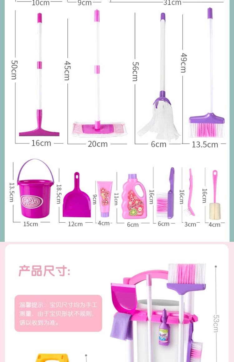 楪嫦德国过家家玩具儿童扫地扫把簸箕组合套装仿真打扫清洁宝宝男女孩 清洁车玩具绿色套装