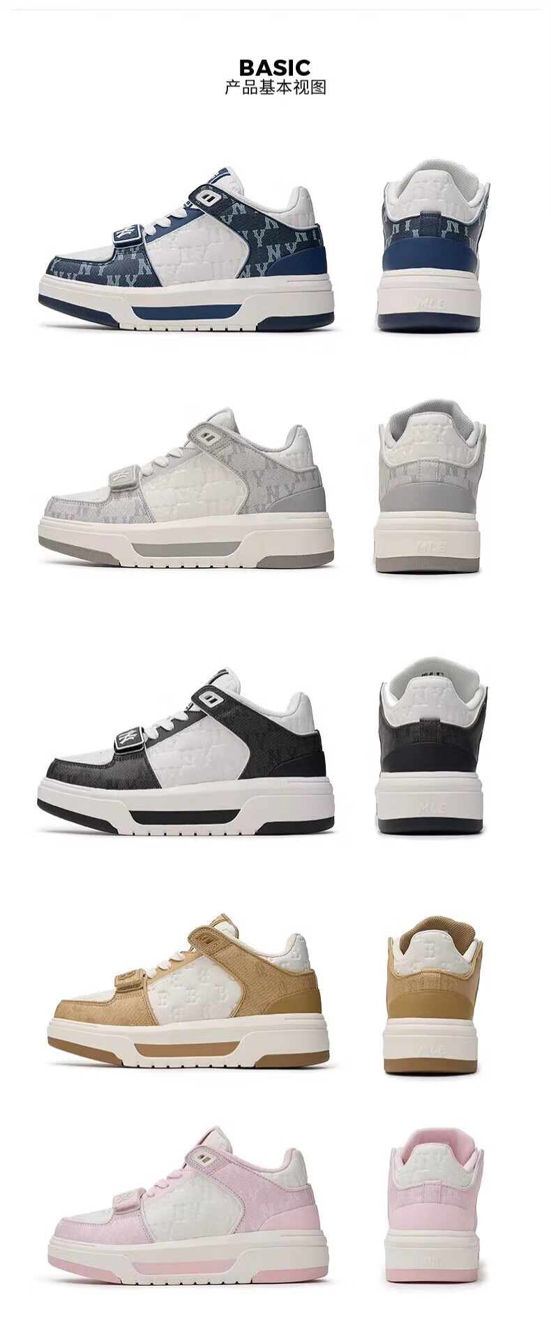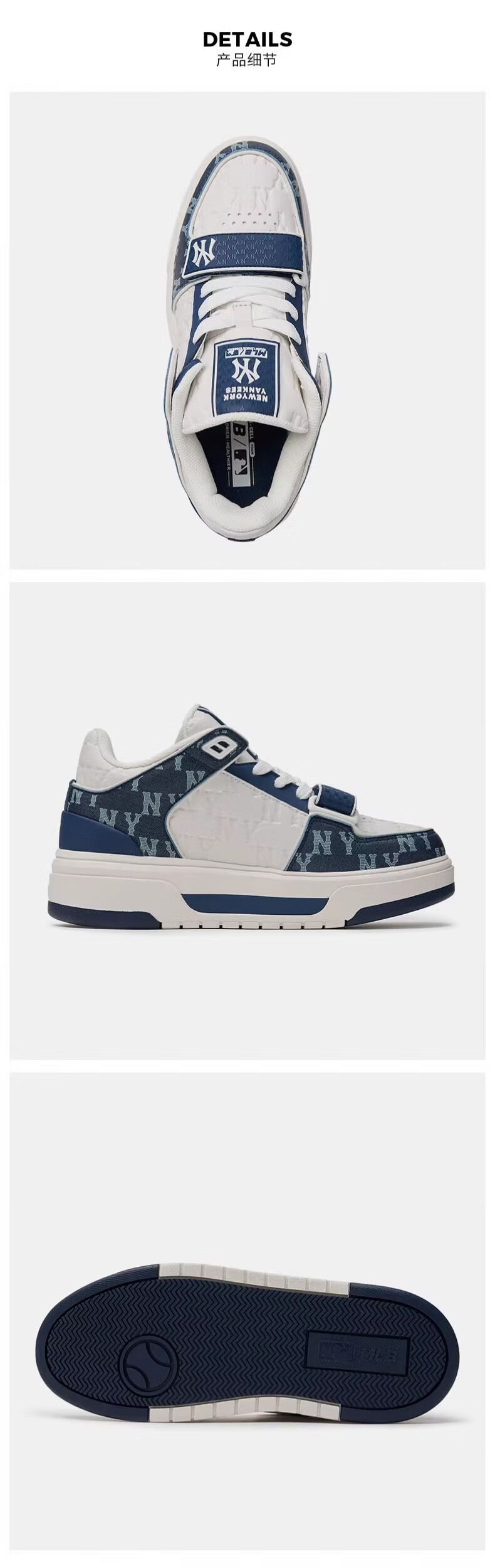 MLB板鞋男女同款虞书欣代言明星同款学长鞋运动休闲鞋3ASXCMM4N 灰色/50GRS 37.5 (235mm)