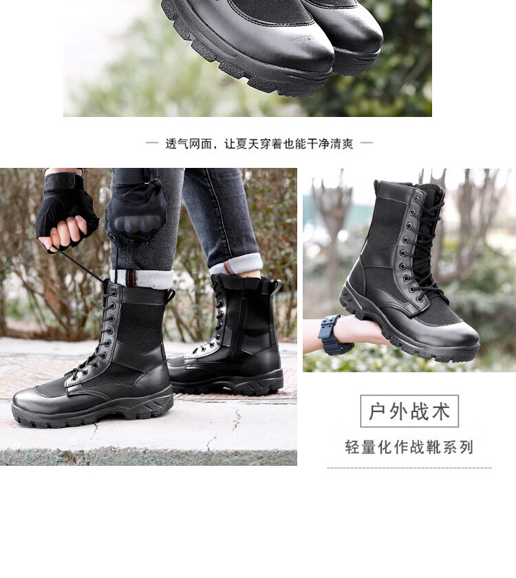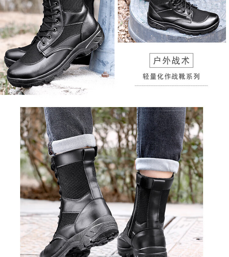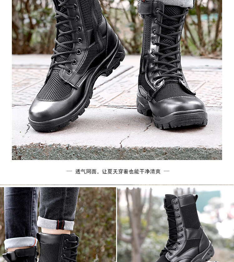 MieLanat Sommer Ultraleichte Kampfstiefel Atmungsaktive Mesh Wanderschuhe Taktische Stiefel Männer und Frauen High-Top Trainingsstiefel Sicherheitsstiefel Arbeitsschuhe Schwarz Mesh Stil 42