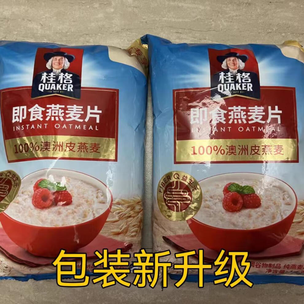 桂格(QUAKER)燕麦片即食纯麦片无无加蔗糖速食免煮早餐代餐饱腹充饥贵格林 1478g*1袋+1000g*1罐