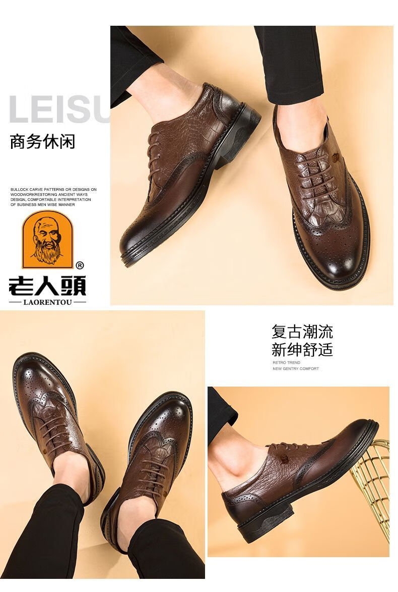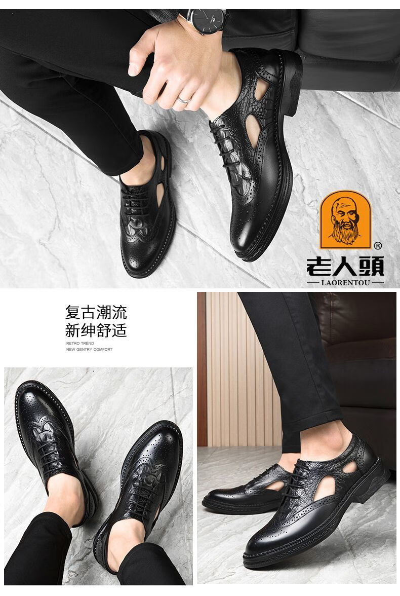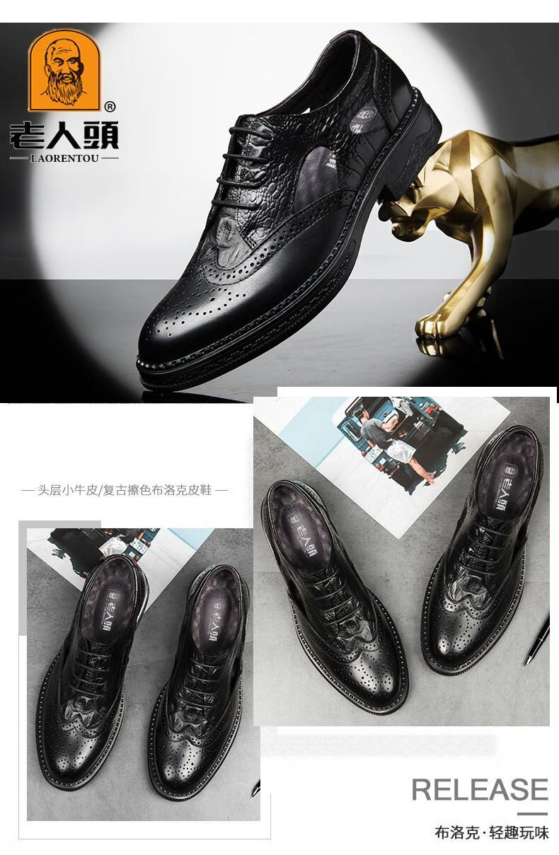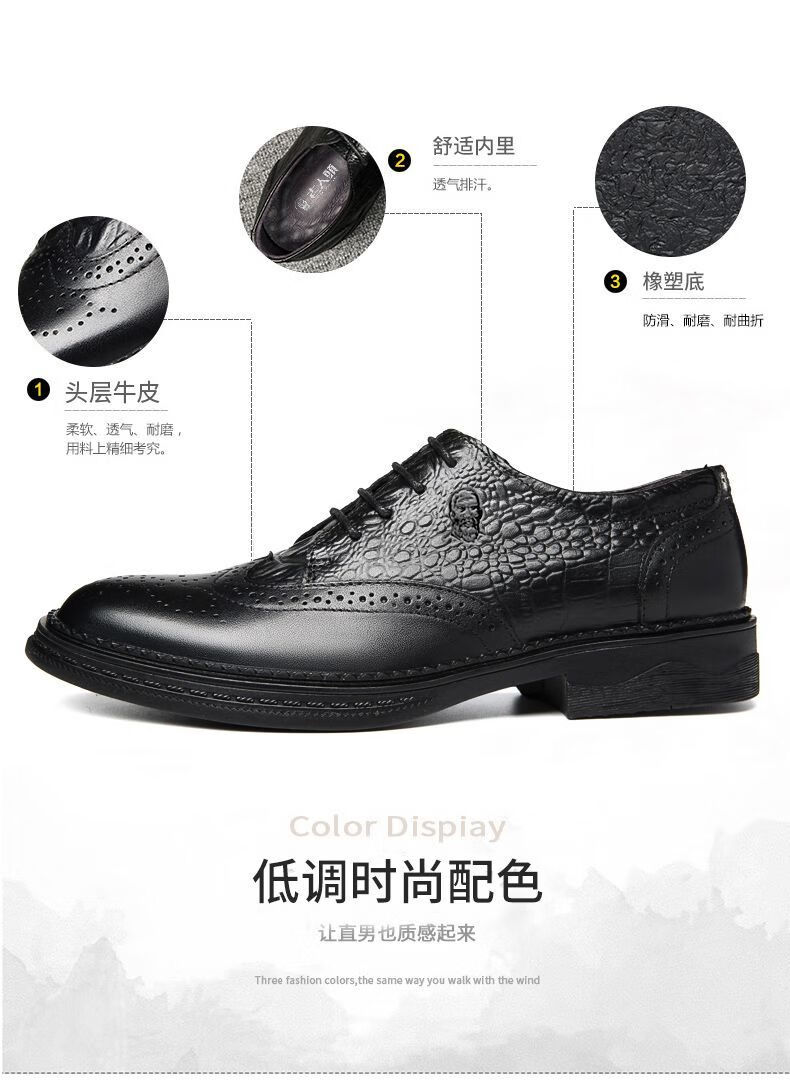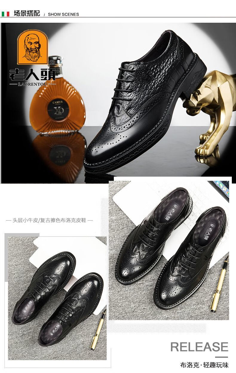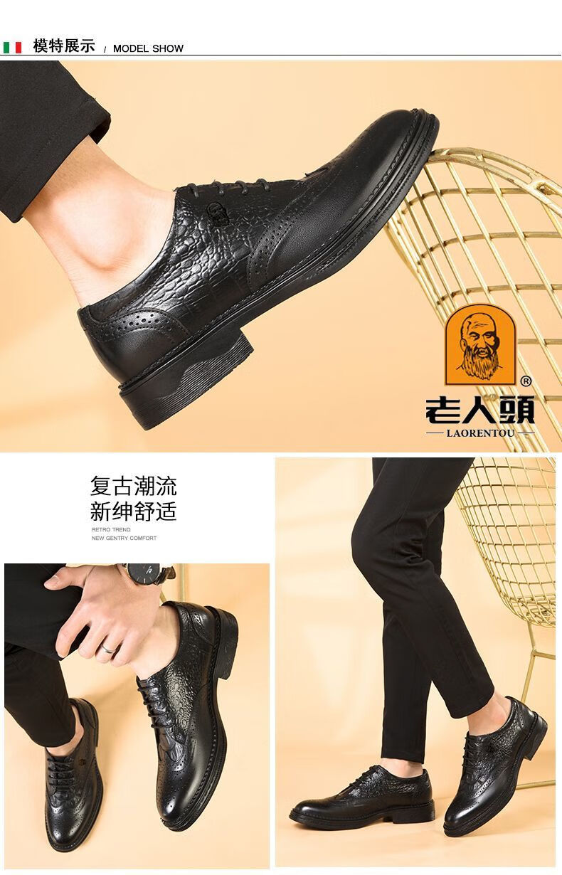 Kopf des alten Mannes echtes Leder Herrenschuhe Krokodilmuster echtes Leder Schuhe Retro dicke Sohle lässige Lederschuhe Brogue Trend schwarz HH9926 vier Jahreszeiten 41