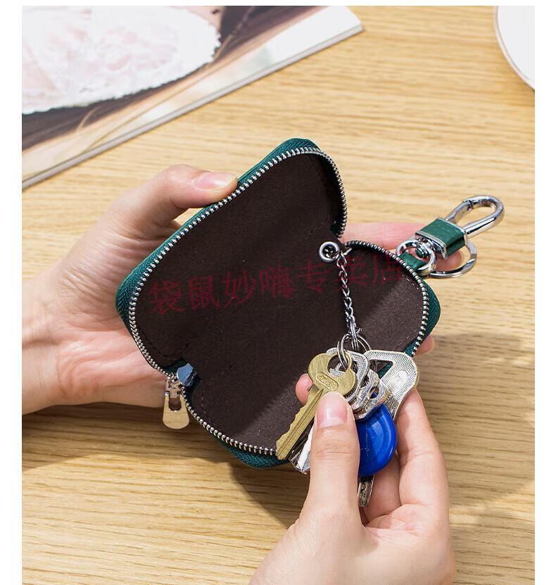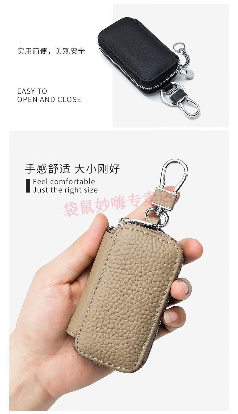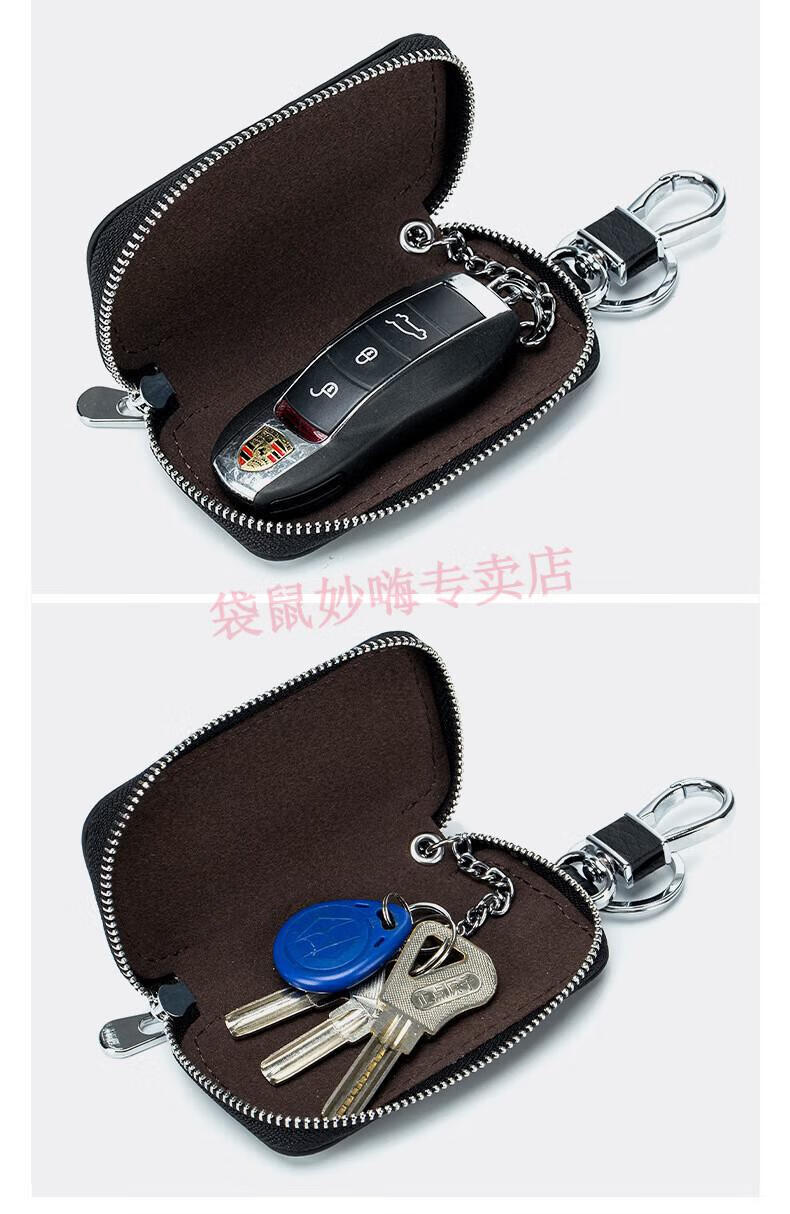 袋鼠(KANGAROO)名牌通用汽车钥匙包真皮时尚男士钥匙包简约迷你女士家用锁匙包 黑色