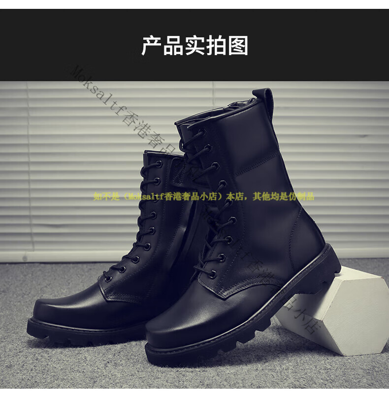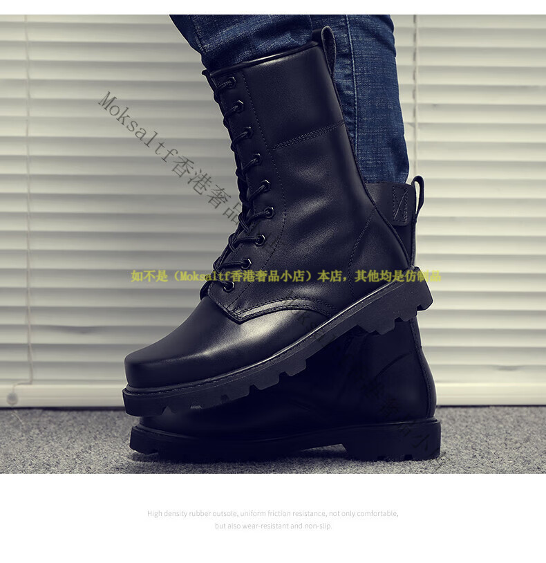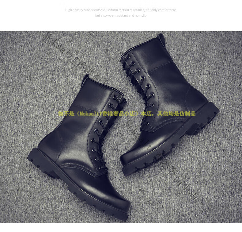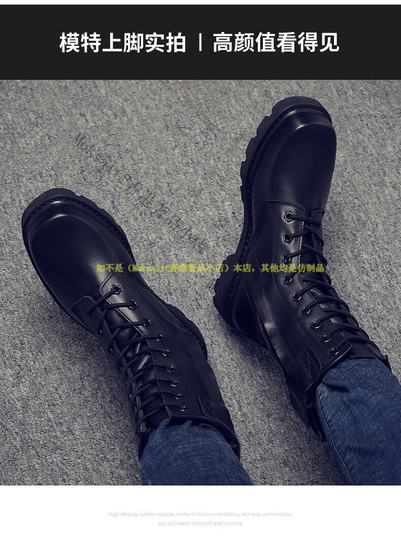 TOP GLORIA Martin boots men's leather boots men's winter labor insurance combat boots high boots military training shoes genuine leather workwear leather shoes Martin boots black square head (four seasons) 35