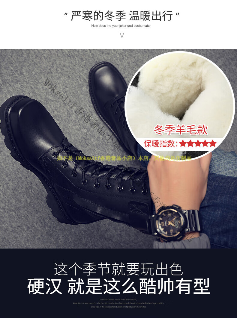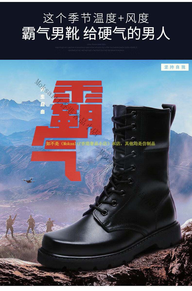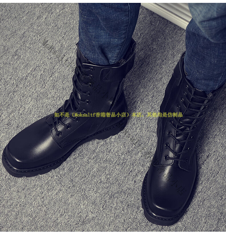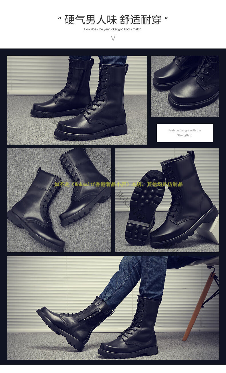 TOP GLORIA Martin boots men's leather boots men's winter labor insurance combat boots high boots military training shoes genuine leather workwear leather shoes Martin boots black square head (four seasons) 35
