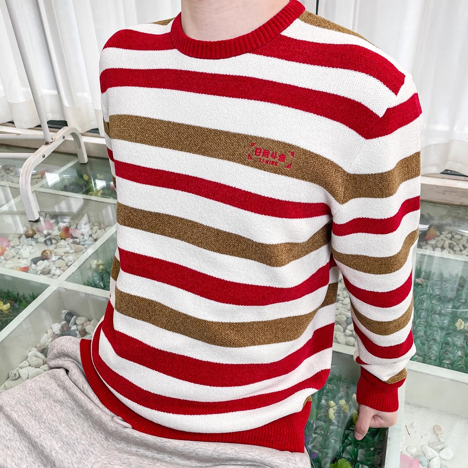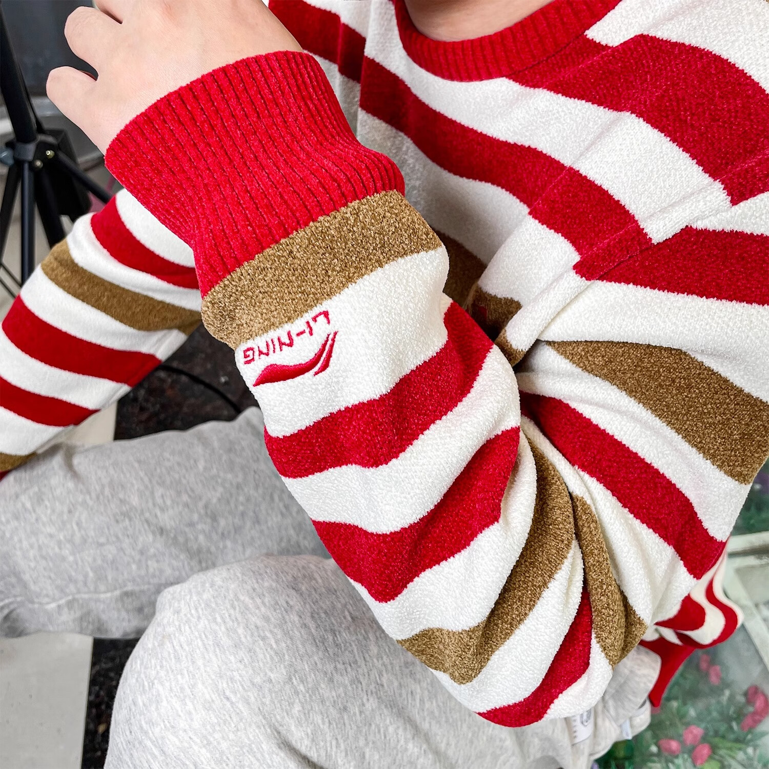 李宁轻薄毛衣套头男2025年春季新款日进斗金无帽锦纶新年卫衣AMBV051 白色条纹 AMBV051-1 日进斗金 S